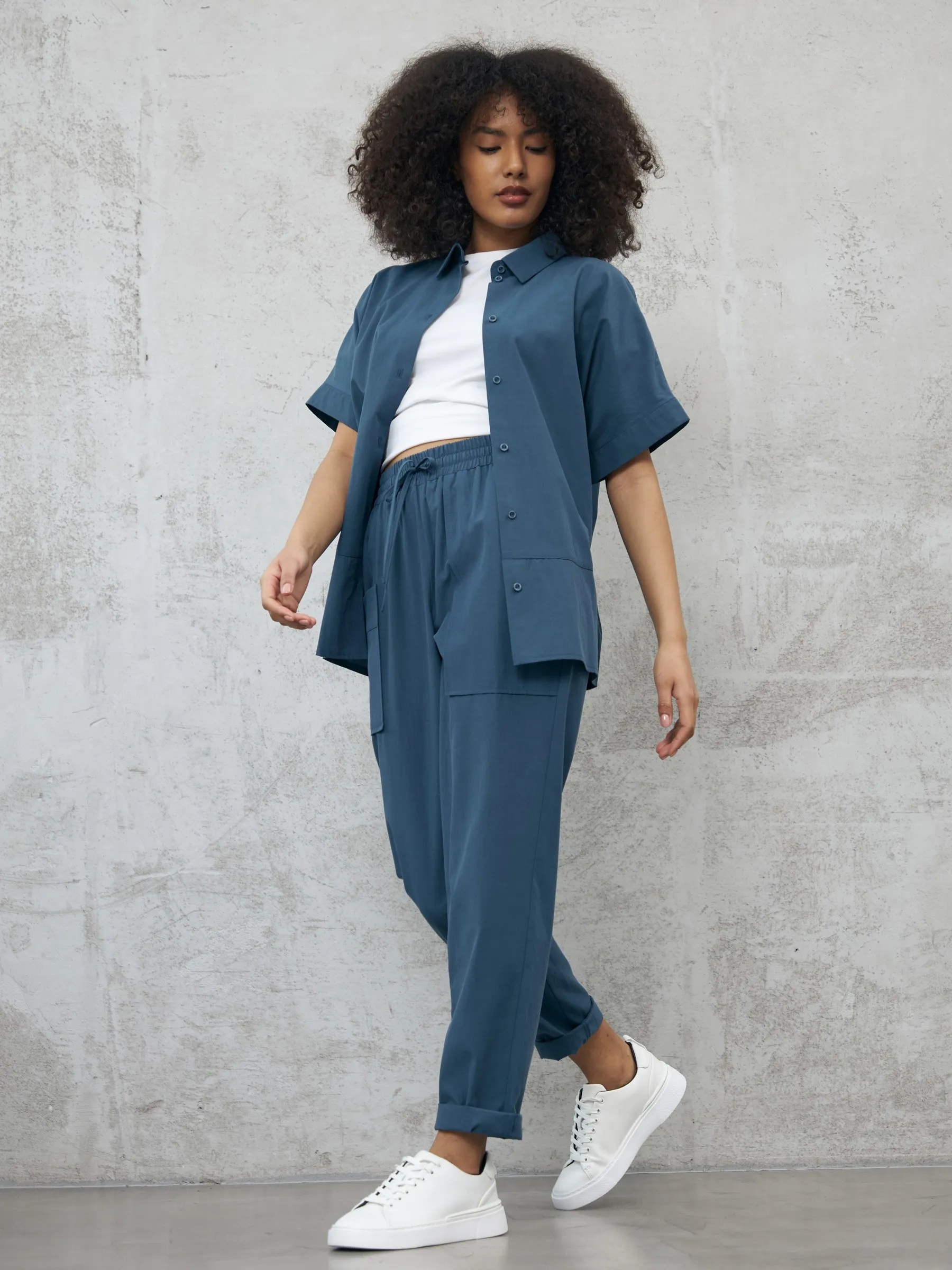 Блуза-рубашка на брендовых пуговицах с коротким рукавом и отложным воротником в классическом стиле. Модель выполнена из натуральных материалов: дышащего льна и мягкого хлопка в морском оттенке. Подойдет для создания повседневных сочетаний и образов в стиле современной классики. Блузу можно сочетать с базовыми футболками Gezalook by UDGY.