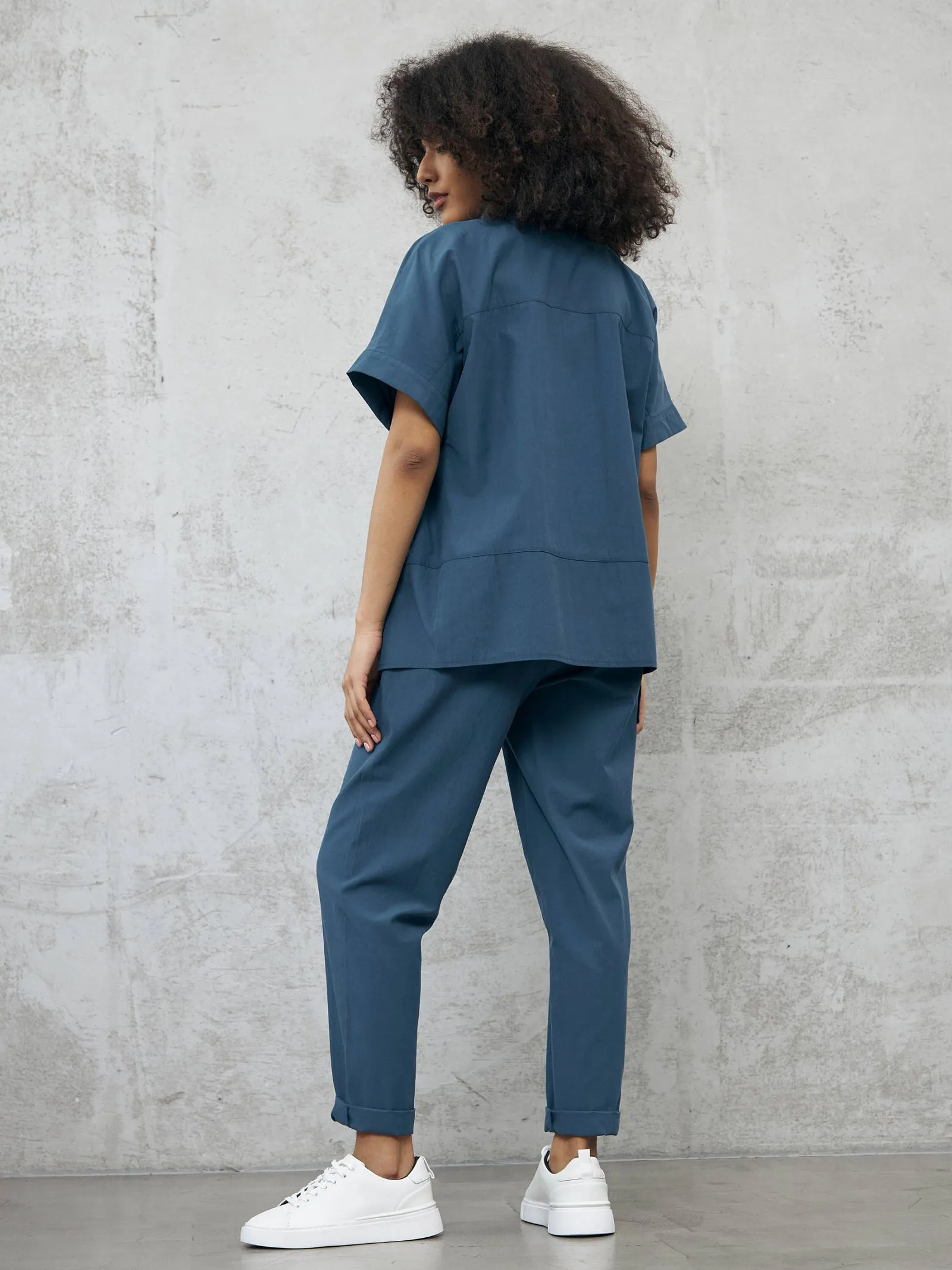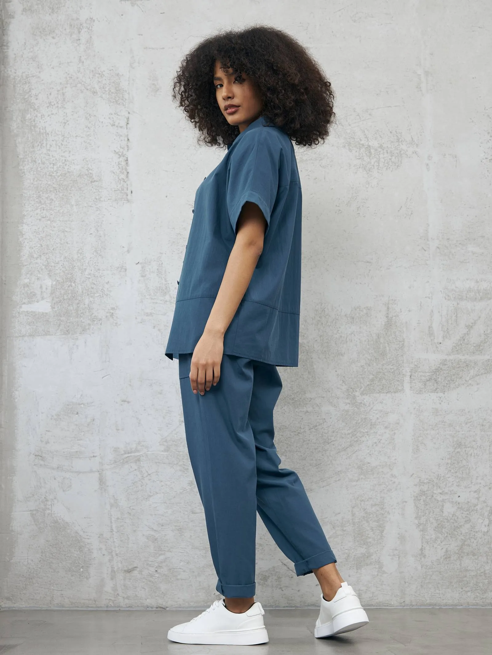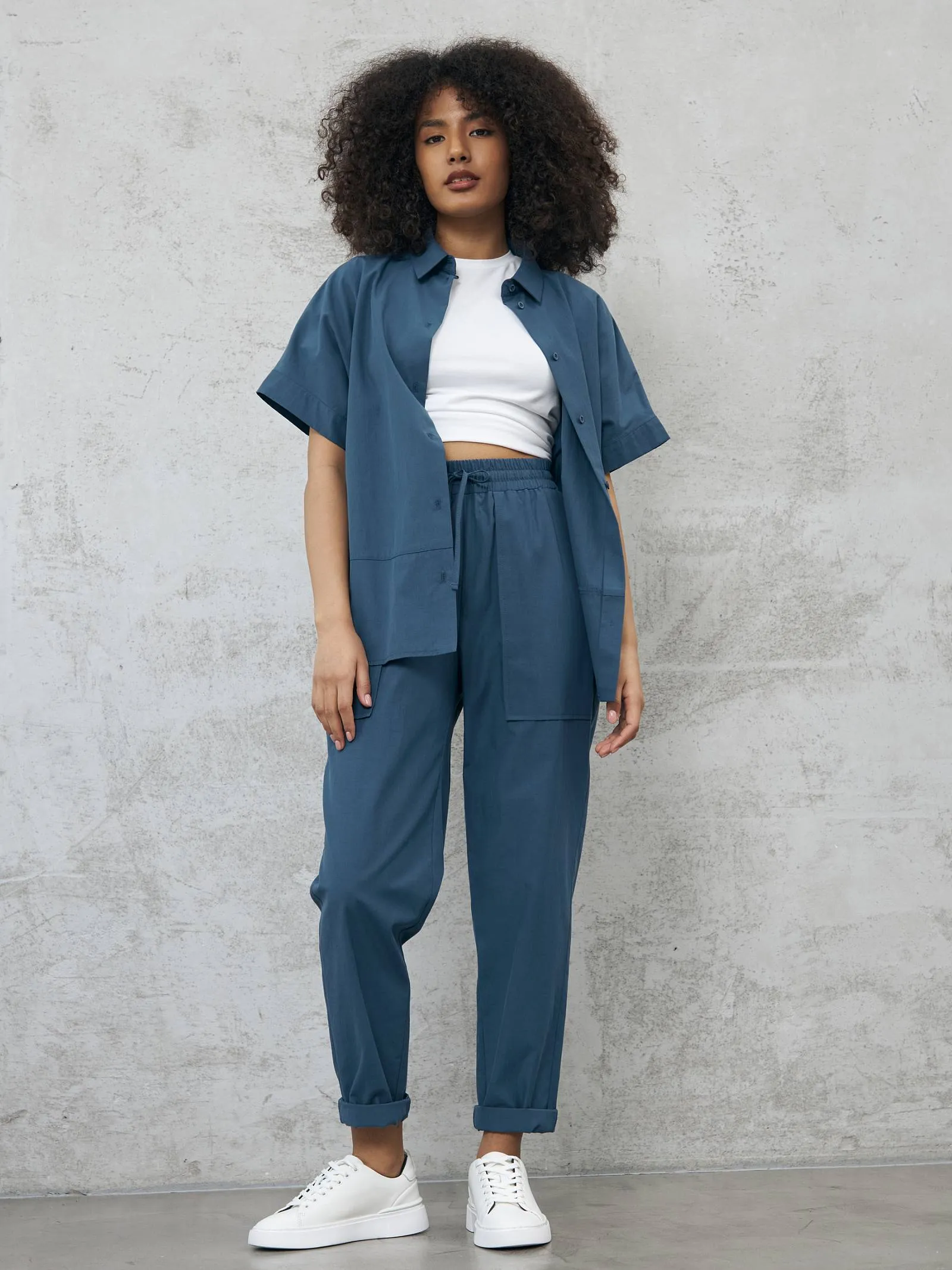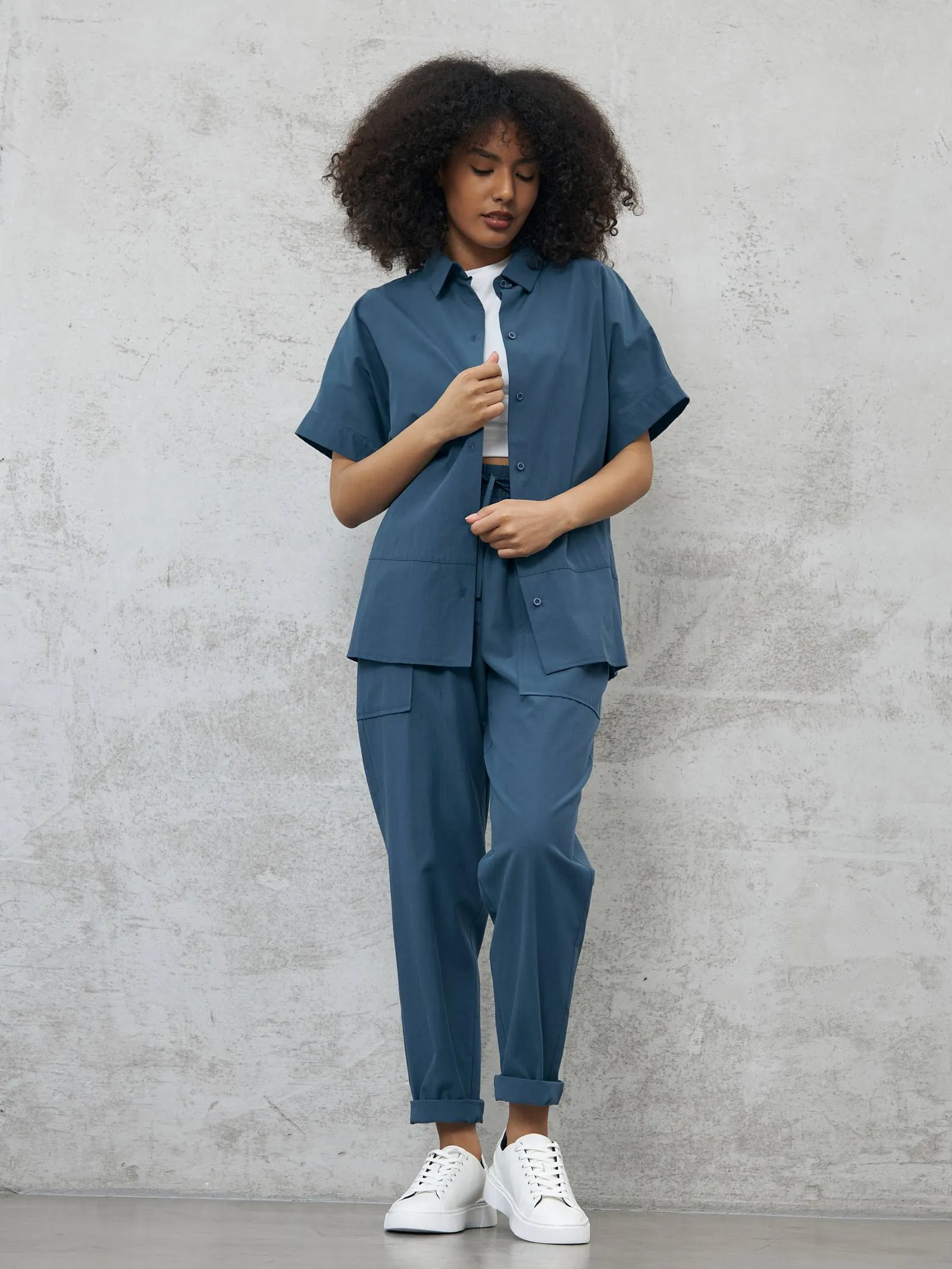 Блуза-рубашка на брендовых пуговицах с коротким рукавом и отложным воротником в классическом стиле. Модель выполнена из натуральных материалов: дышащего льна и мягкого хлопка в морском оттенке. Подойдет для создания повседневных сочетаний и образов в стиле современной классики. Блузу можно сочетать с базовыми футболками Gezalook by UDGY.