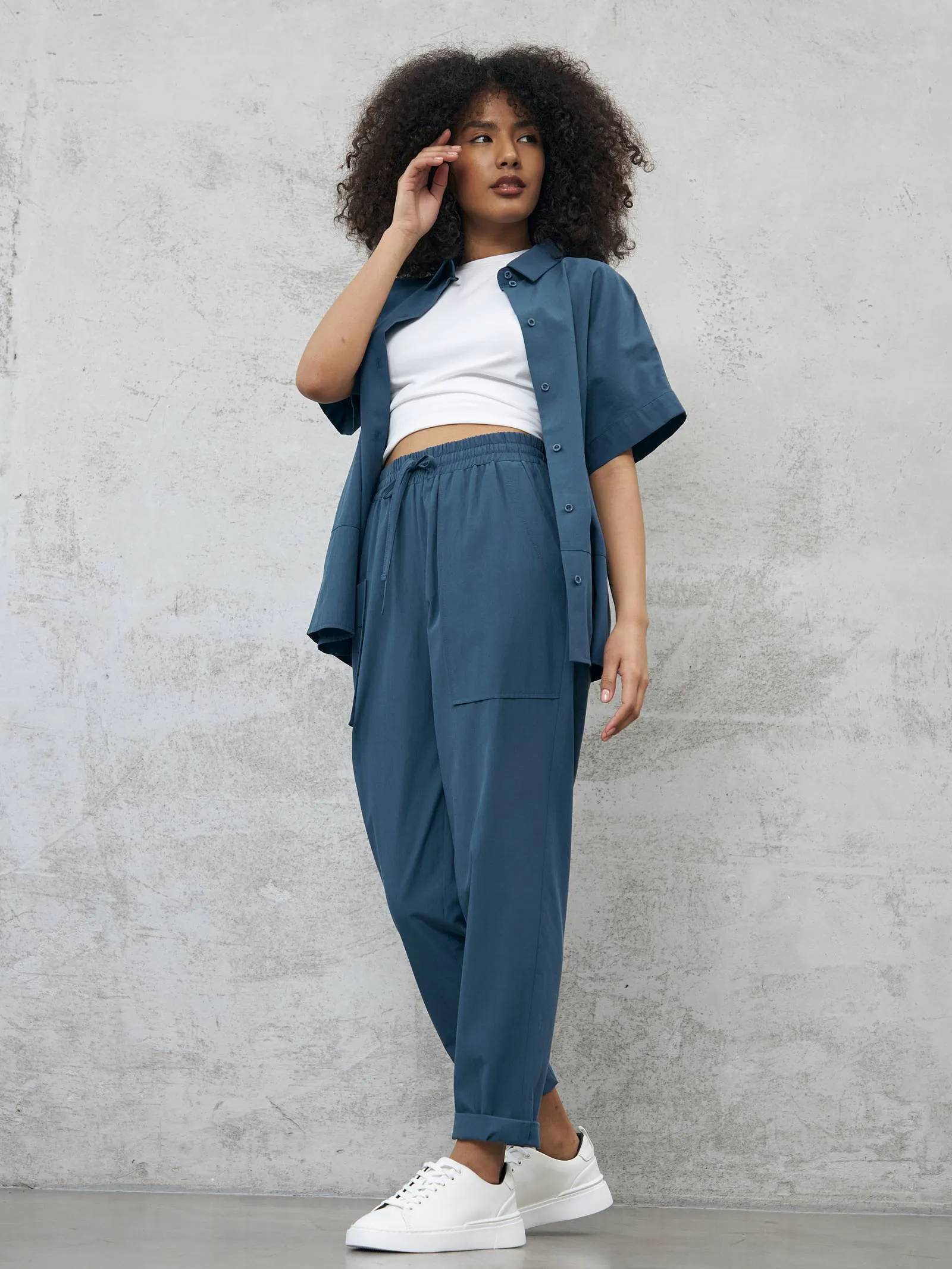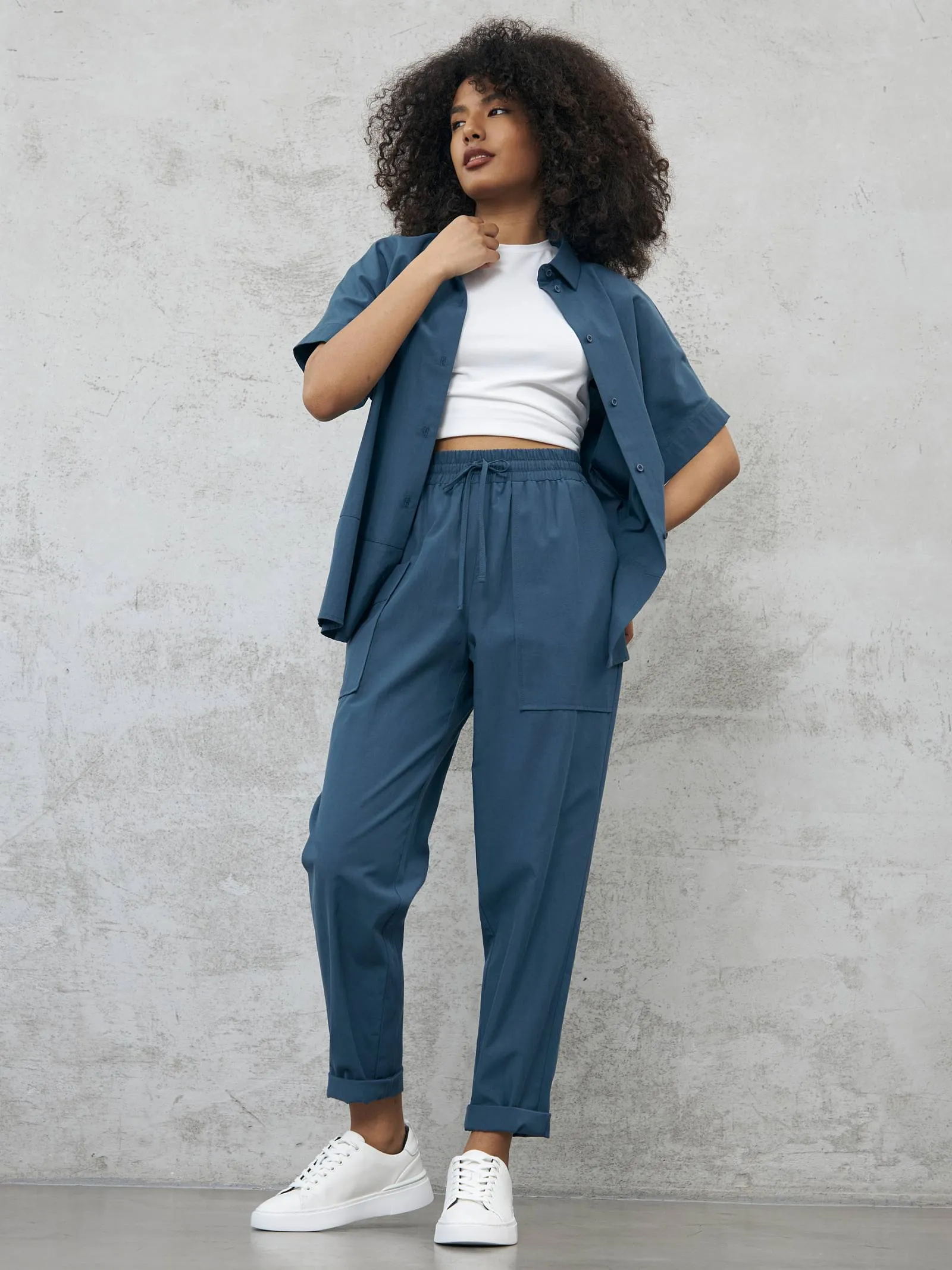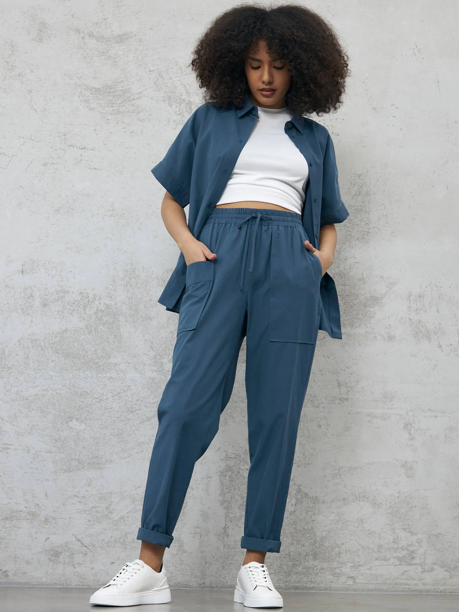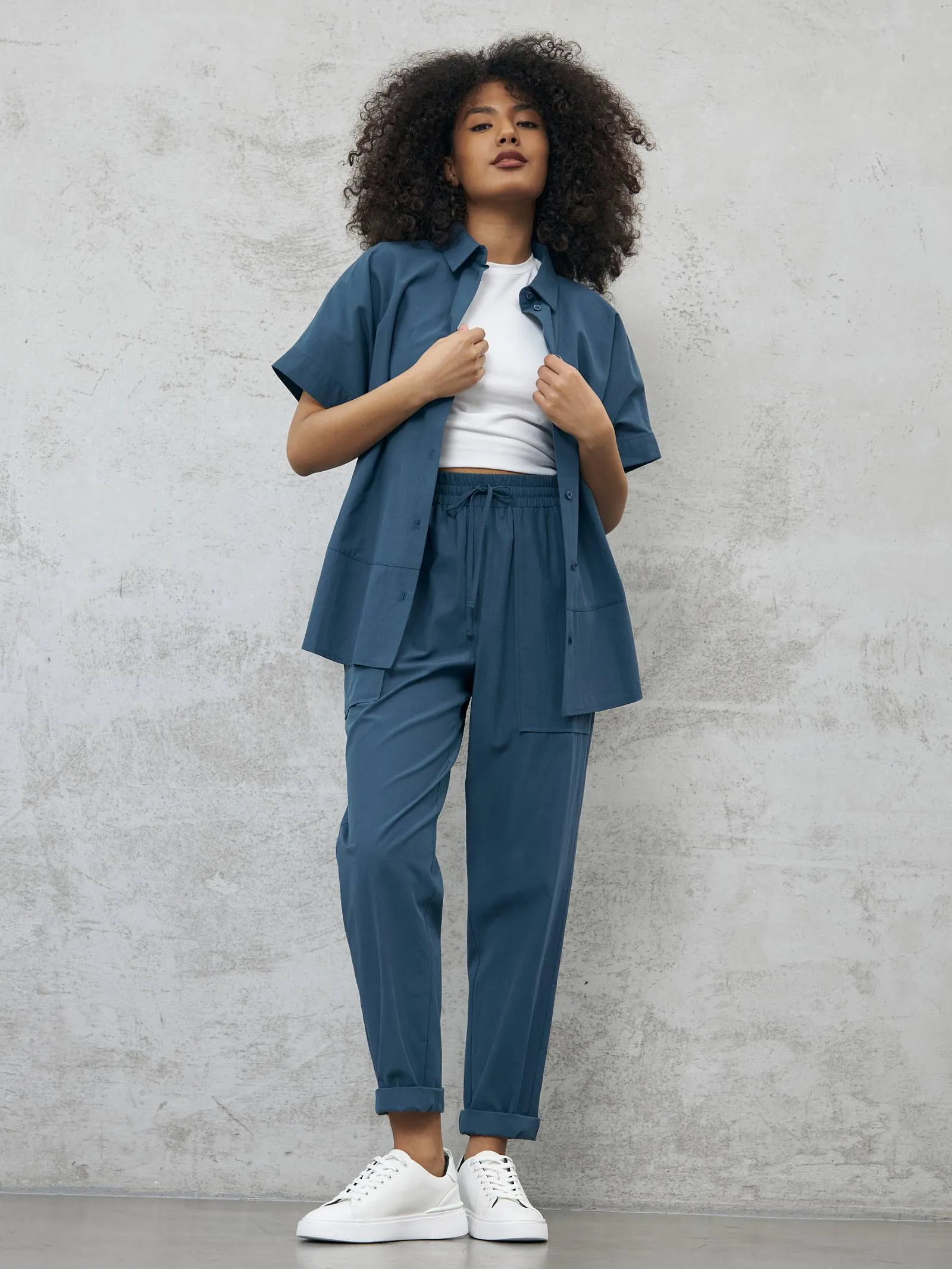 Блуза-рубашка на брендовых пуговицах с коротким рукавом и отложным воротником в классическом стиле. Модель выполнена из натуральных материалов: дышащего льна и мягкого хлопка в морском оттенке. Подойдет для создания повседневных сочетаний и образов в стиле современной классики. Блузу можно сочетать с базовыми футболками Gezalook by UDGY.
