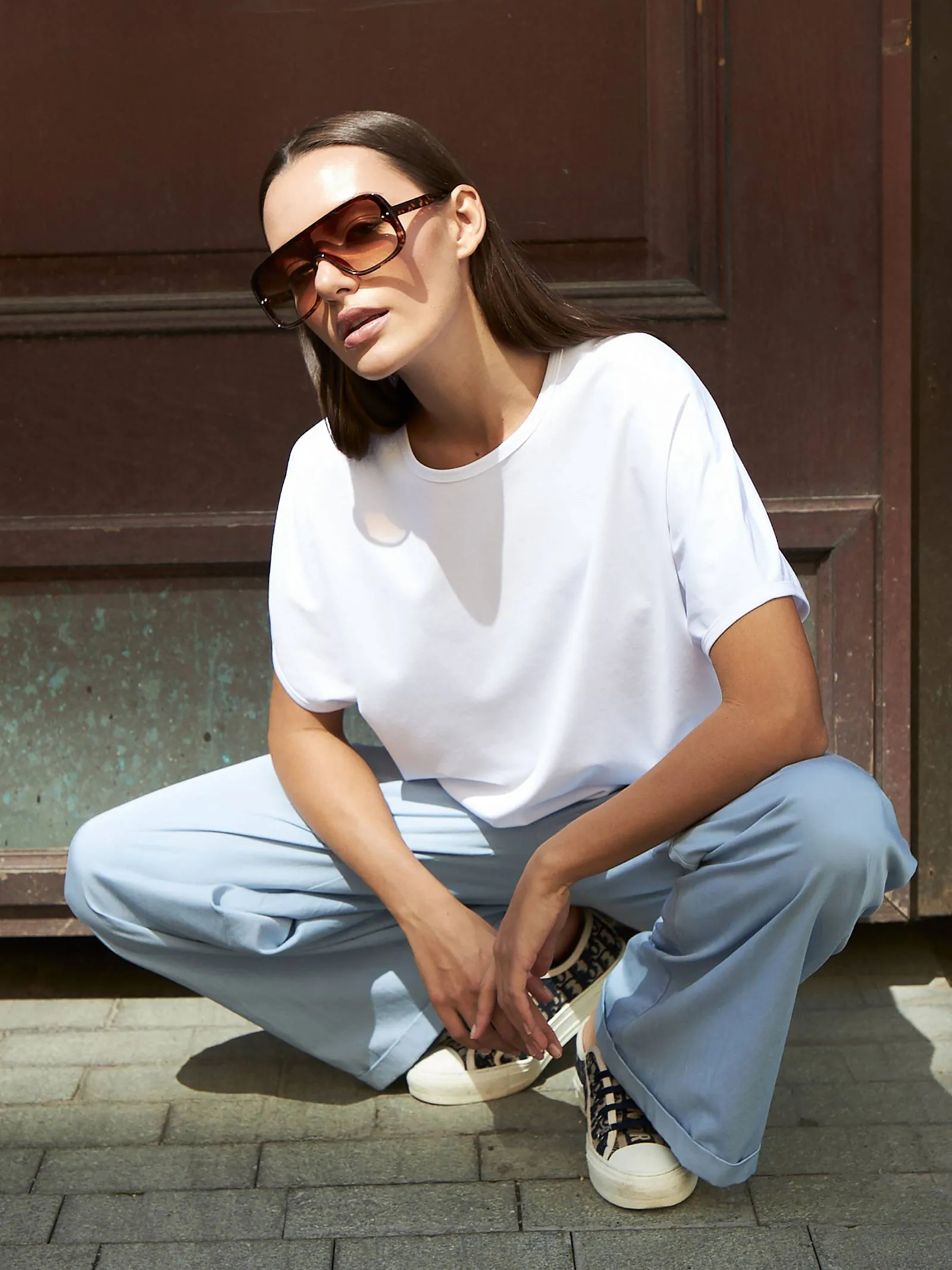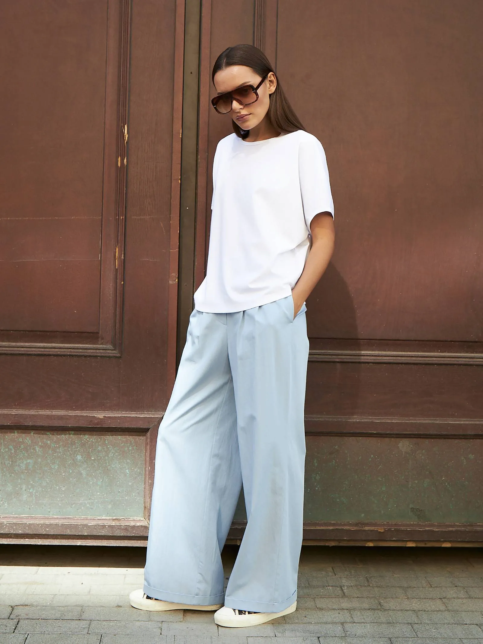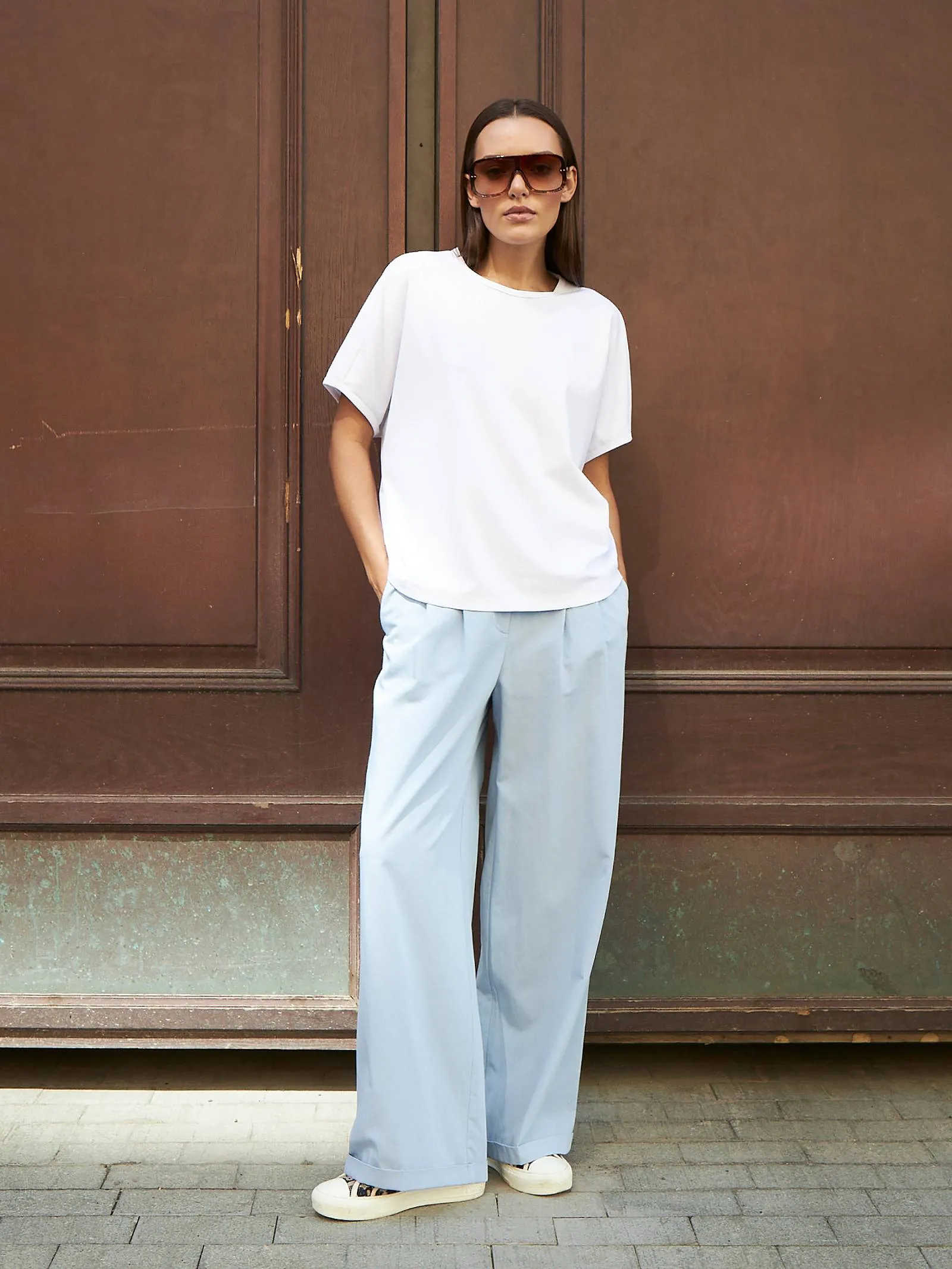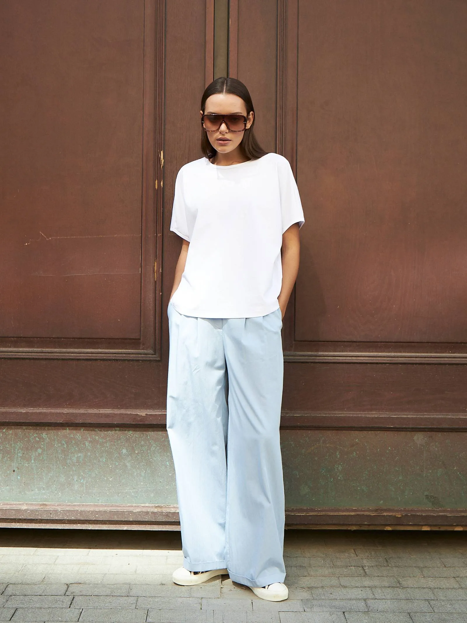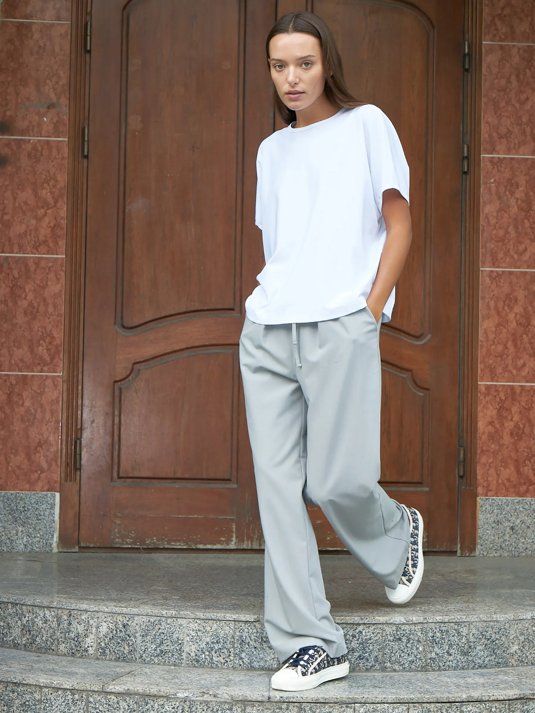 Трикотажная блуза свободного кроя с круглым вырезом и коротким рукавом. Модель выполнена из органического хлопка, практичного нейлона и тянущегося эластана. Блуза подойдет для создания повседневных образов в стиле кэжуал и современной классики в сочетании с базовым или ярким низом.
