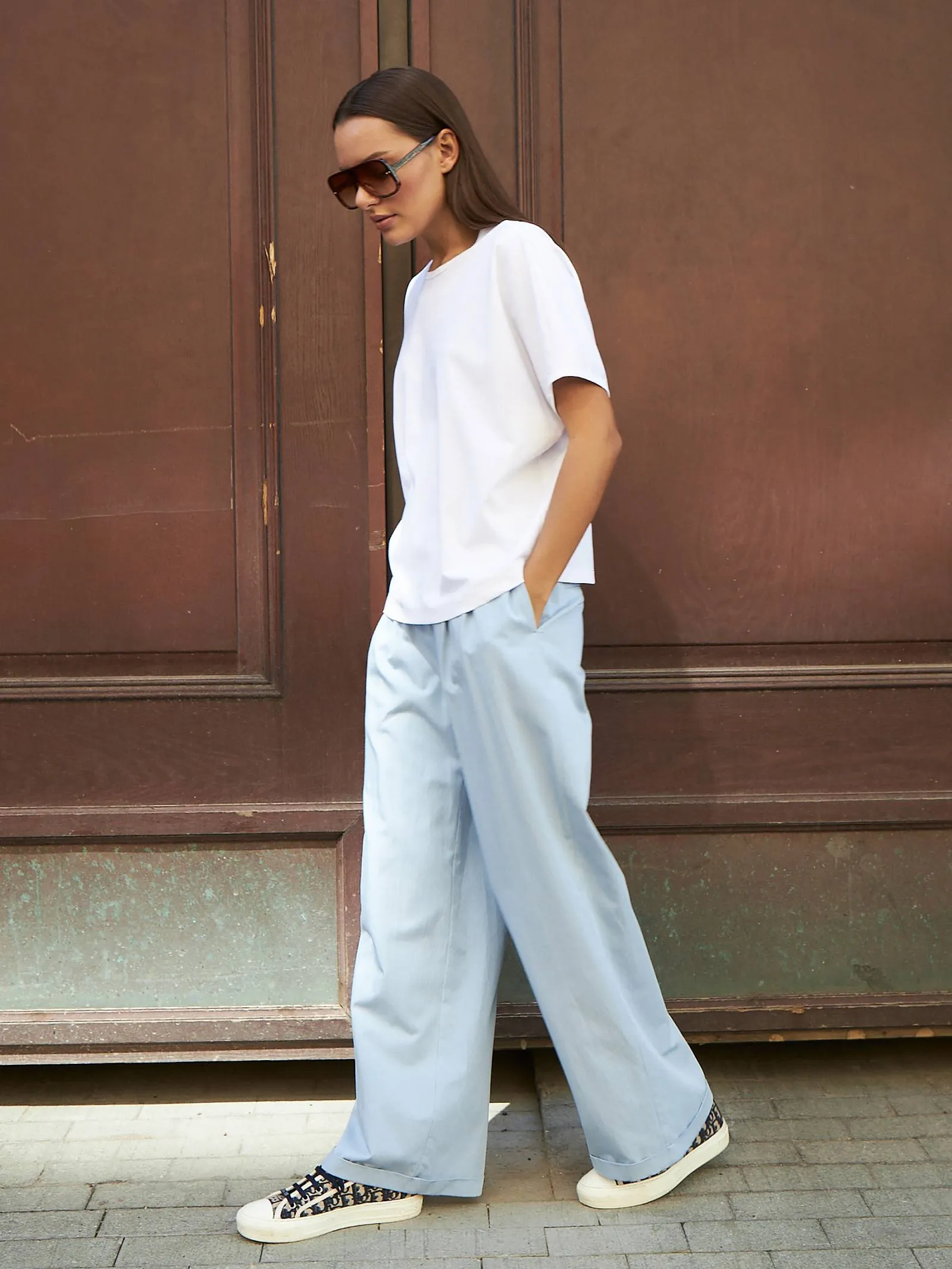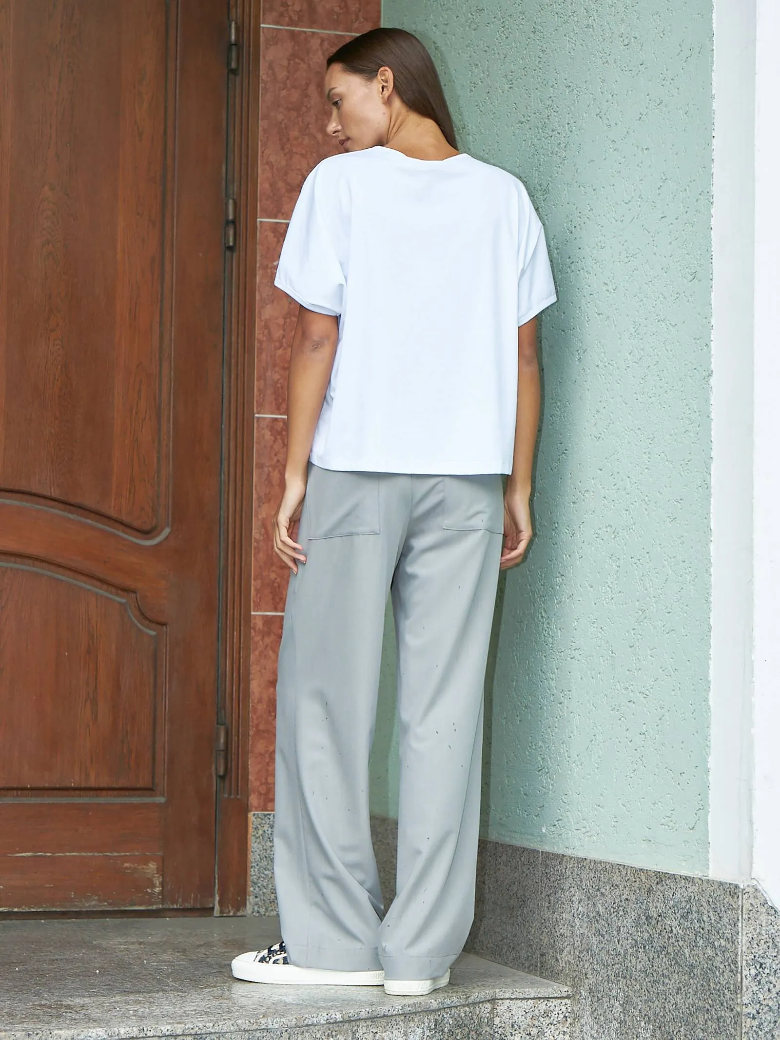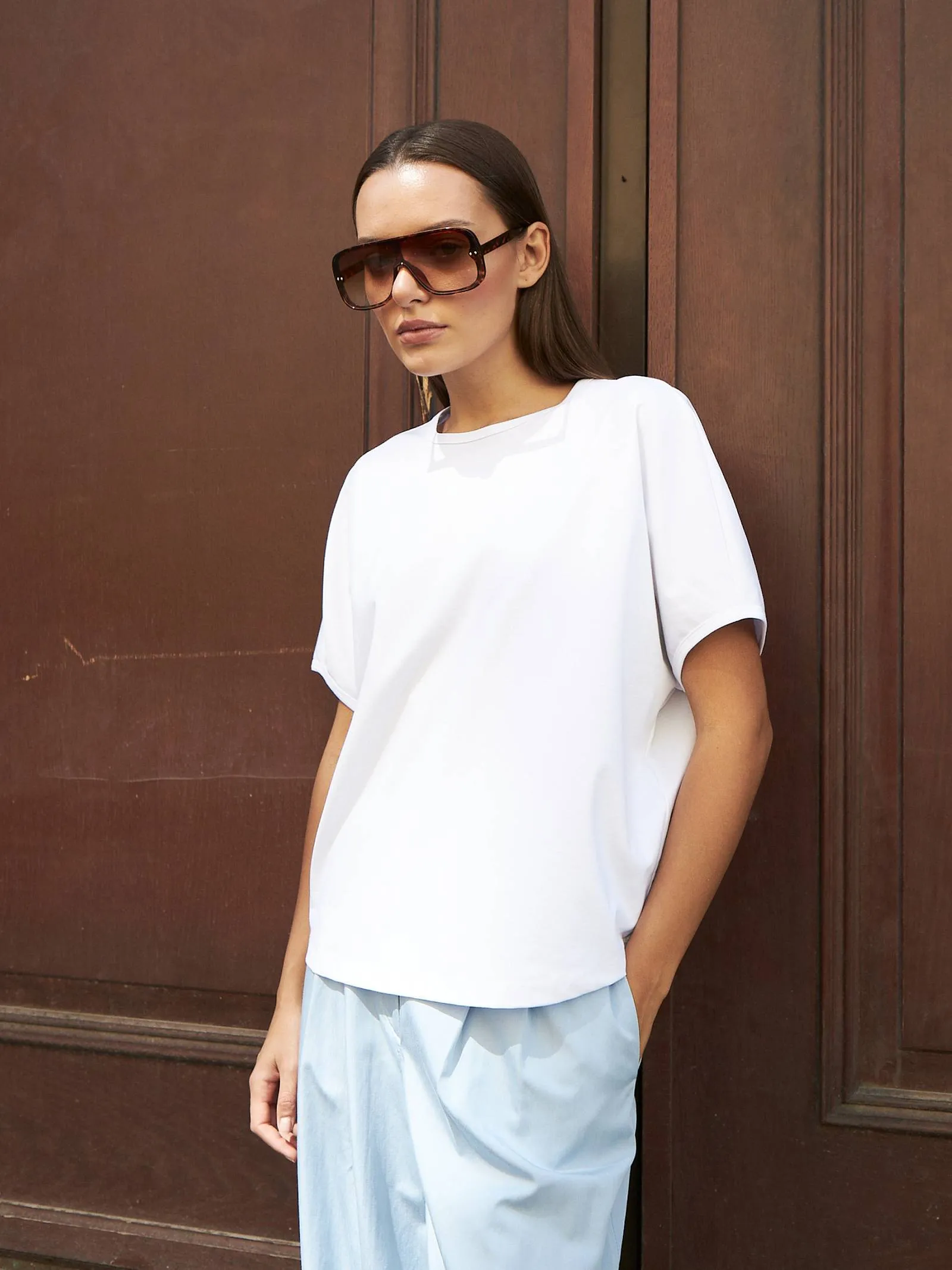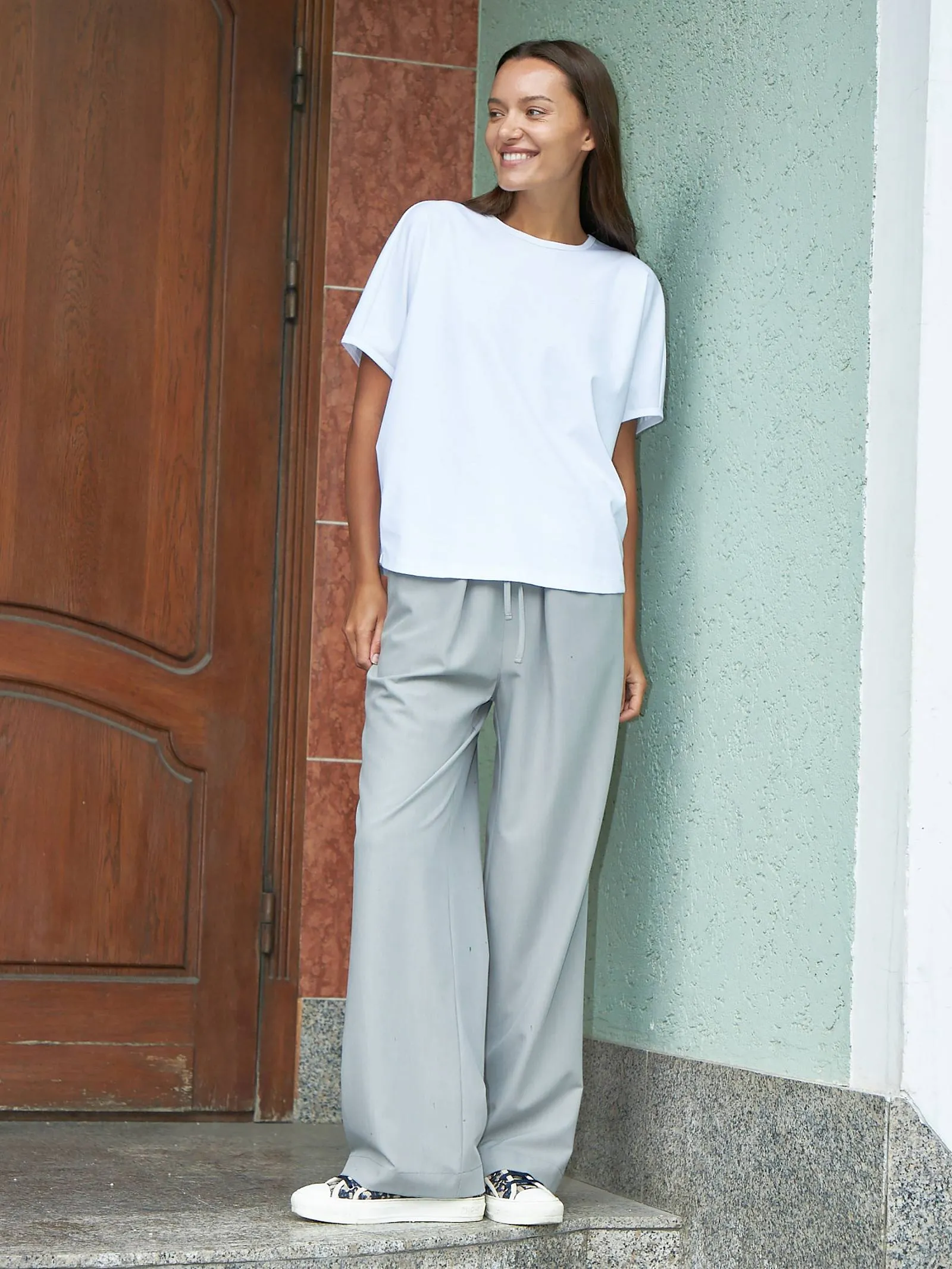 Трикотажная блуза свободного кроя с круглым вырезом и коротким рукавом. Модель выполнена из органического хлопка, практичного нейлона и тянущегося эластана. Блуза подойдет для создания повседневных образов в стиле кэжуал и современной классики в сочетании с базовым или ярким низом.