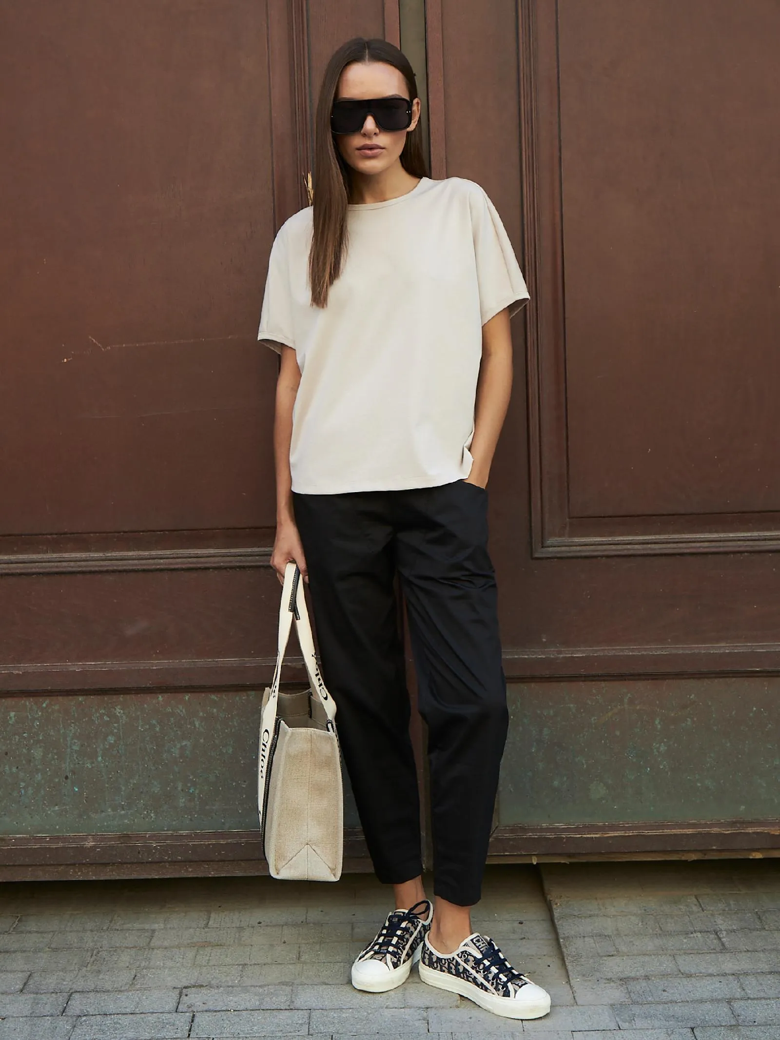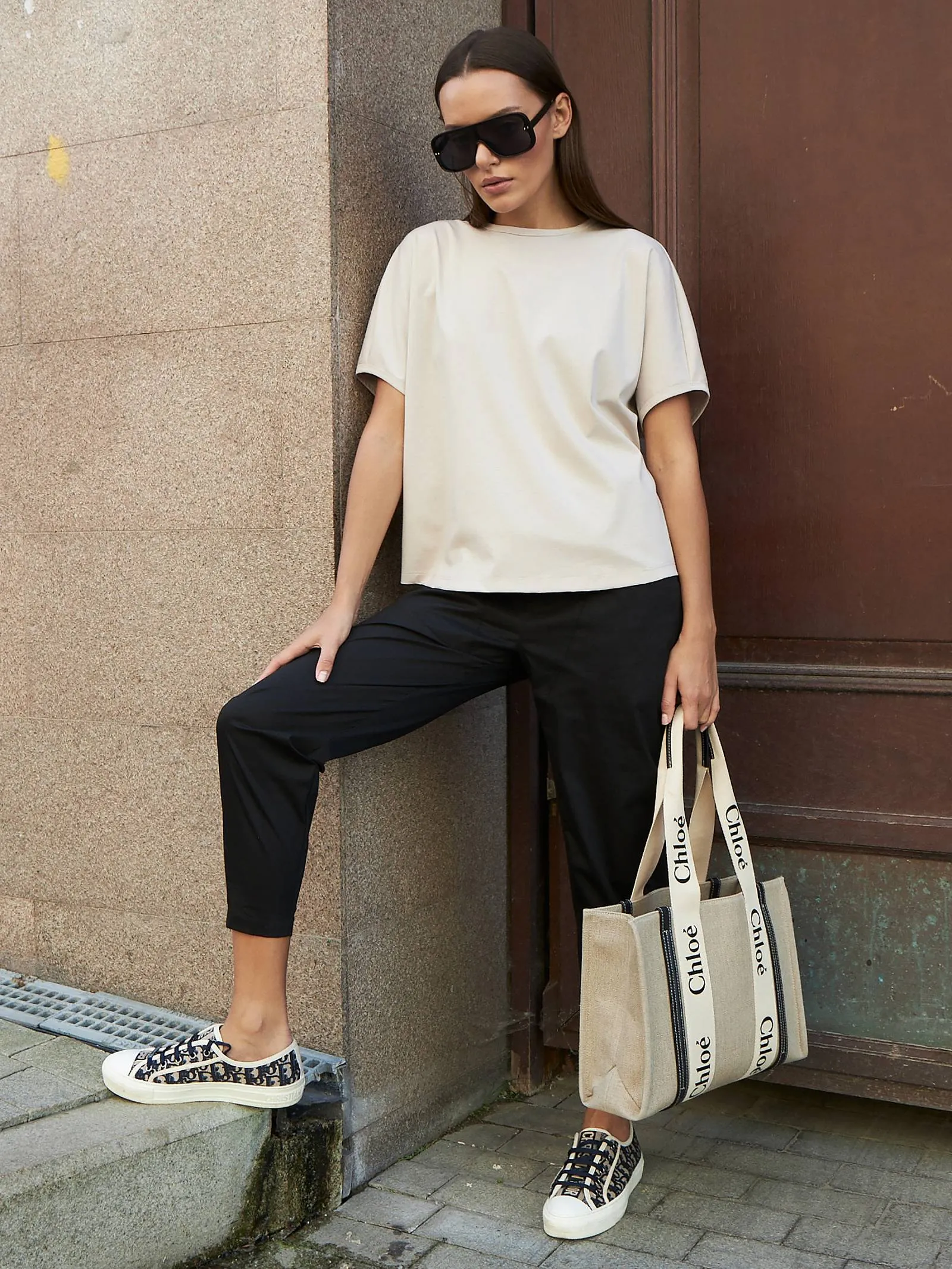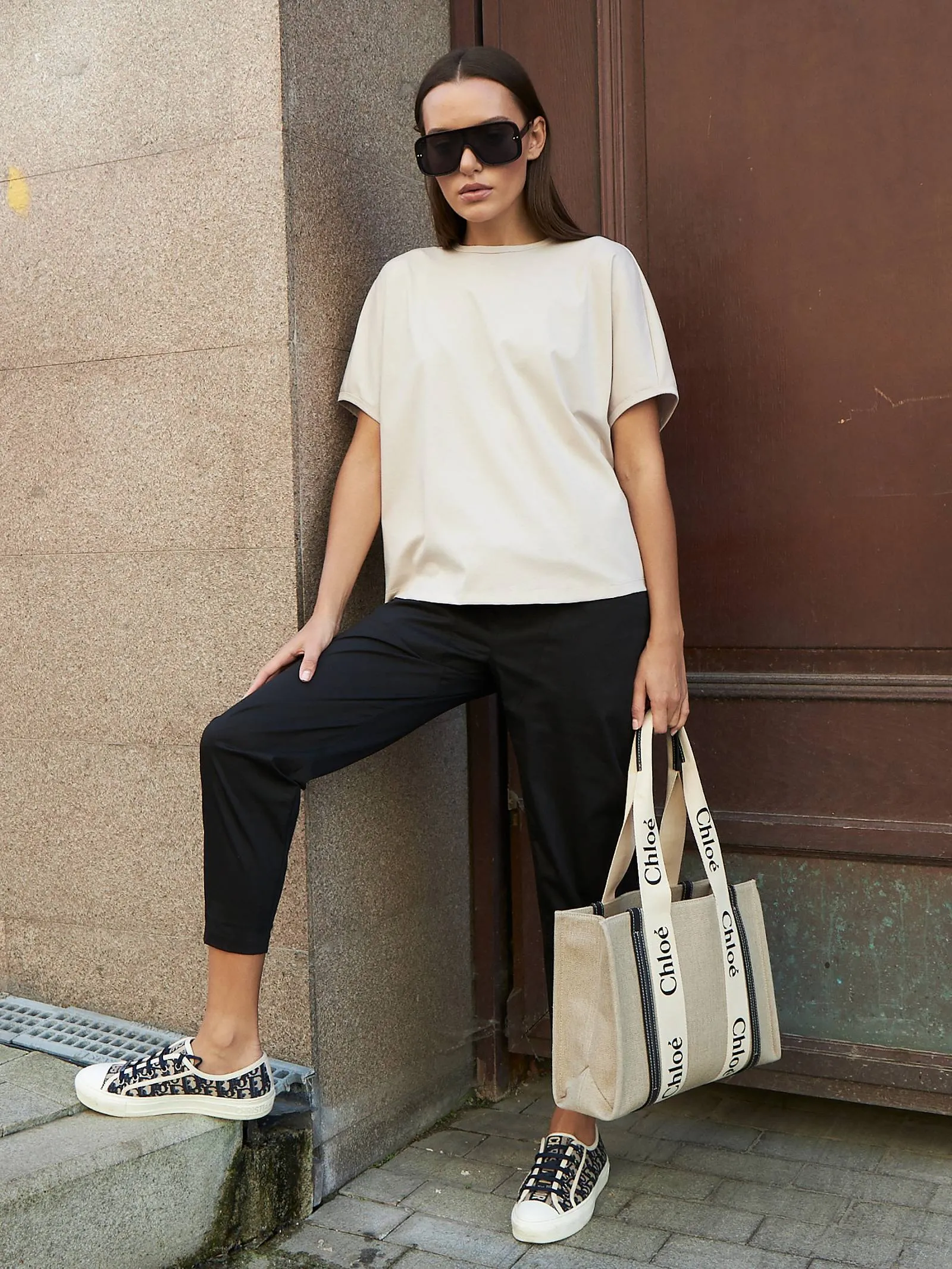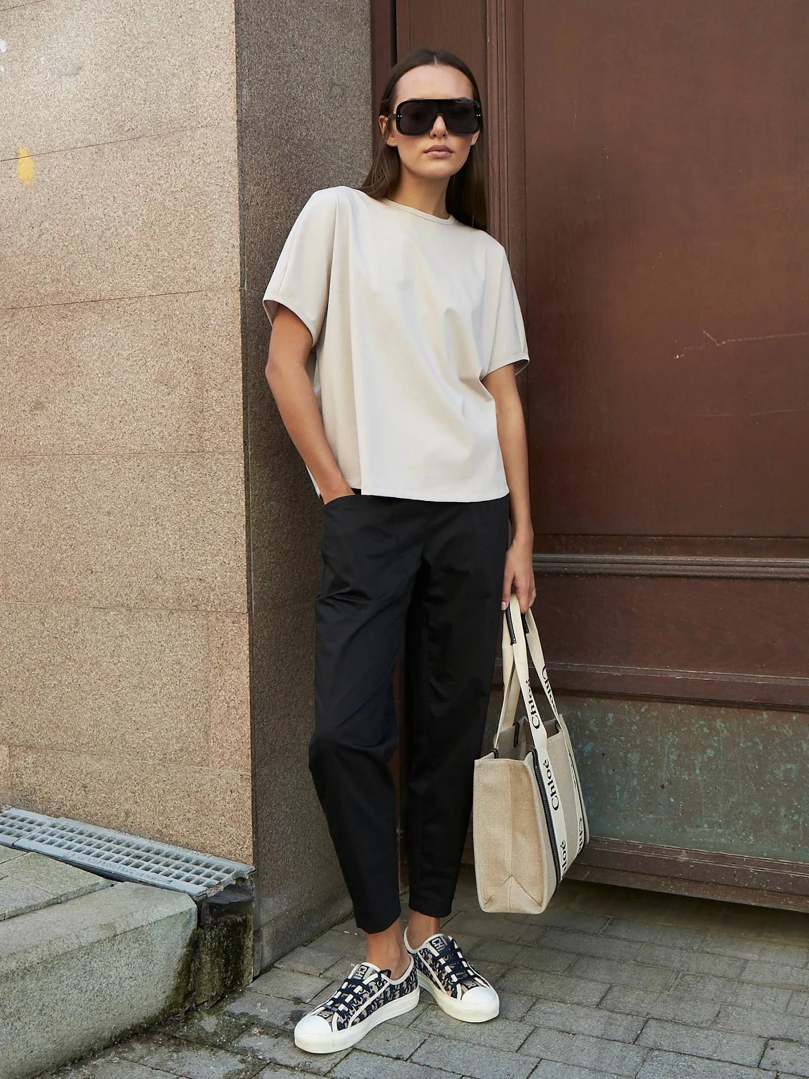 Трикотажная блуза свободного кроя с круглым вырезом и коротким рукавом. Модель выполнена из органического хлопка, практичного нейлона и тянущегося эластана. Блуза подойдет для создания повседневных образов в стиле кэжуал и современной классики в сочетании с базовым или ярким низом.
