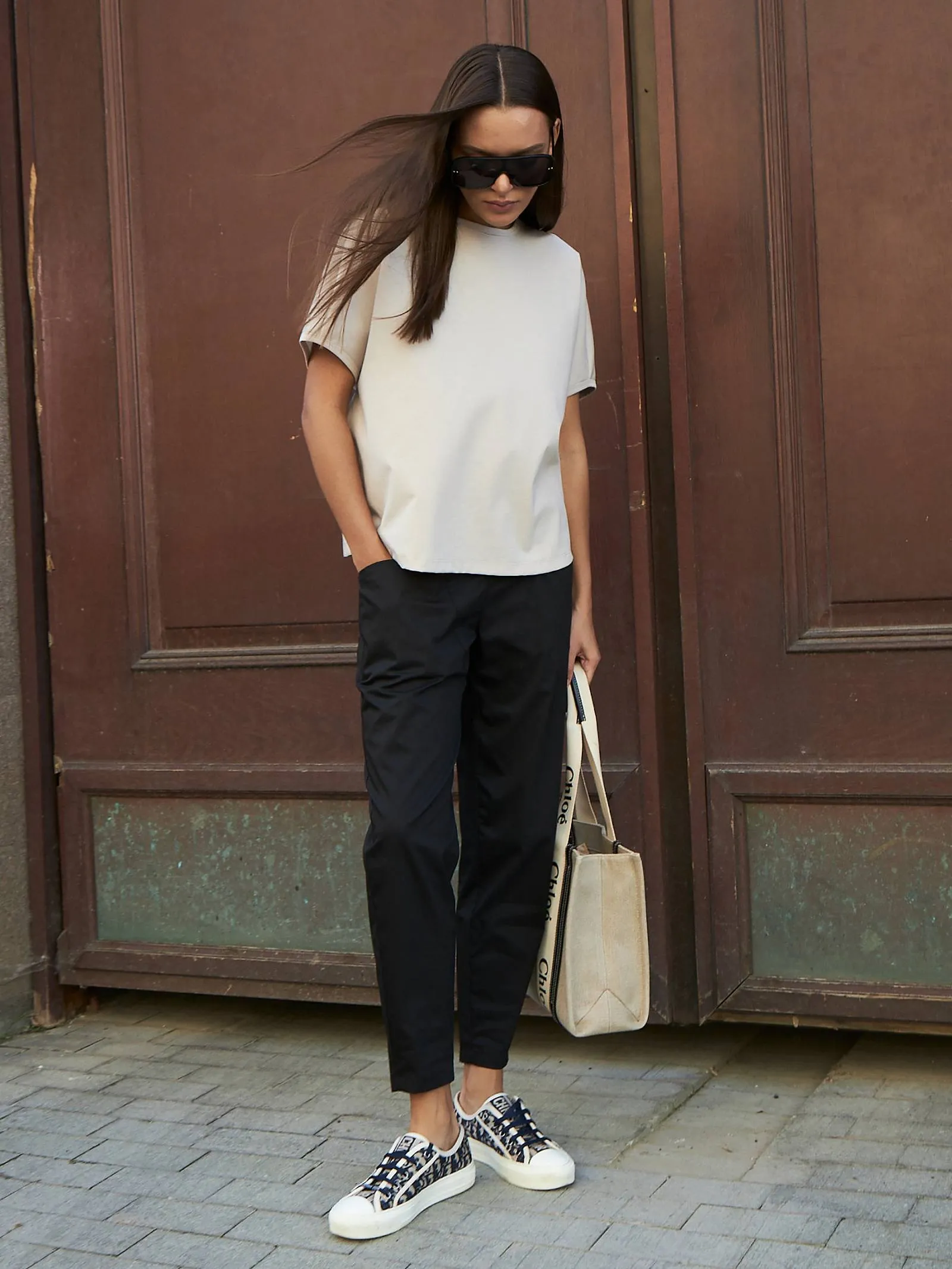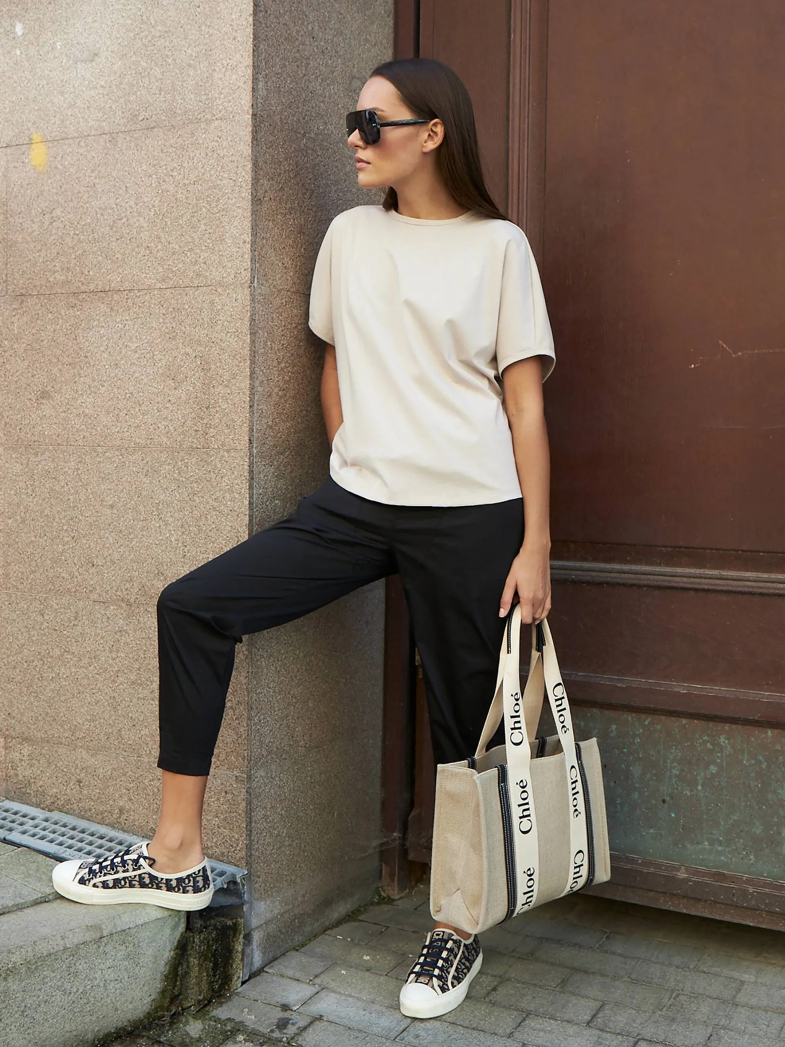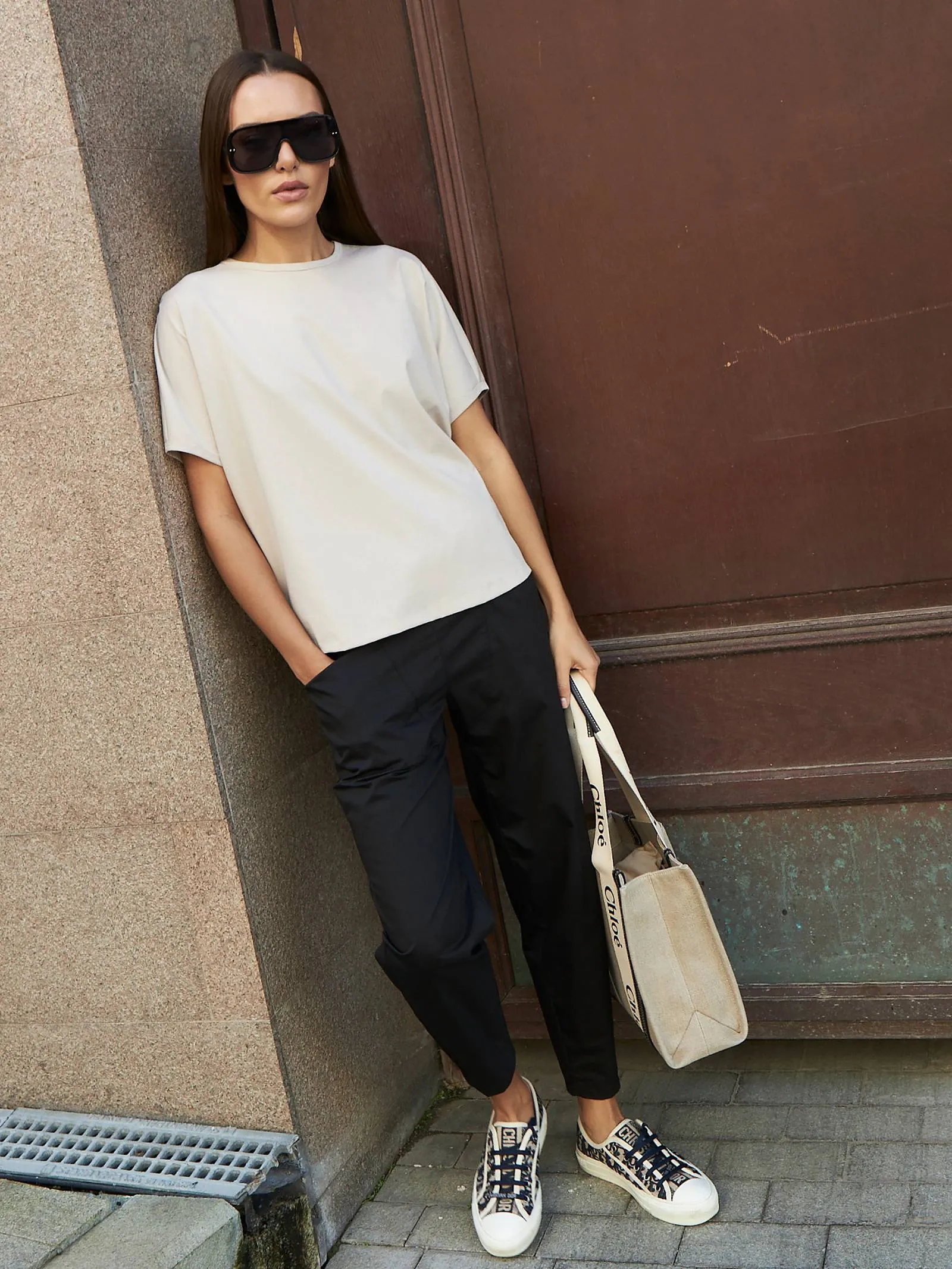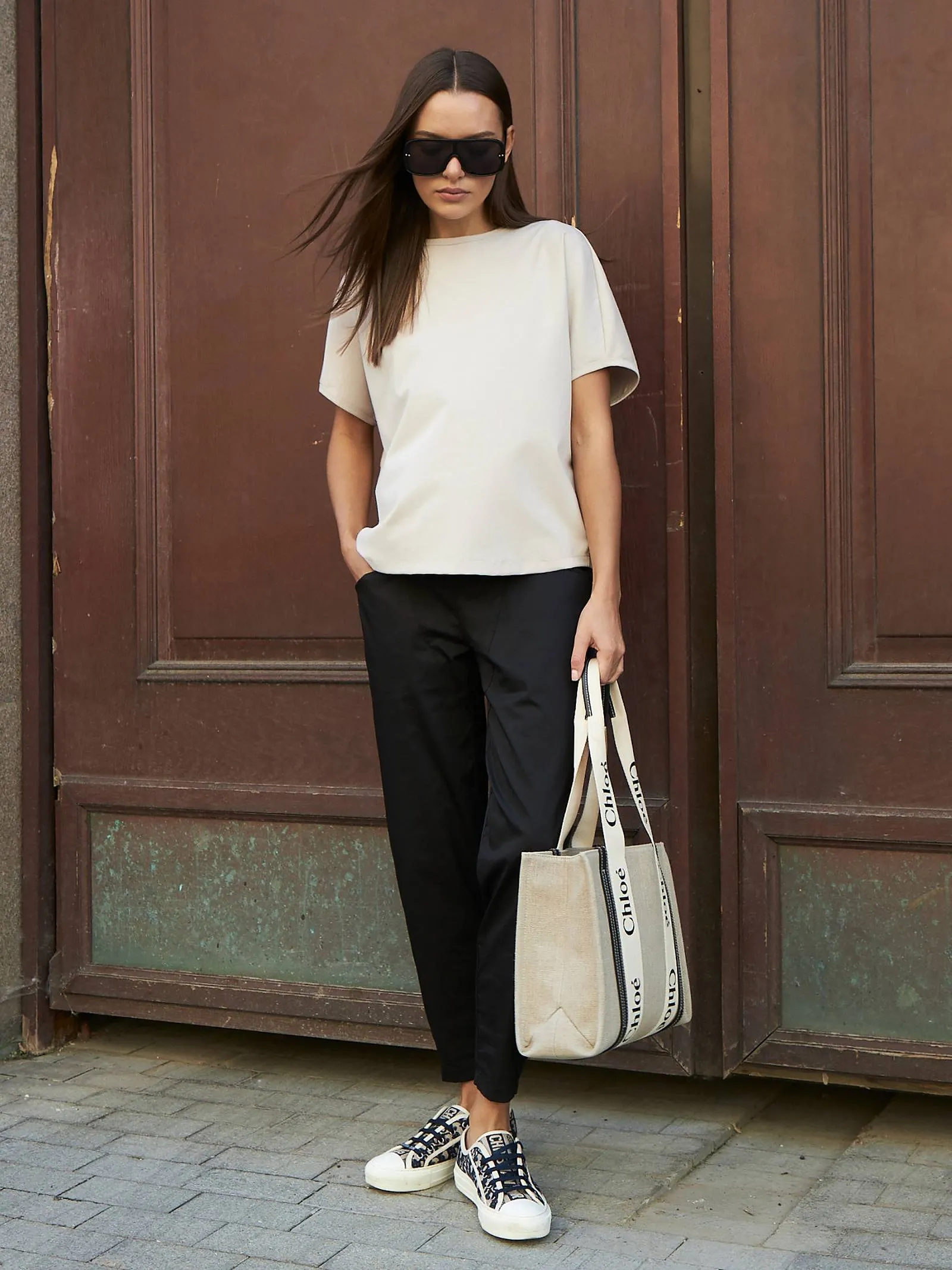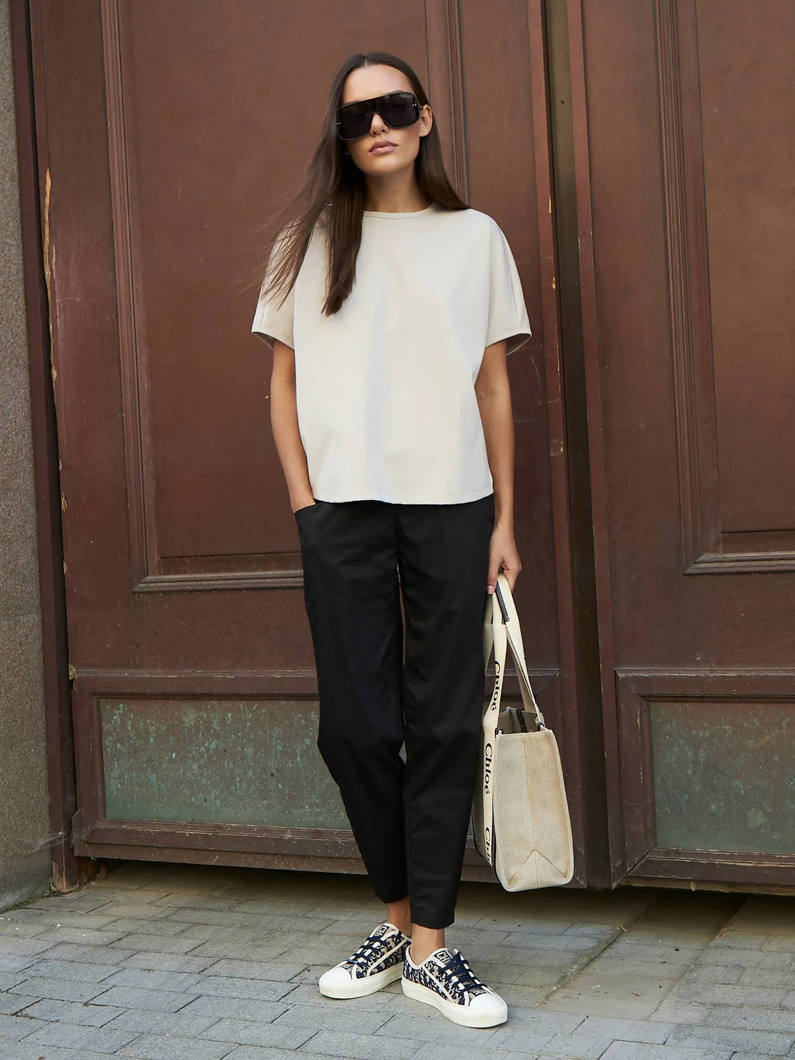 Трикотажная блуза свободного кроя с круглым вырезом и коротким рукавом. Модель выполнена из органического хлопка, практичного нейлона и тянущегося эластана. Блуза подойдет для создания повседневных образов в стиле кэжуал и современной классики в сочетании с базовым или ярким низом.