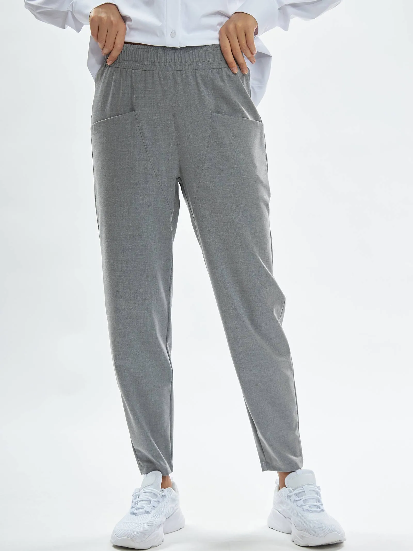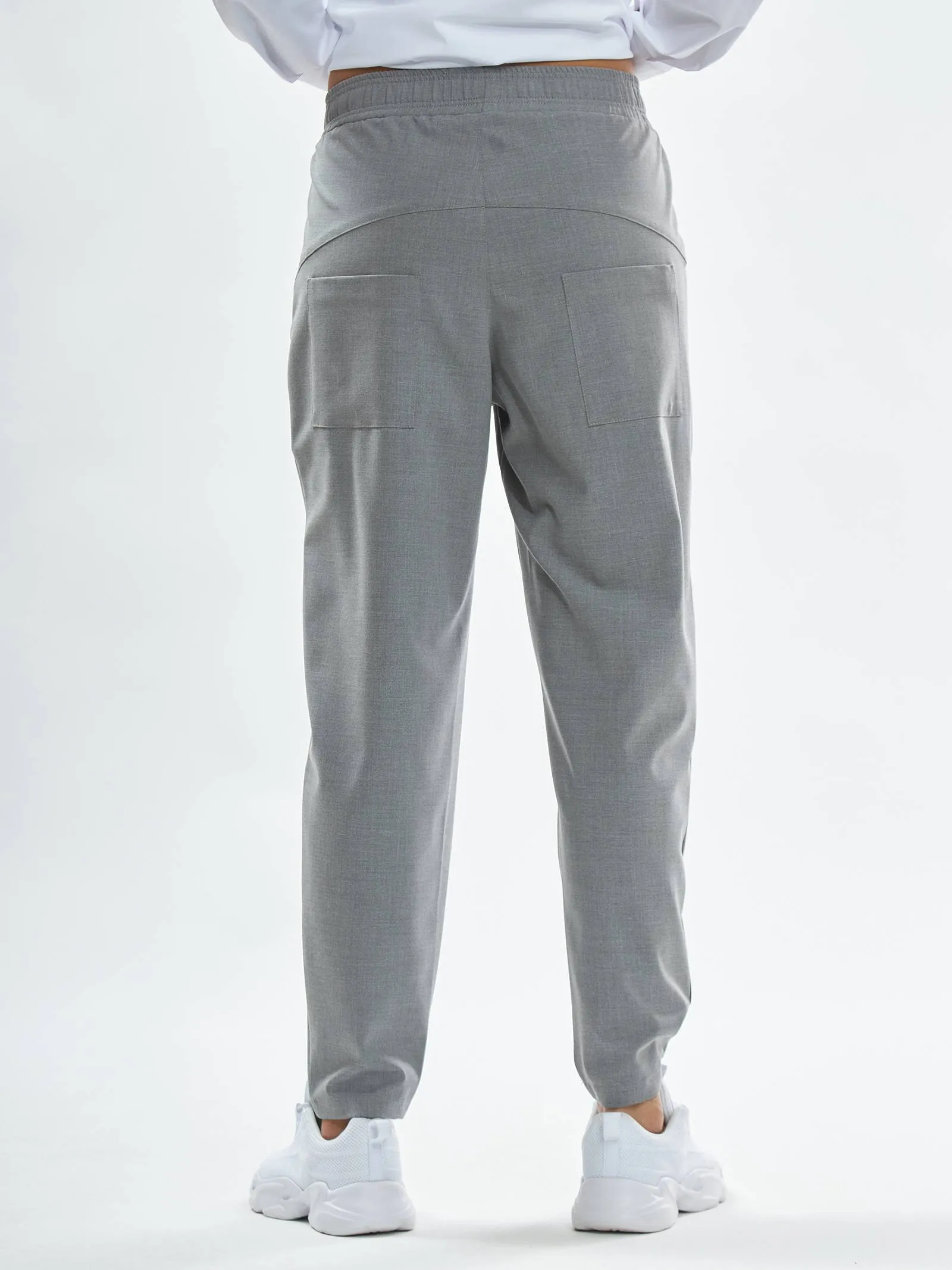 Комфортные брюки на резинке. Благодаря удачному крою, брюки идеально сидят и вытягивают фигуру. Два кармана среднего размера спереди и два небольших накладных кармана сзади. Внутри спрятан шнурок для регулирования посадки. Брюки созданы из практичной маломнущейся костюмной ткани и очень просты в уходе. Рекомендуем сочетать их с футболками или свитшотами Gezalook by UDGY