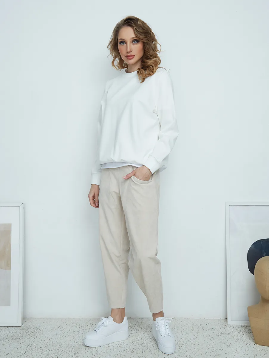 Брюки из потрясающего микровельвета на резинке. Комфортные, с большими функциональными карманами спереди и двумя сзади. Брюки выполнены из приятной мягкой вельветовой ткани, которая практически не мнется. Сочетать можно с любыми водолазками, свитшотами, жакетами и футболками из каталога Gezalook