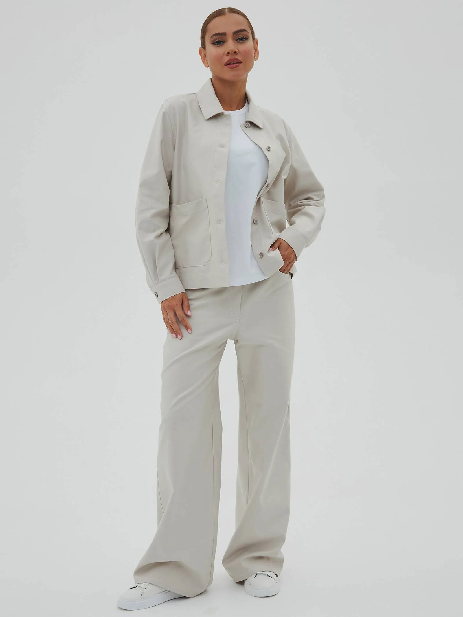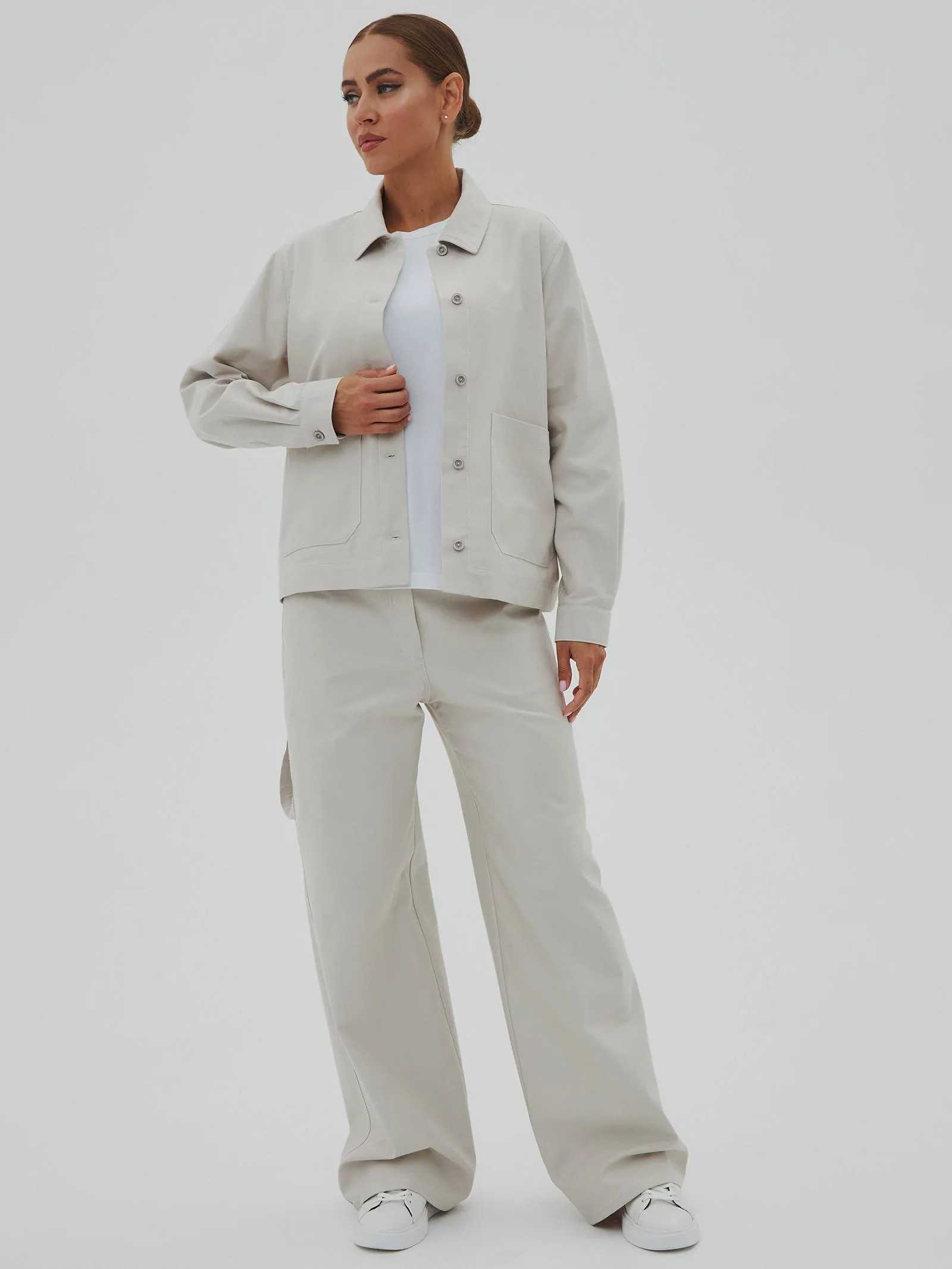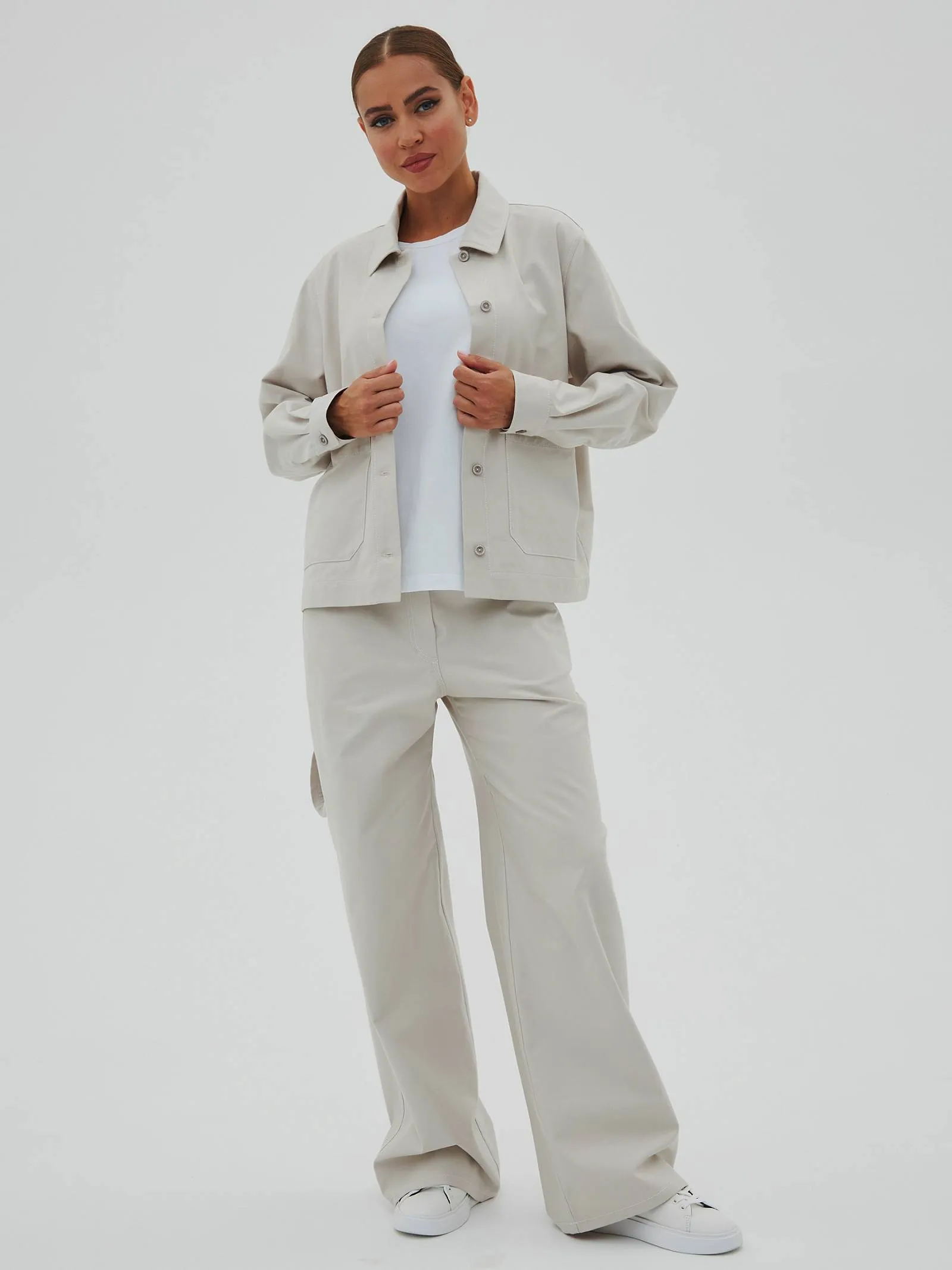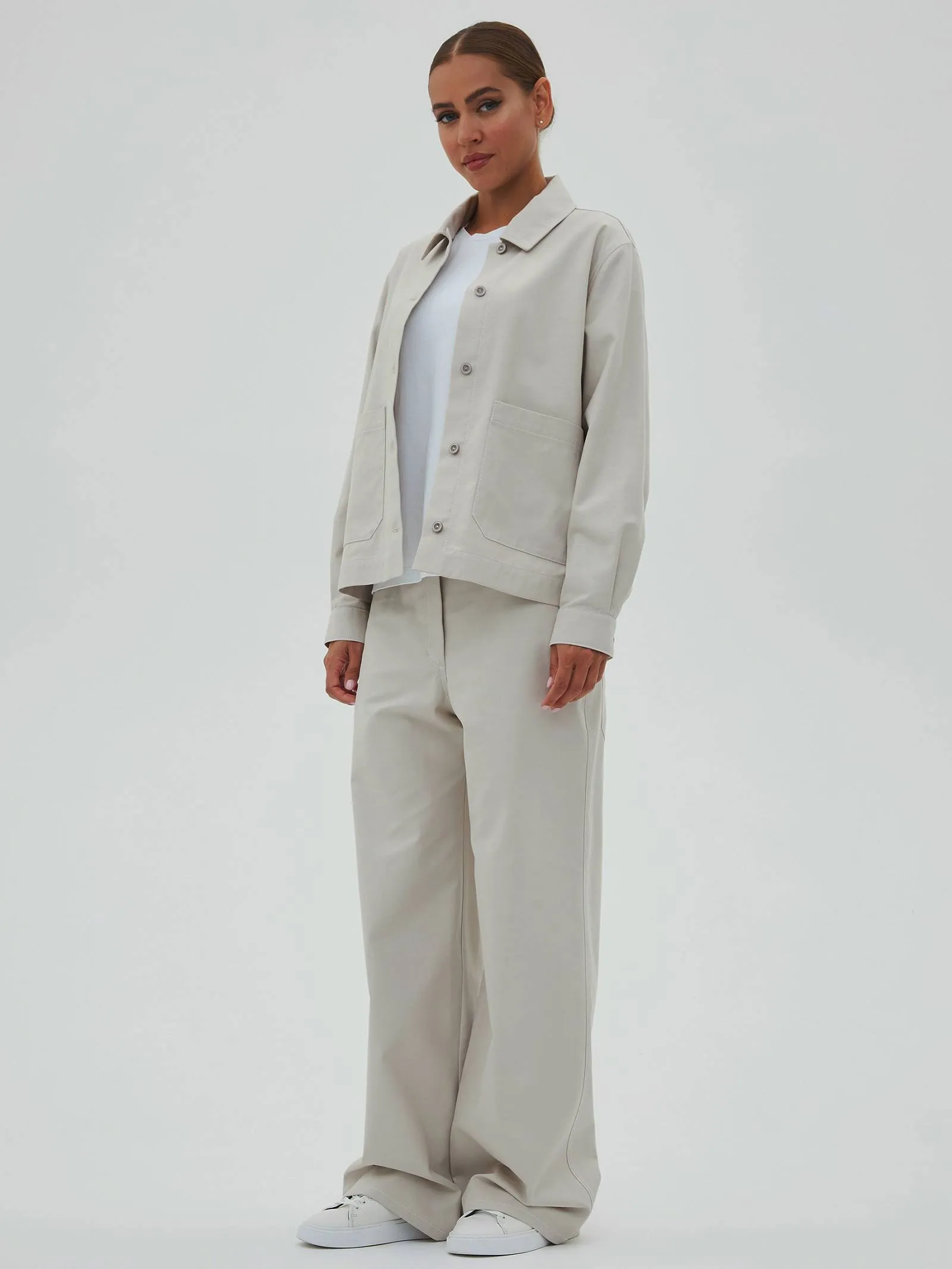 Женские прямые брюки из шелковистого хлопка под джинсу средней плотности — идеальный выбор для создания стильного и комфортного образа. Они имеют классическую прямую форму и длинные брючины, которые подчёркивают фигуру. Пояс застёгивается на одну пуговицу и молнию, обеспечивая удобство и надёжность. Спереди брюки оснащены карманами с подкроенными бочками, что придаёт им современный вид. На правом подкройном кармане расположен небольшой накладной карман, который добавляет оригинальности. Сзади брюки имеют два накладных кармана. У правого заднего кармана выделяется брендированная планка, которая создаёт дополнительный стильный акцент. Эти брюки станут отличным выбором для делового или повседневного стиля, обеспечивая комфорт и элегантность на весь день.