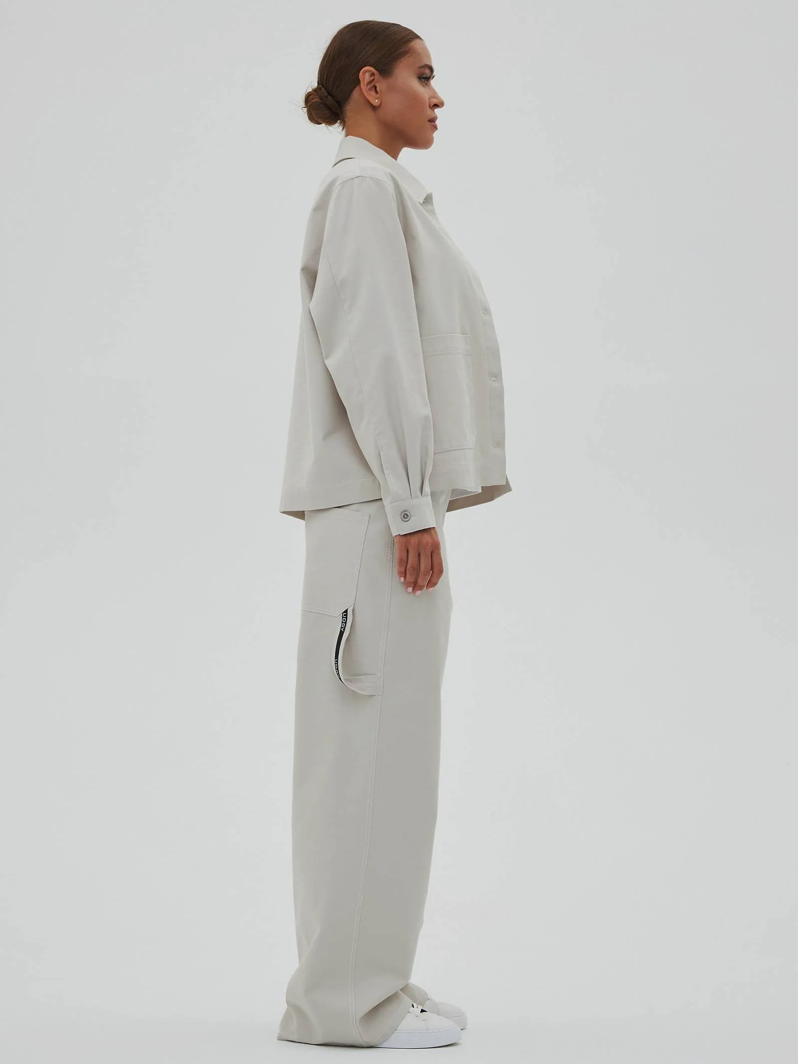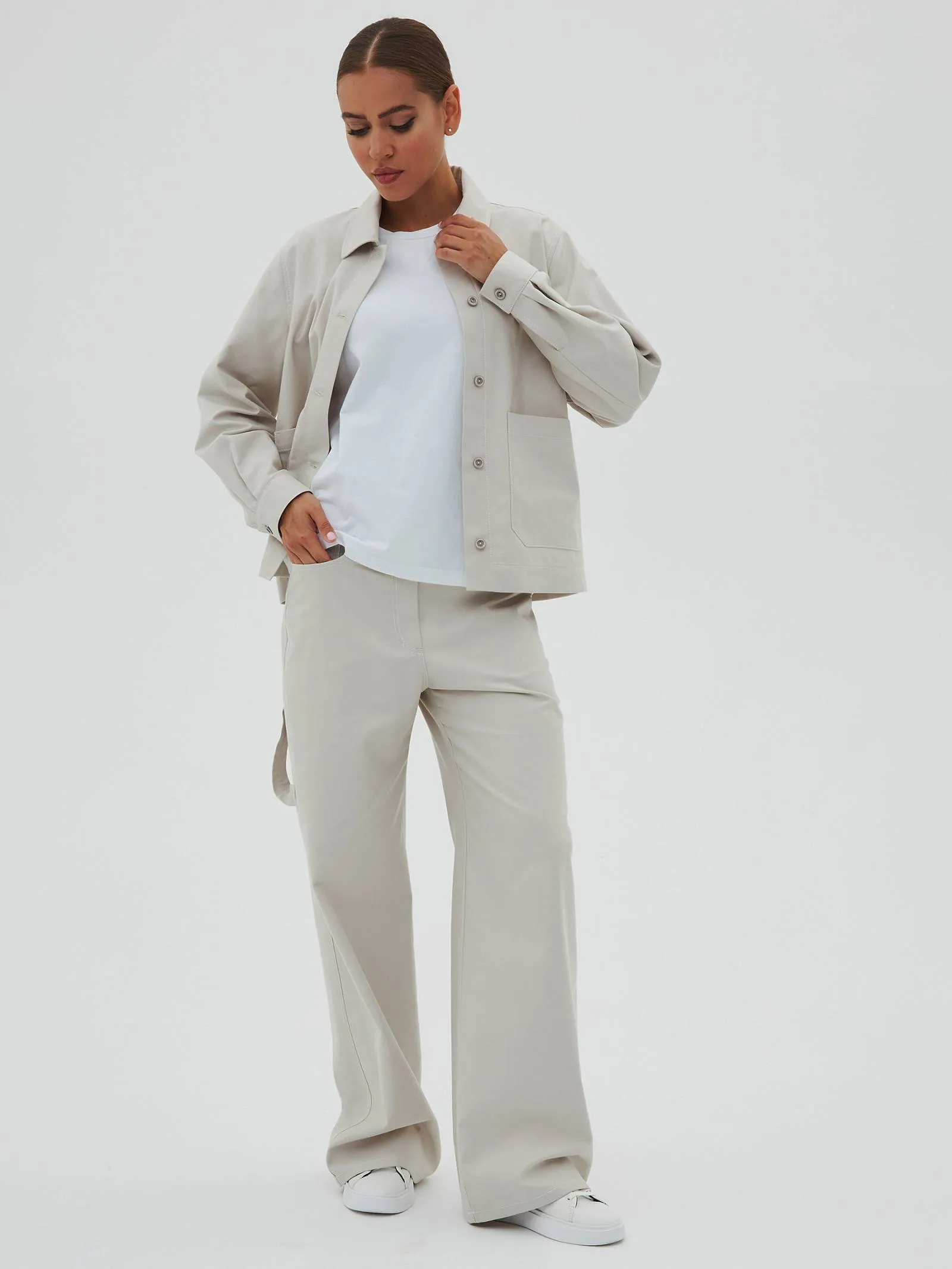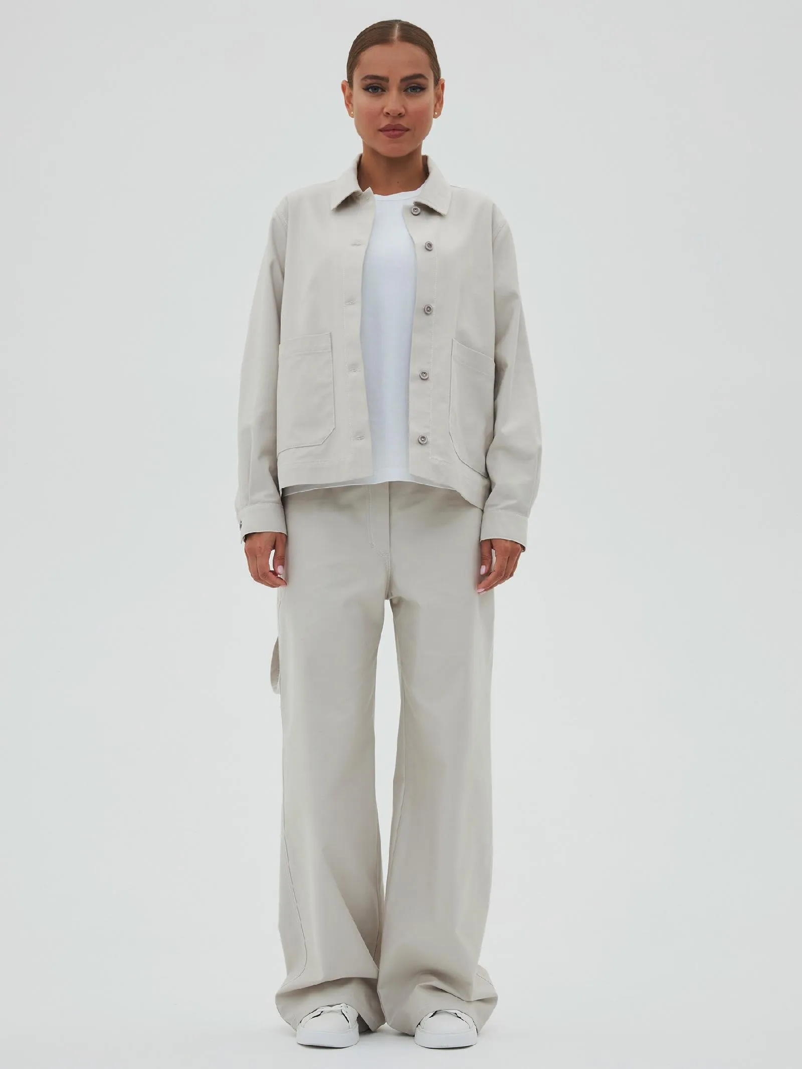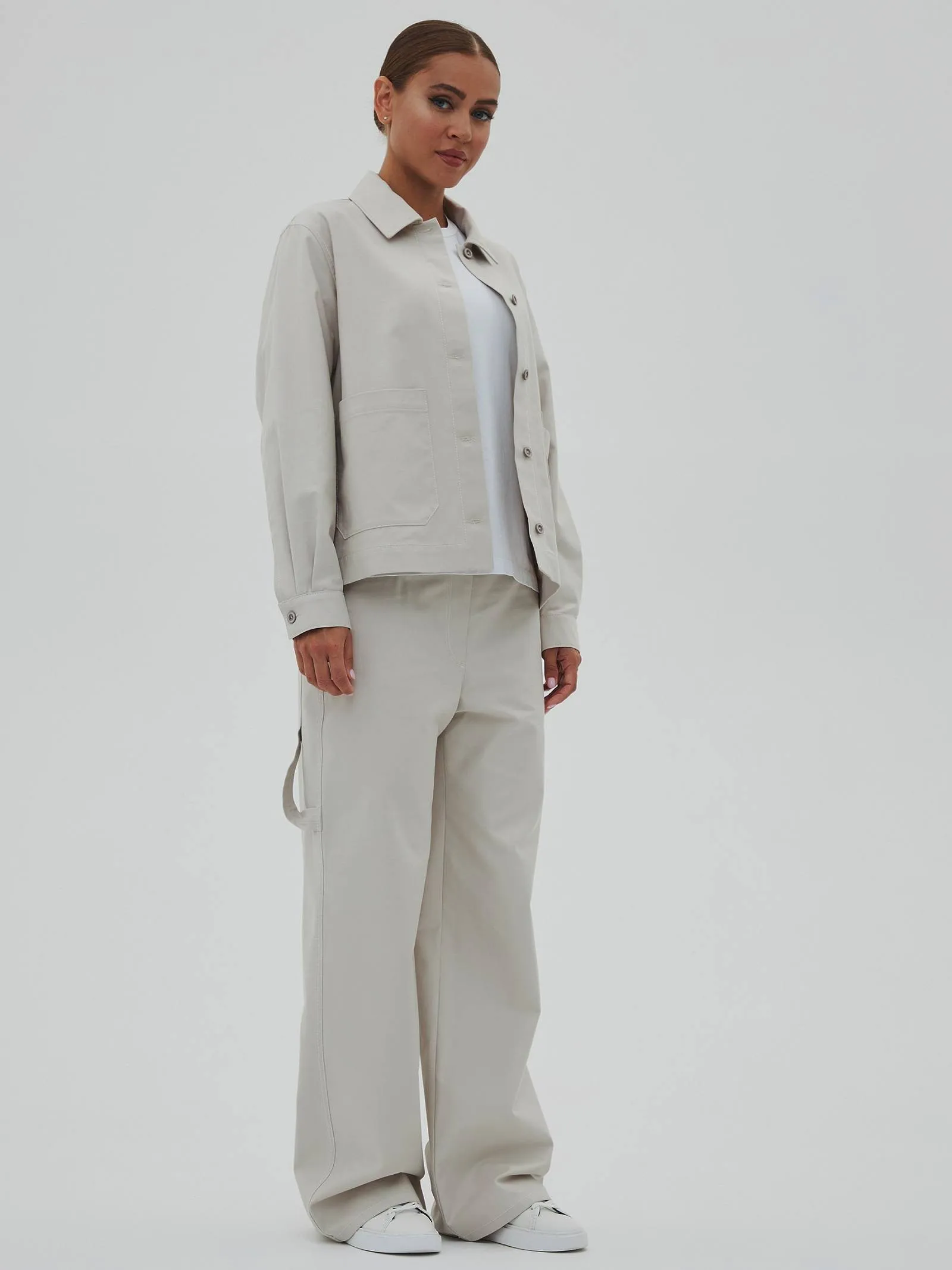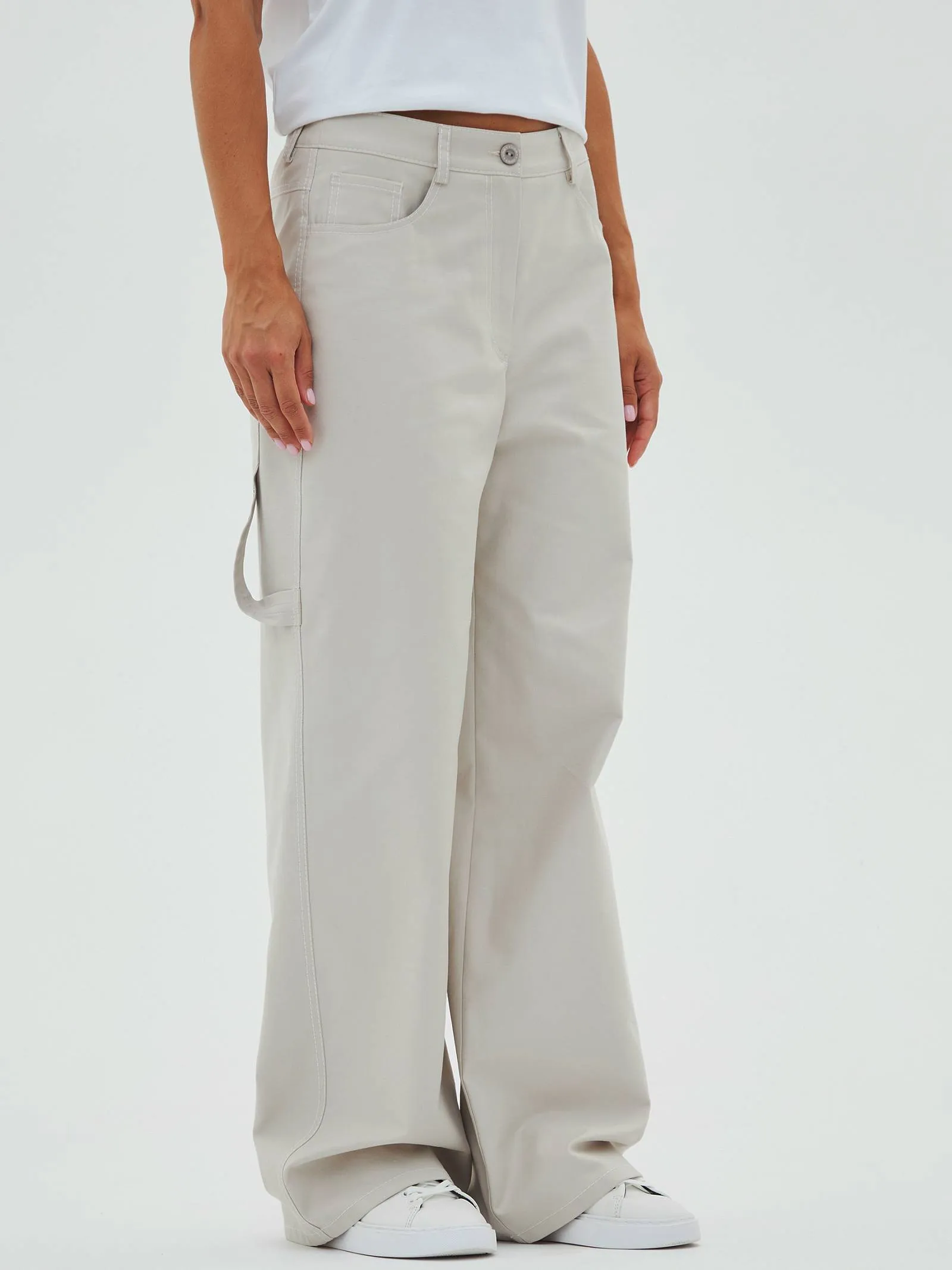 Женские прямые брюки из шелковистого хлопка под джинсу средней плотности — идеальный выбор для создания стильного и комфортного образа. Они имеют классическую прямую форму и длинные брючины, которые подчёркивают фигуру. Пояс застёгивается на одну пуговицу и молнию, обеспечивая удобство и надёжность. Спереди брюки оснащены карманами с подкроенными бочками, что придаёт им современный вид. На правом подкройном кармане расположен небольшой накладной карман, который добавляет оригинальности. Сзади брюки имеют два накладных кармана. У правого заднего кармана выделяется брендированная планка, которая создаёт дополнительный стильный акцент. Эти брюки станут отличным выбором для делового или повседневного стиля, обеспечивая комфорт и элегантность на весь день.
