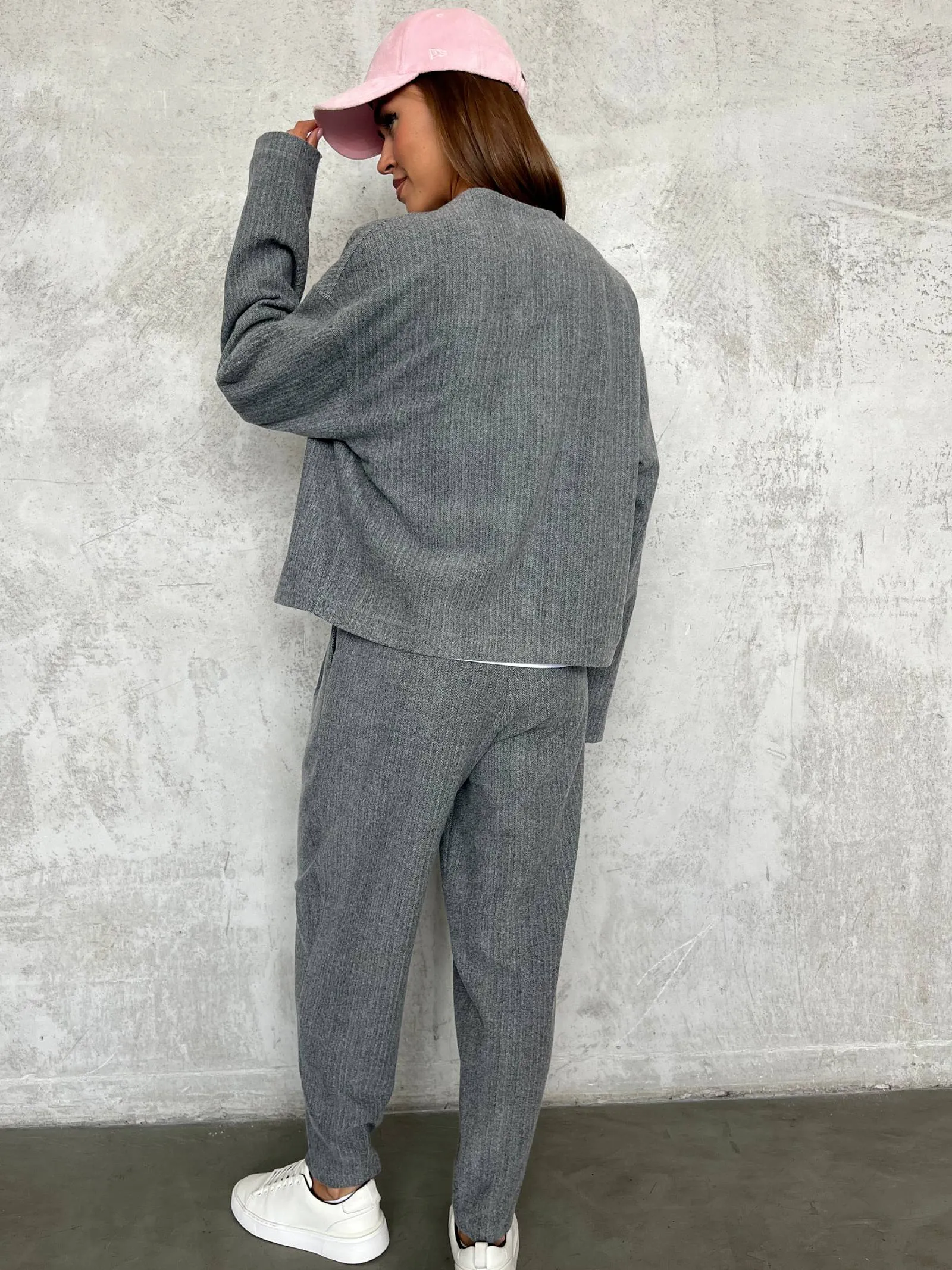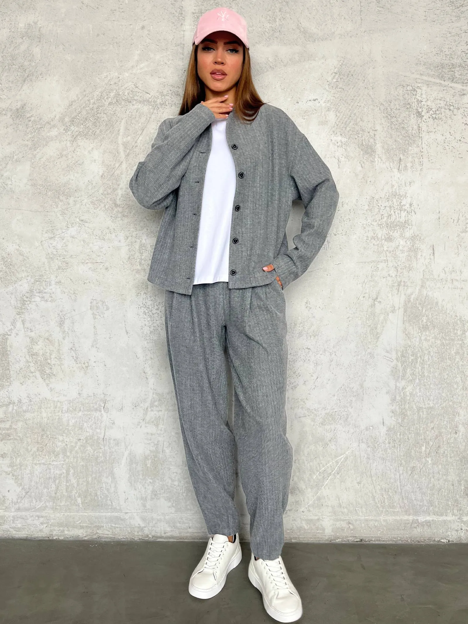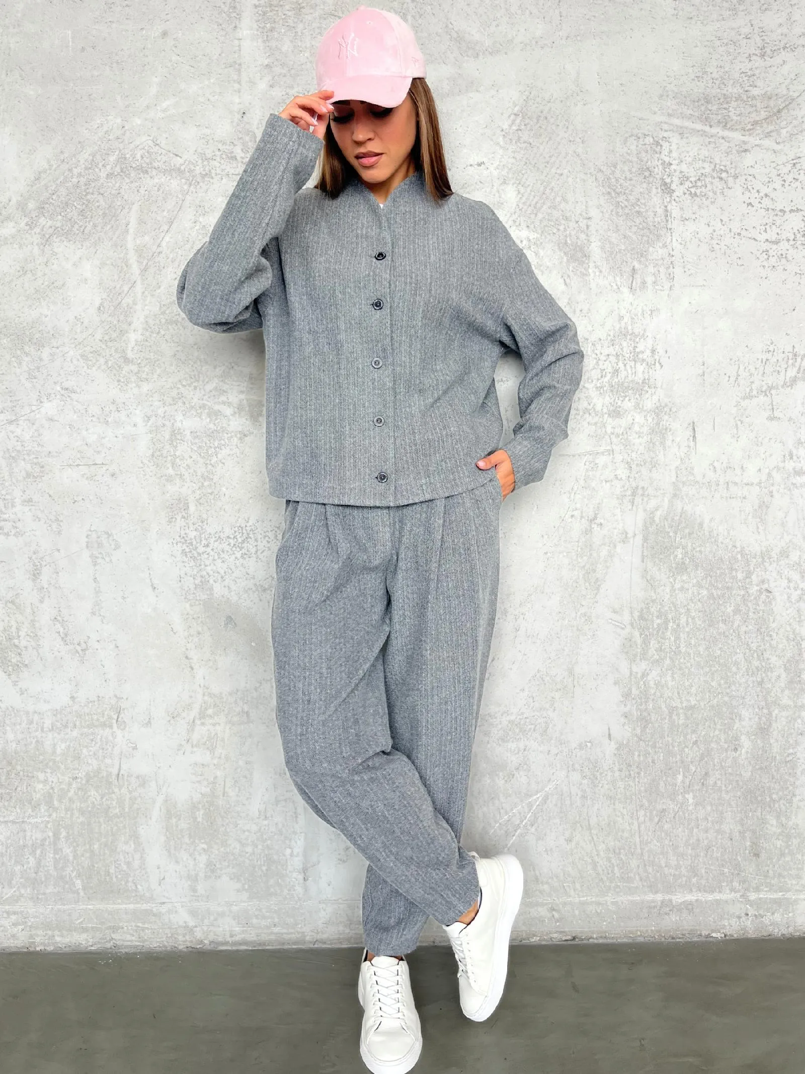 Брюки зауженного кроя с эластичным поясом это сочетание комфорта и элегантности. Мягкая резинка обеспечивает идеальную посадку, а наклонные карманы добавляют удобства в повседневной носке. Две аккуратные складки спереди создают лёгкий объём и стиль.