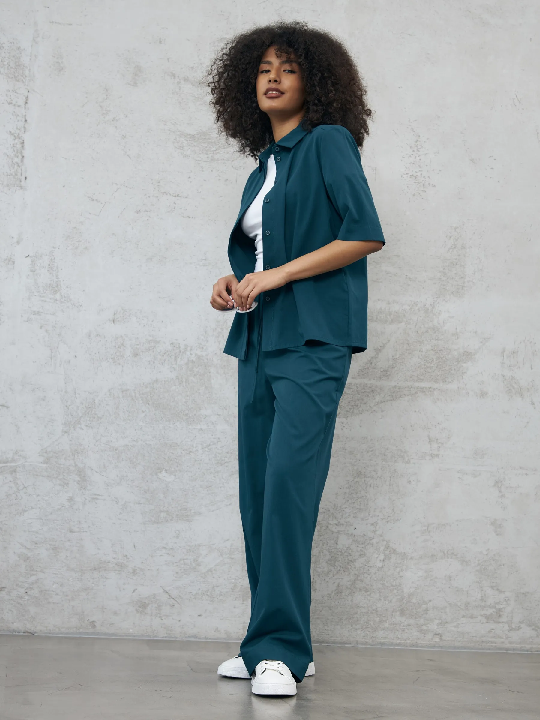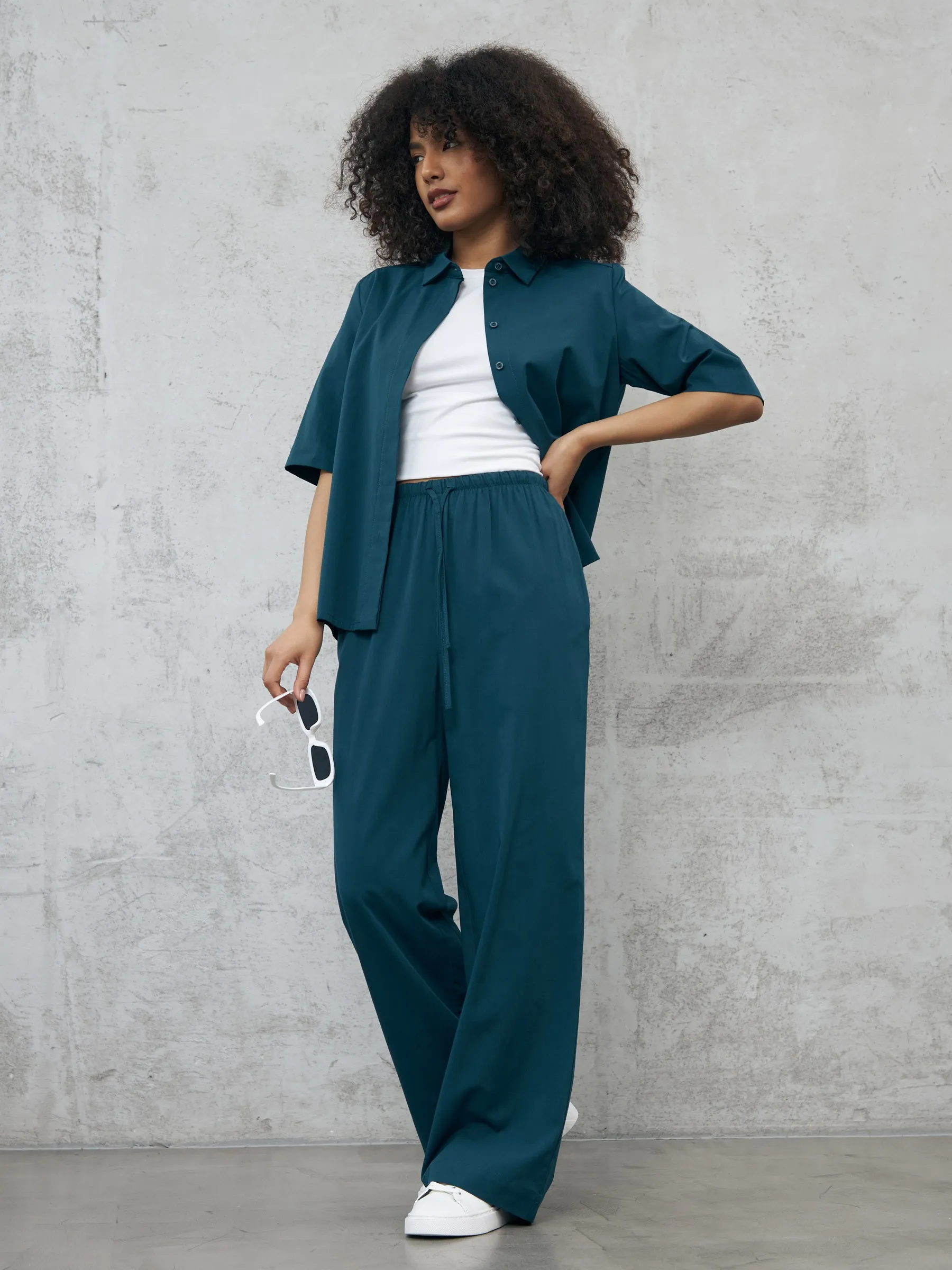 Широкие брюки в пол на комфортной резинке и регулируемом шнурке с удобными карманами. Модель выполнена из мягкой ткани, в составе которой нежная вискоза и дышащий хлопок. Отлично подойдут для создания кэжуал и спортивных образов в тёплое время года в сочетании с футболкой, свитшотом или блузой.