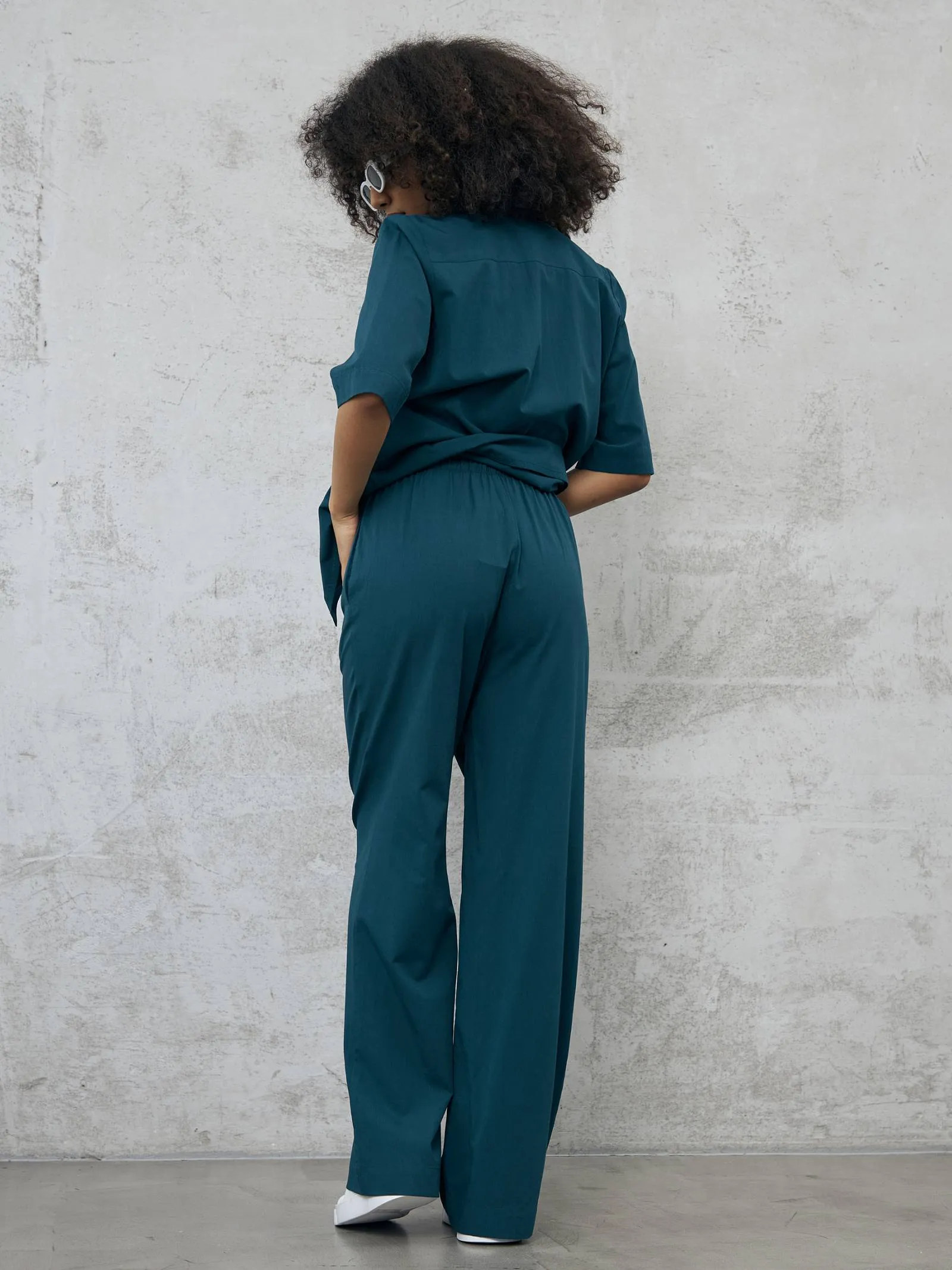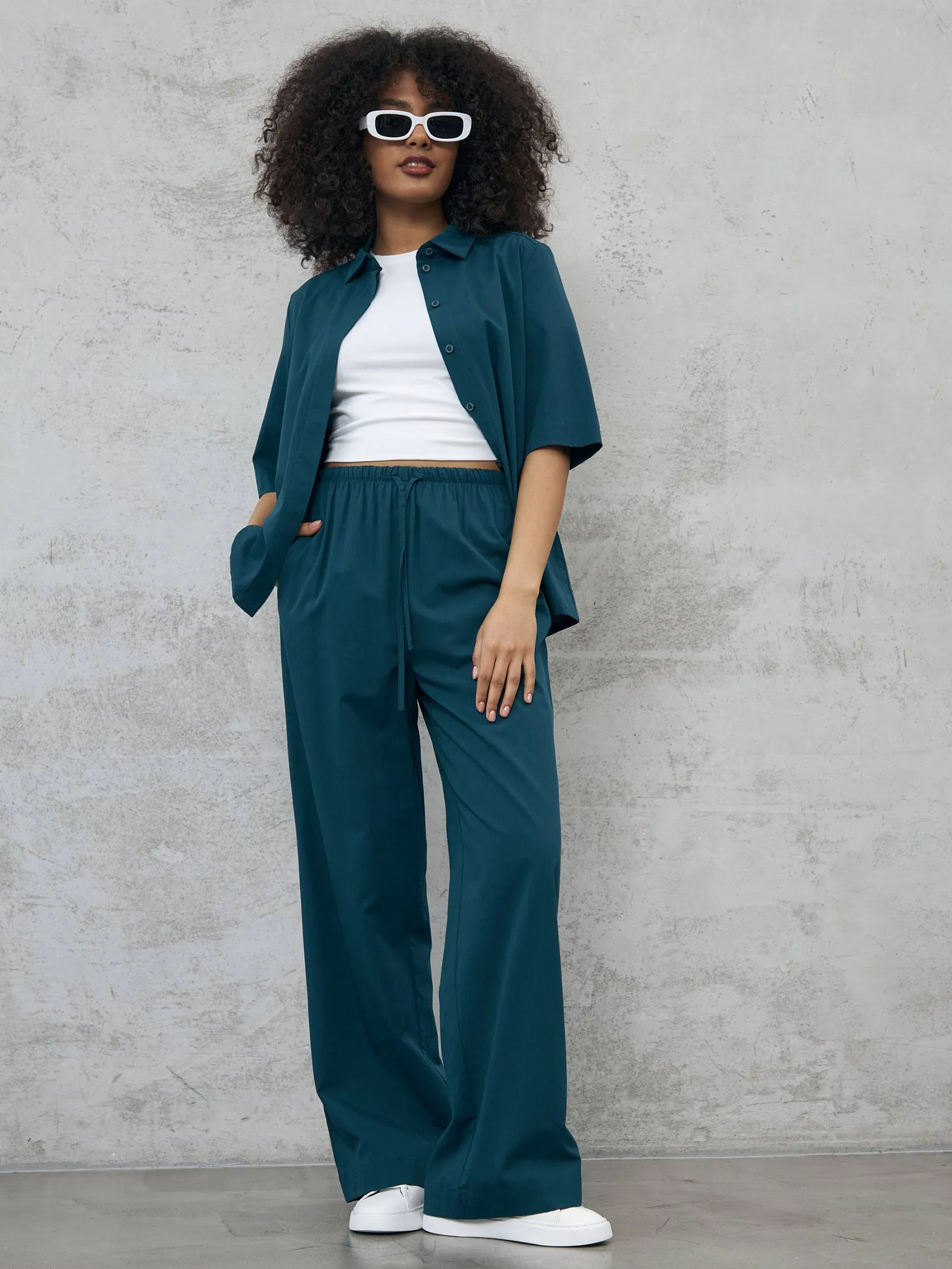 Широкие брюки в пол на комфортной резинке и регулируемом шнурке с удобными карманами. Модель выполнена из мягкой ткани, в составе которой нежная вискоза и дышащий хлопок. Отлично подойдут для создания кэжуал и спортивных образов в тёплое время года в сочетании с футболкой, свитшотом или блузой.