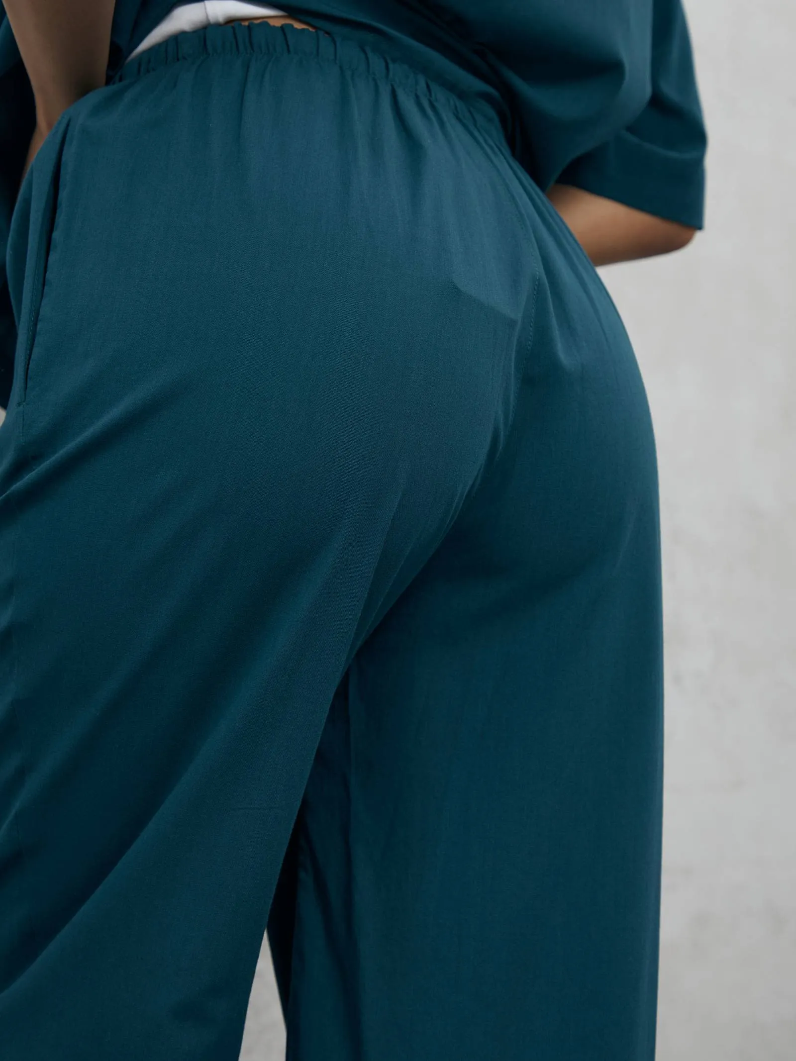 Широкие брюки в пол на комфортной резинке и регулируемом шнурке с удобными карманами. Модель выполнена из мягкой ткани, в составе которой нежная вискоза и дышащий хлопок. Отлично подойдут для создания кэжуал и спортивных образов в тёплое время года в сочетании с футболкой, свитшотом или блузой.