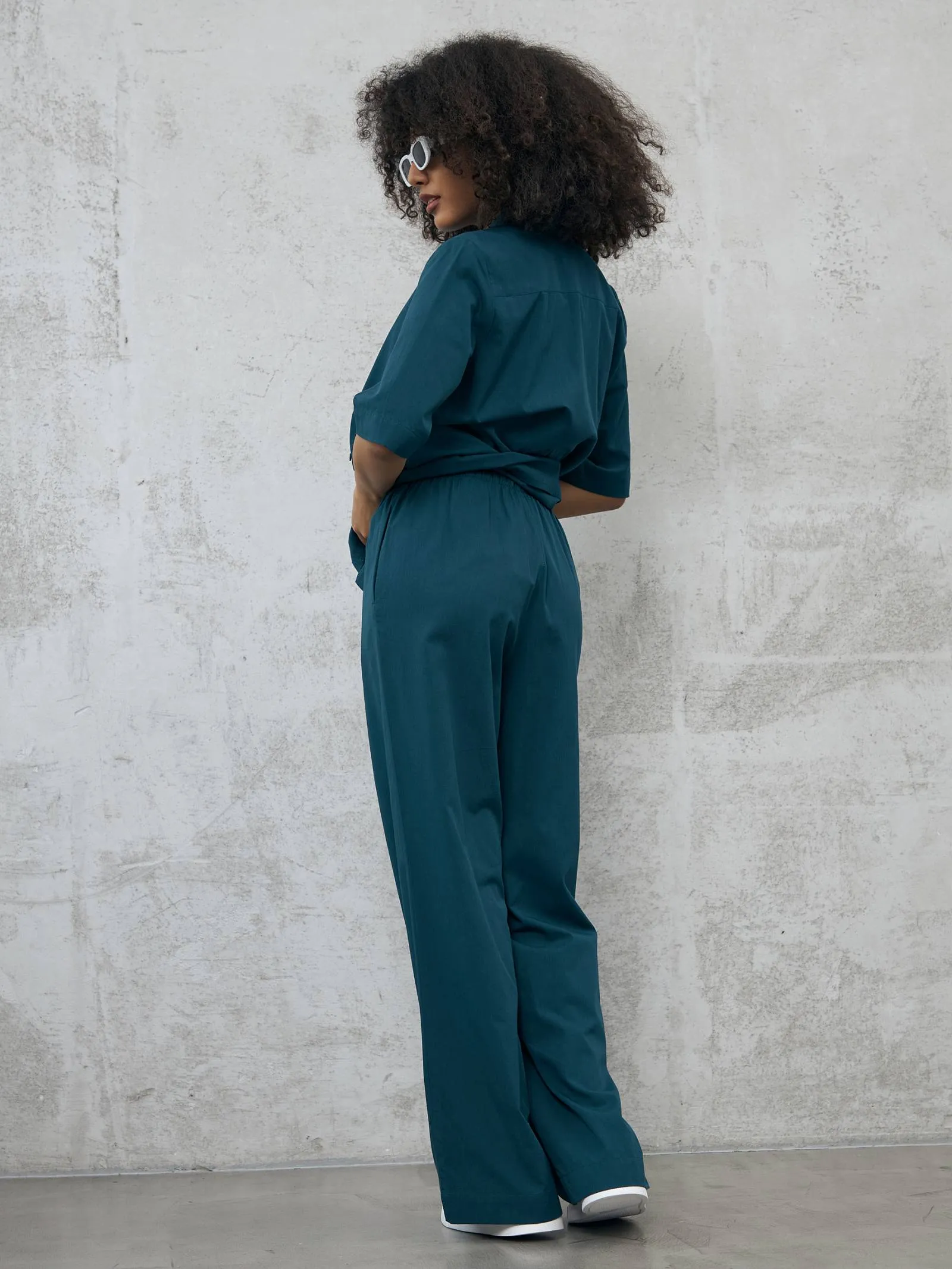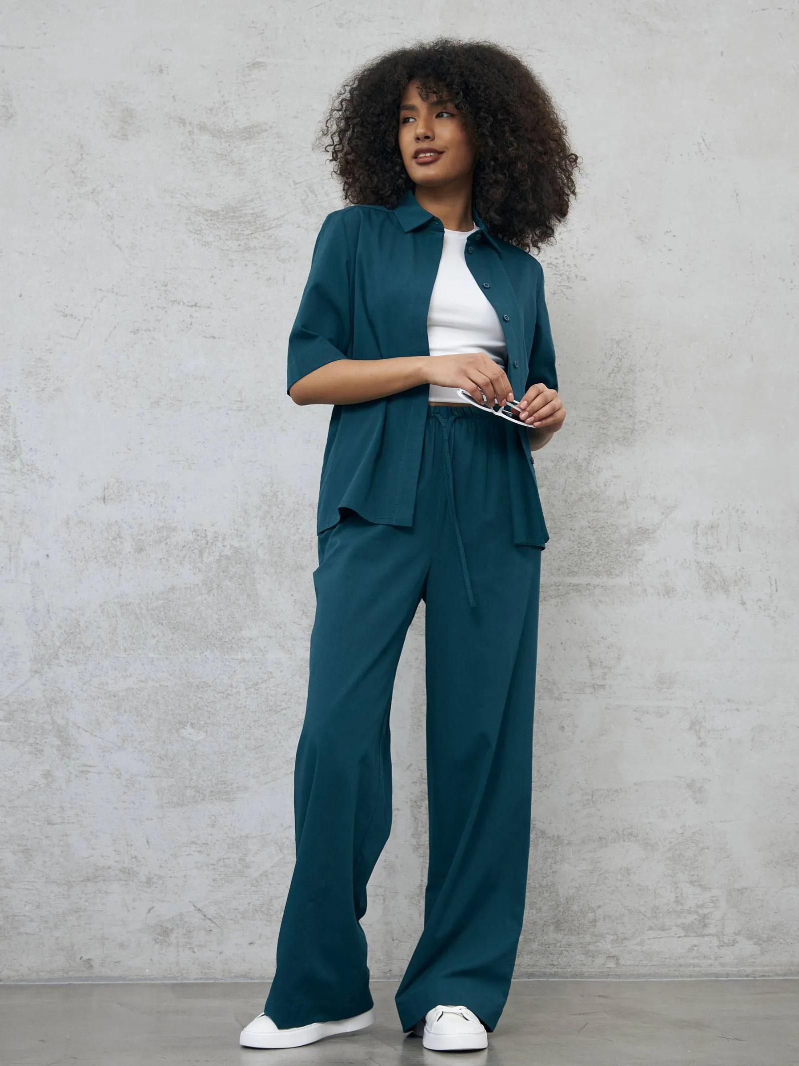 Широкие брюки в пол на комфортной резинке и регулируемом шнурке с удобными карманами. Модель выполнена из мягкой ткани, в составе которой нежная вискоза и дышащий хлопок. Отлично подойдут для создания кэжуал и спортивных образов в тёплое время года в сочетании с футболкой, свитшотом или блузой.