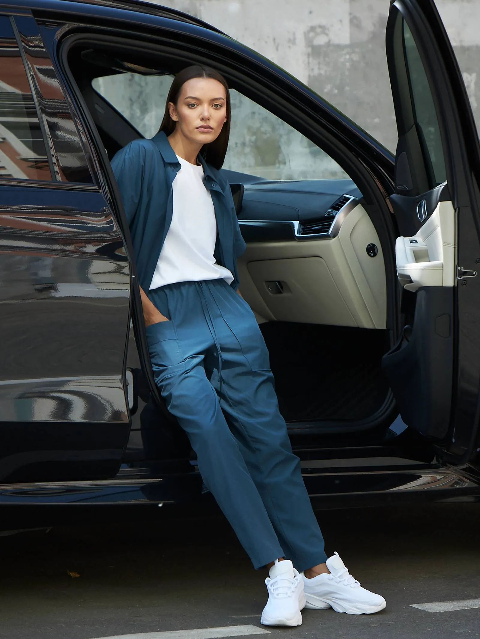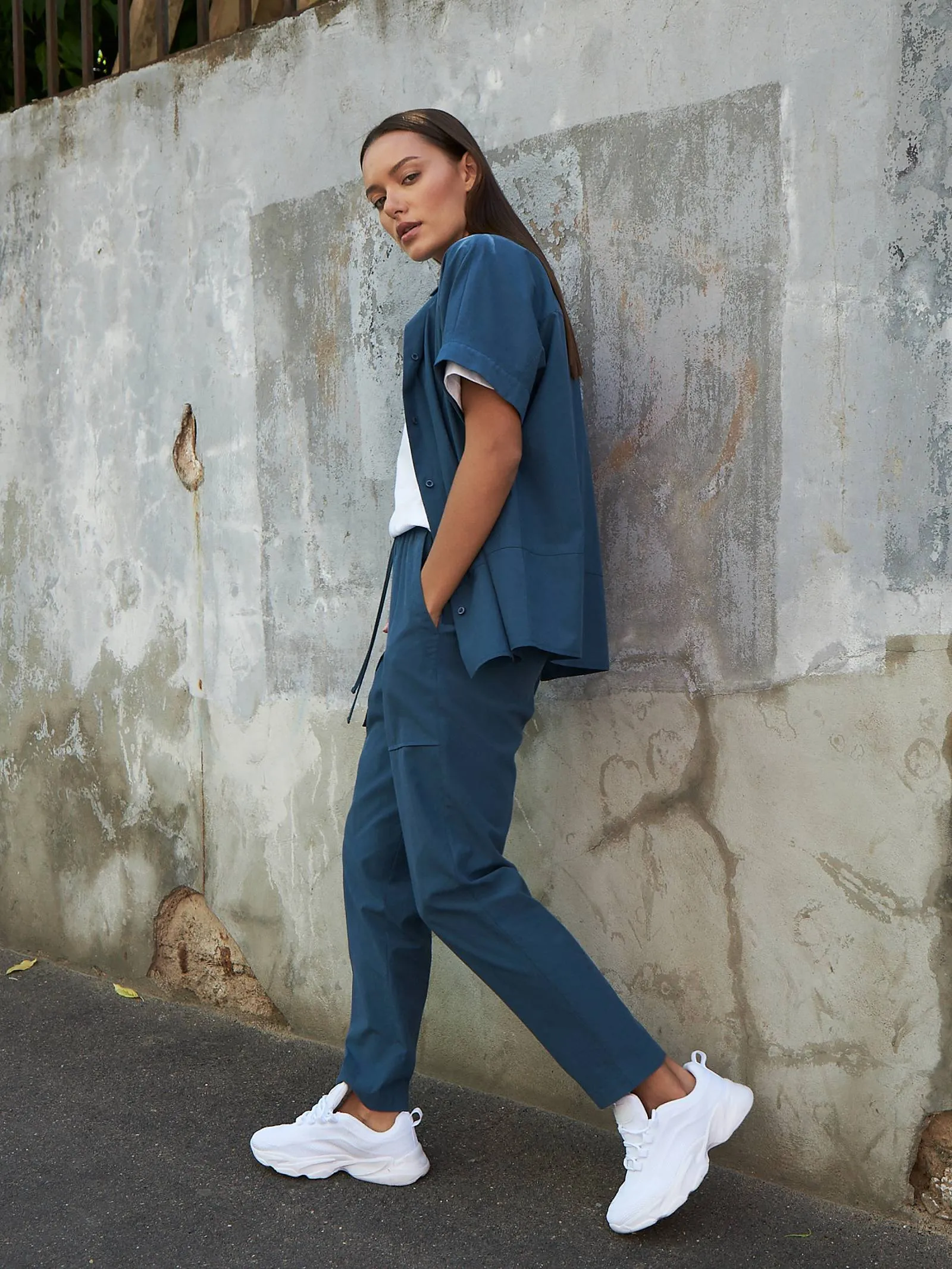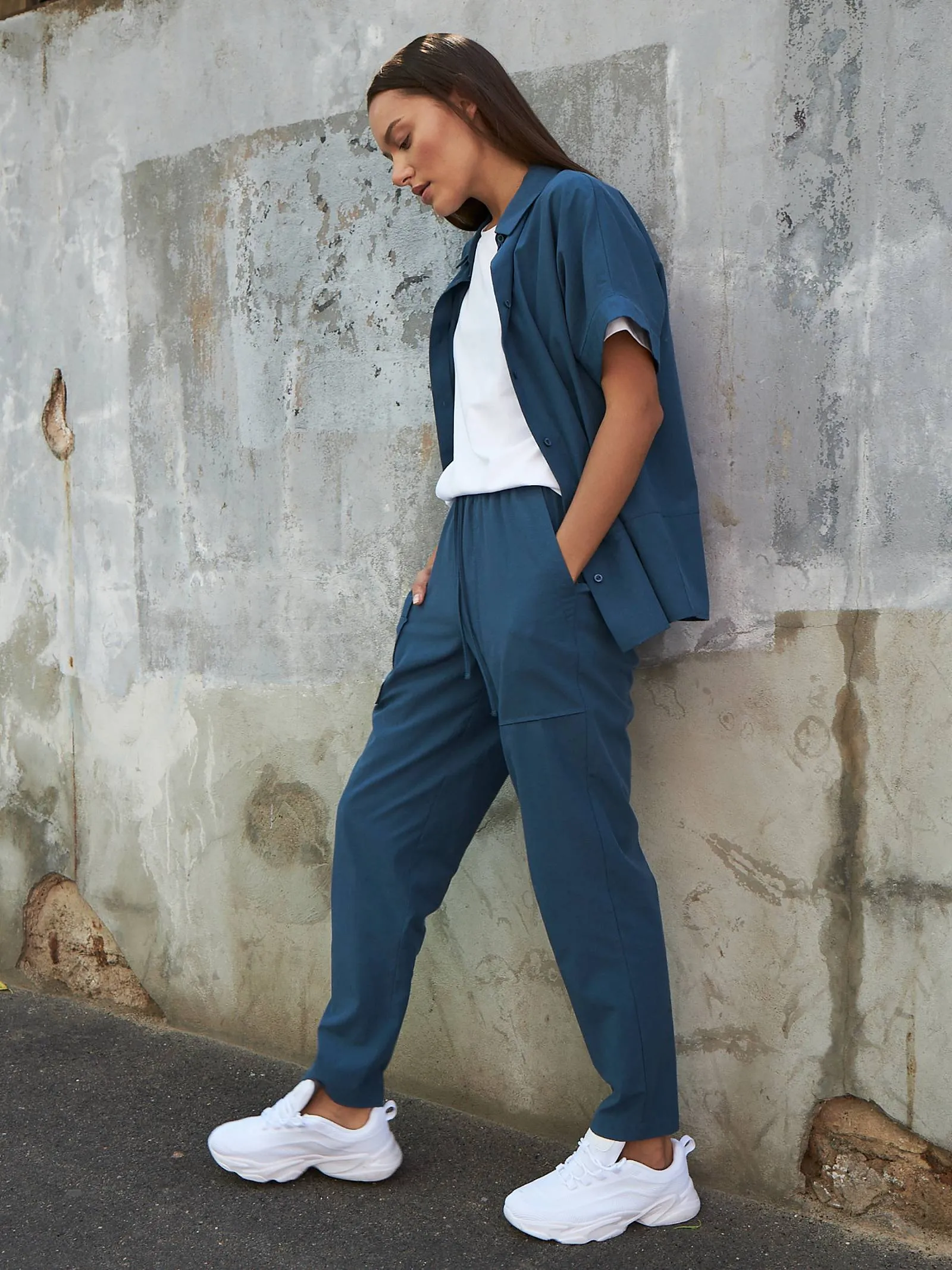 Свободные брюки на резинке с возможностью регулирования по фигуре и оригинально оформленными карманами. Модель выполнена из натуральных материалов: дышащего льна и мягкого хлопка в морском оттенке. Подойдет для создания расслабленном образов в спортивном и повседневном стилях. Отлично смотрится в комплекте с блузой-рубашкой в том же цвете.