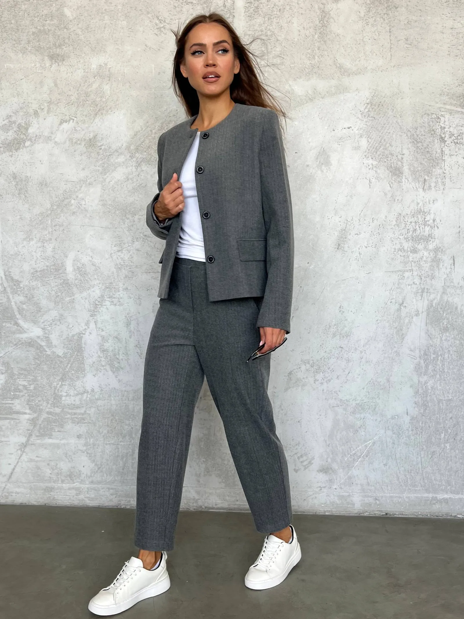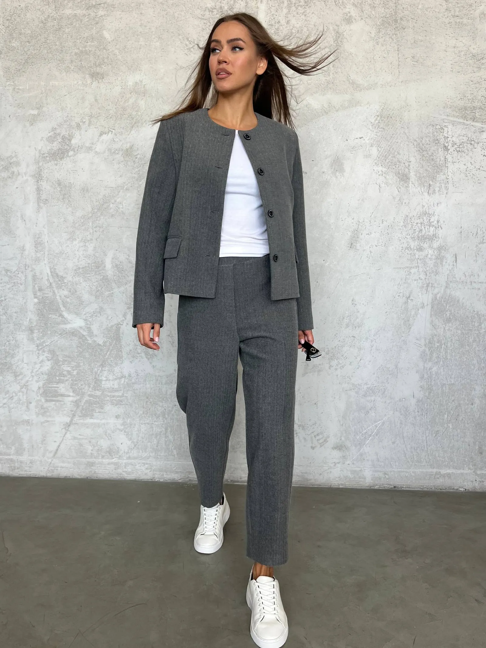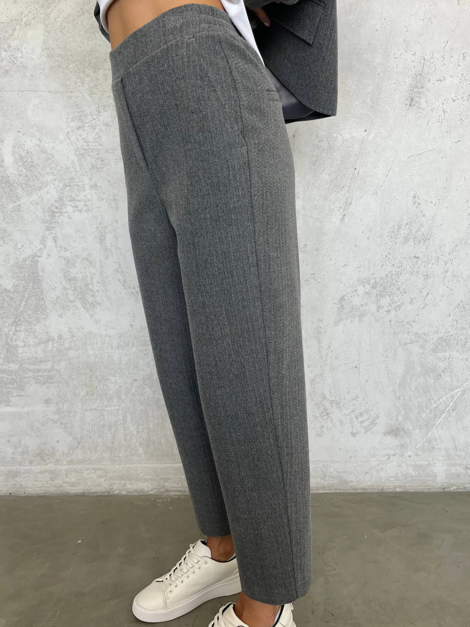 Ткань с рисунком «ёлочка» в составе шерсть , мягкая, тёплая и приятная к телу, держит форму и комфортна в движении.