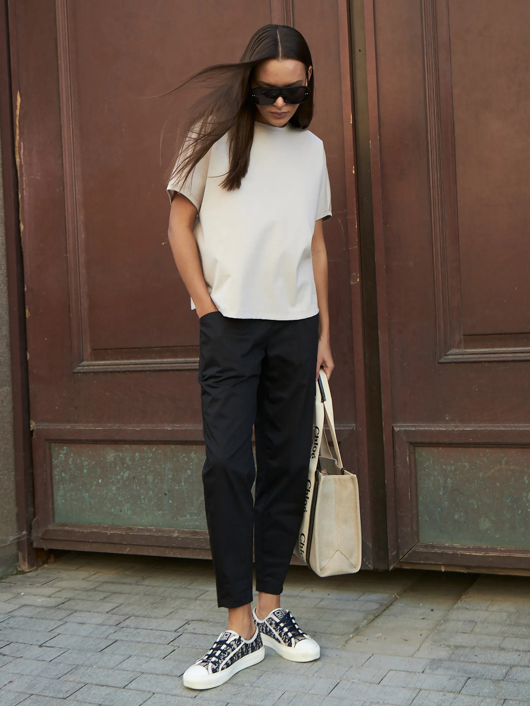 Хлопковые брюки с зауженными штанинами подходят на лето, весну и теплую осень. Посадка подчёркивает достоинства фигуры. Отлично подходит для повседневных и спортивных образов в сочетании со спортивной обувью и обувью на грубой подошве.