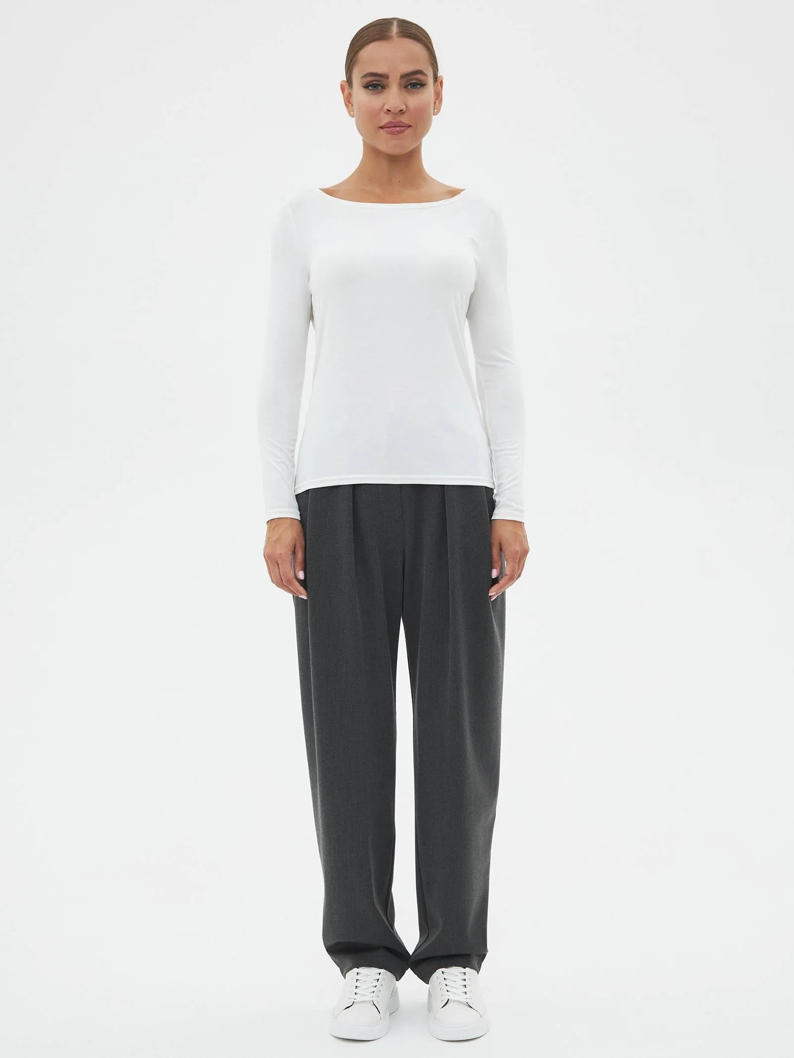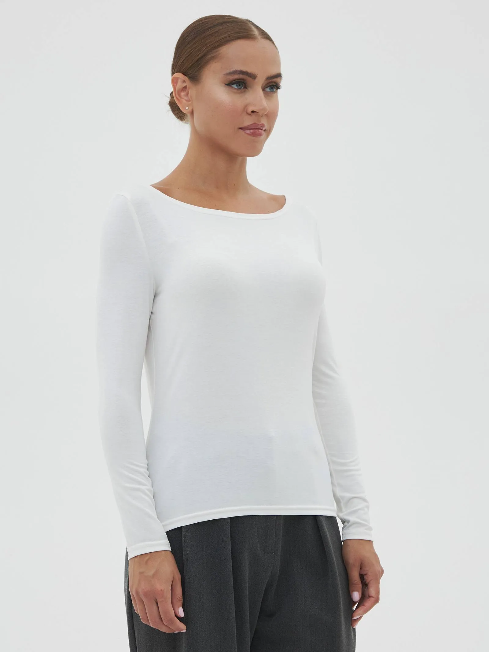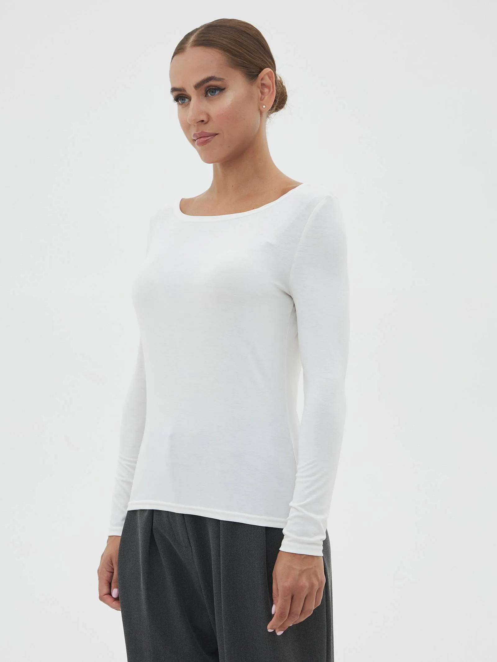 Стильный лонгслив с круглым широким вырезом и длинным рукавом из невероятно нежной премиальной ткани. С эффектом антипиллинг (не скатывается). Облегающая посадка выгодно подчеркивает женственность силуэта. Отличный базовый вариант для создания разных образов.