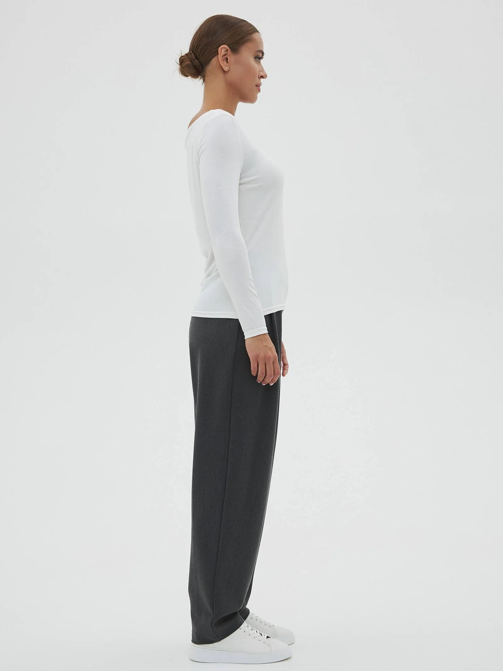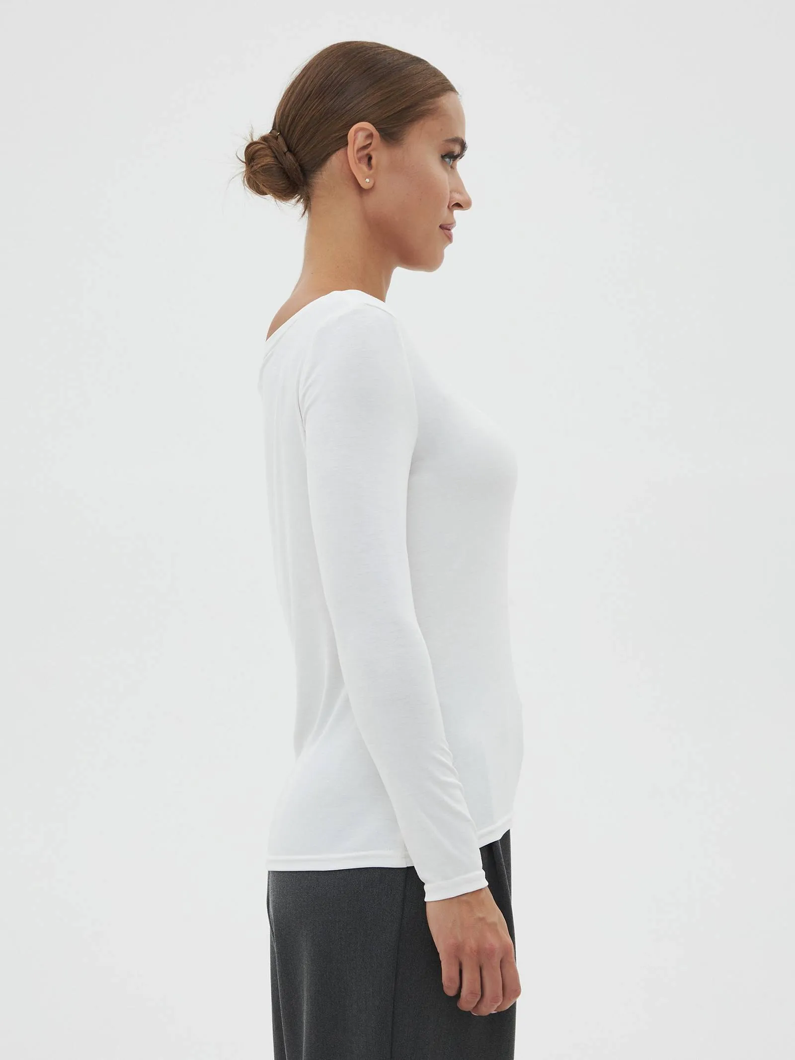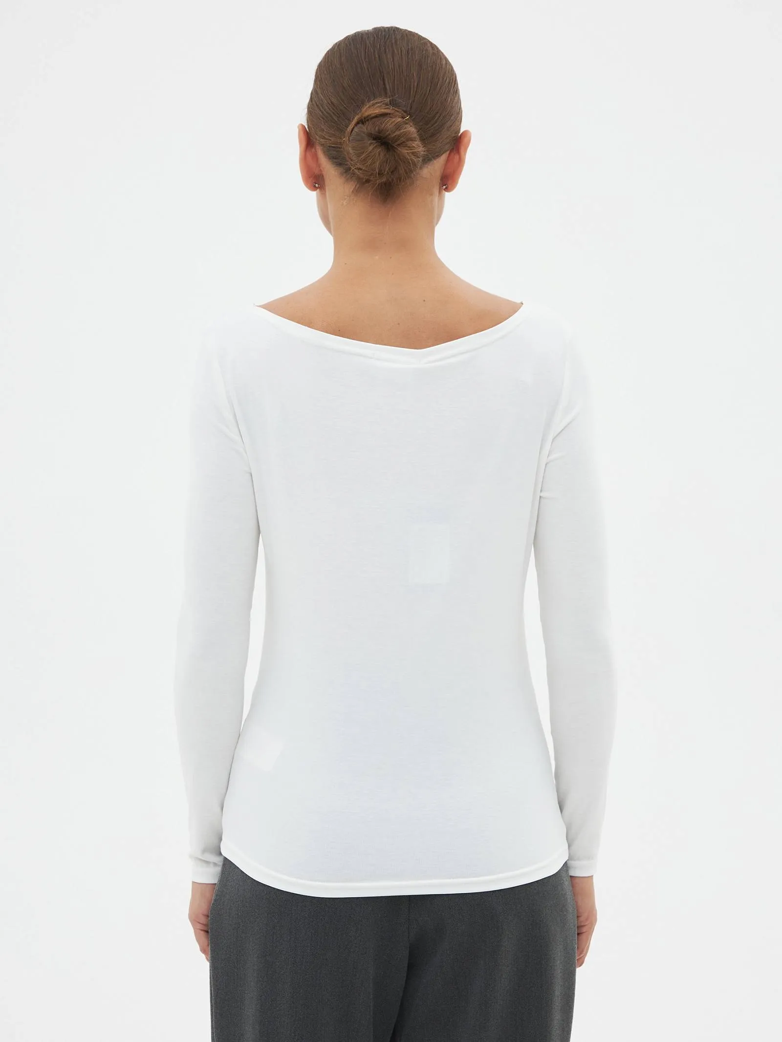 Стильный лонгслив с круглым широким вырезом и длинным рукавом из невероятно нежной премиальной ткани. С эффектом антипиллинг (не скатывается). Облегающая посадка выгодно подчеркивает женственность силуэта. Отличный базовый вариант для создания разных образов.