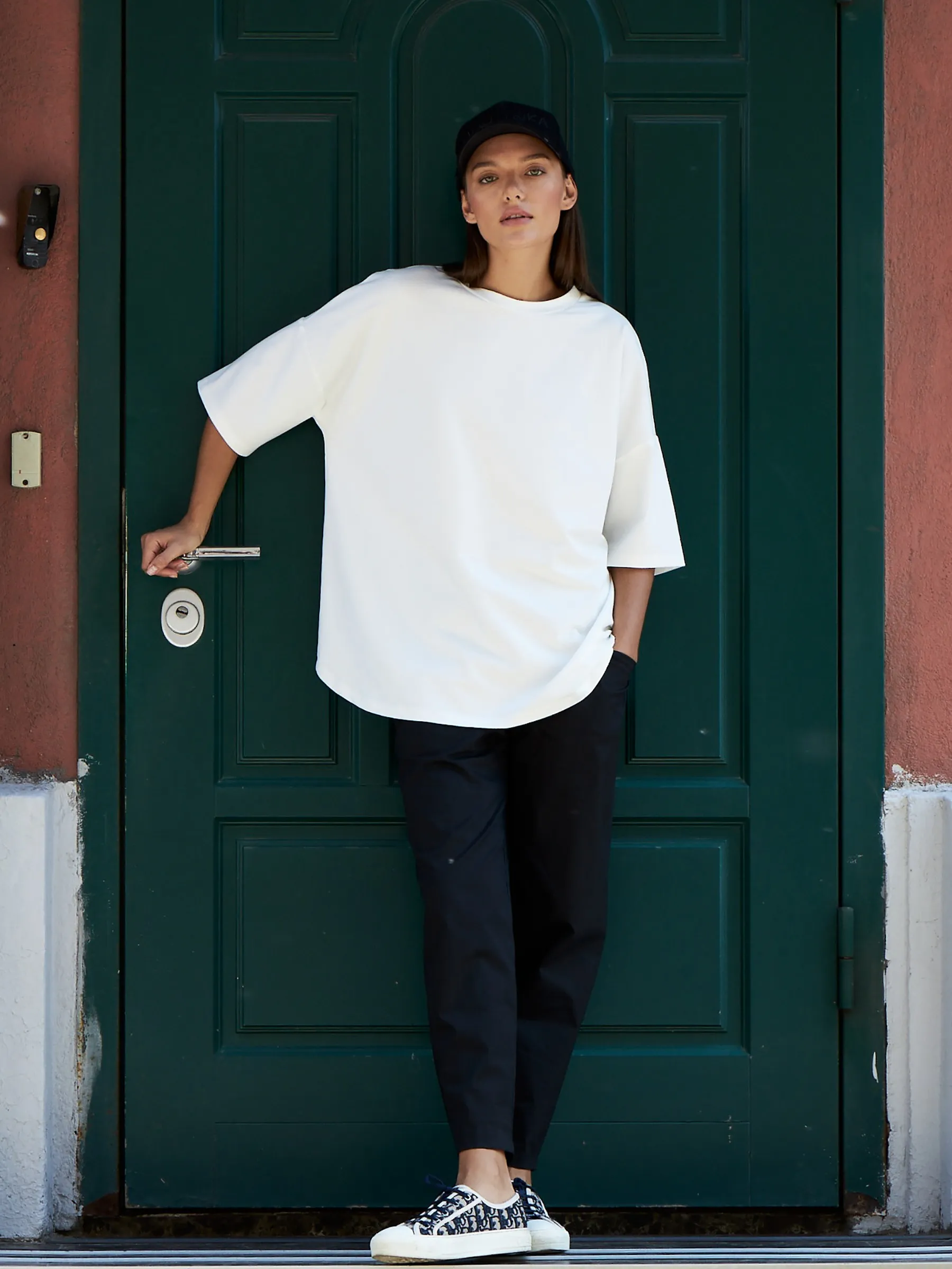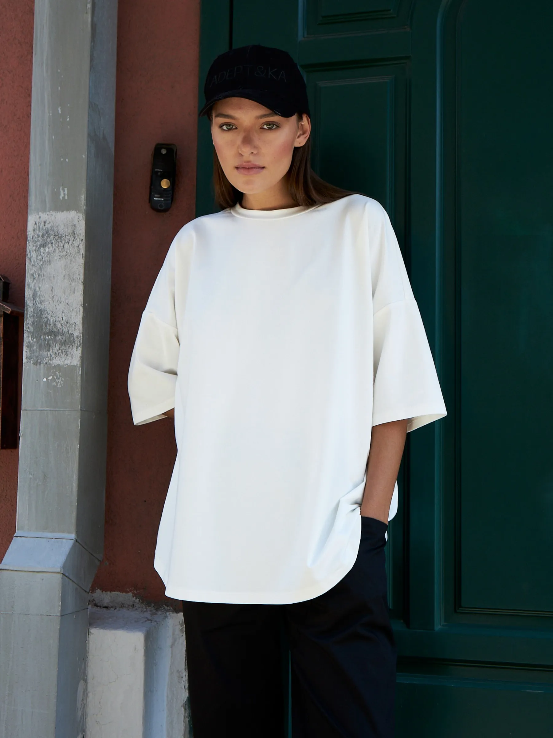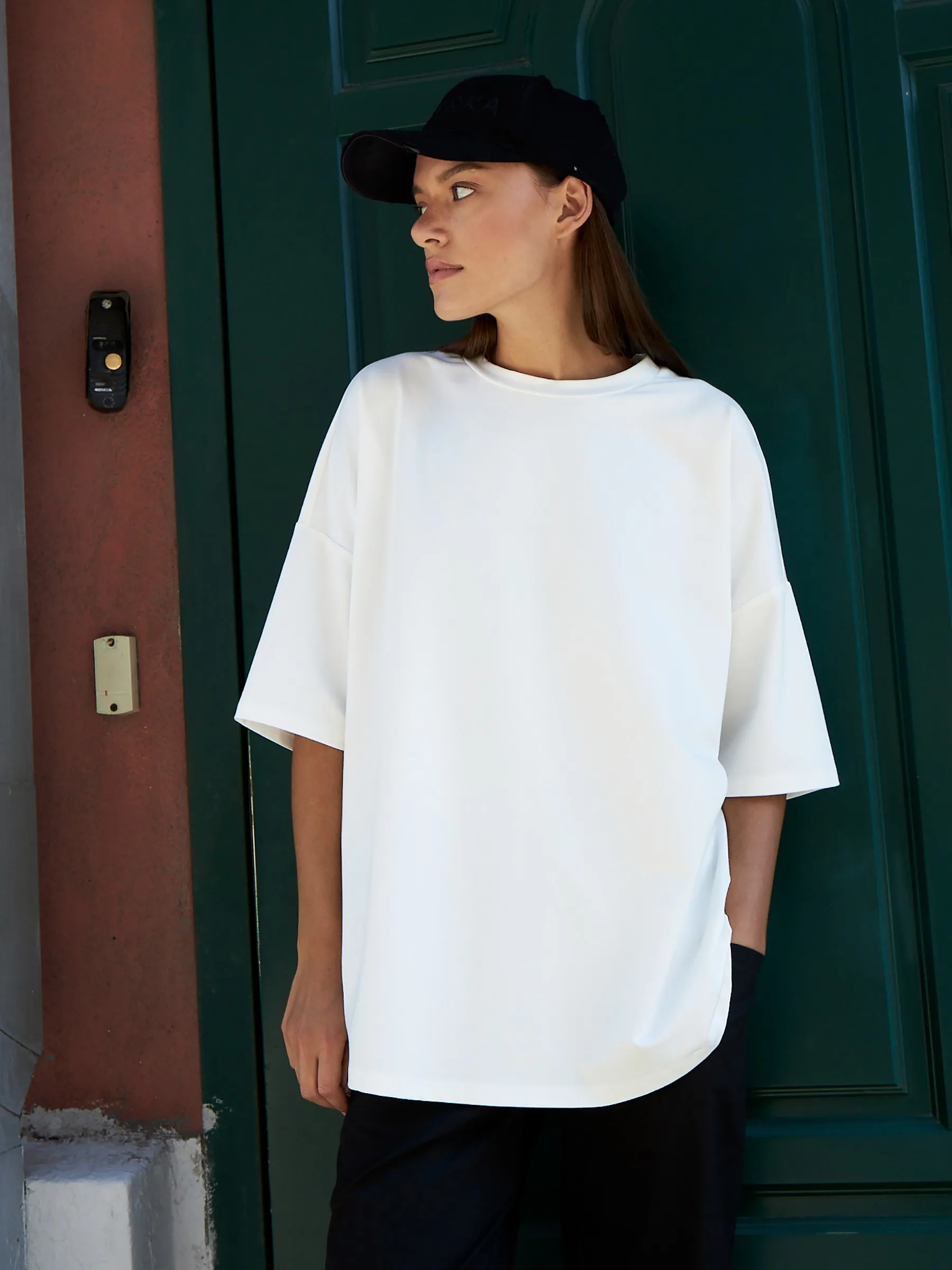 Оверсайз футболка свободного кроя с круглым вырезом и удлиненным рукавом в ярком зеленом цвете. Модель выполнена из нежной вискозы, легкого хлопка и тянущегося эластана для комфортной носки. Яркая футболка отлично подойдет для спортивных и повседневных образов в сочетании с базовыми брюками.