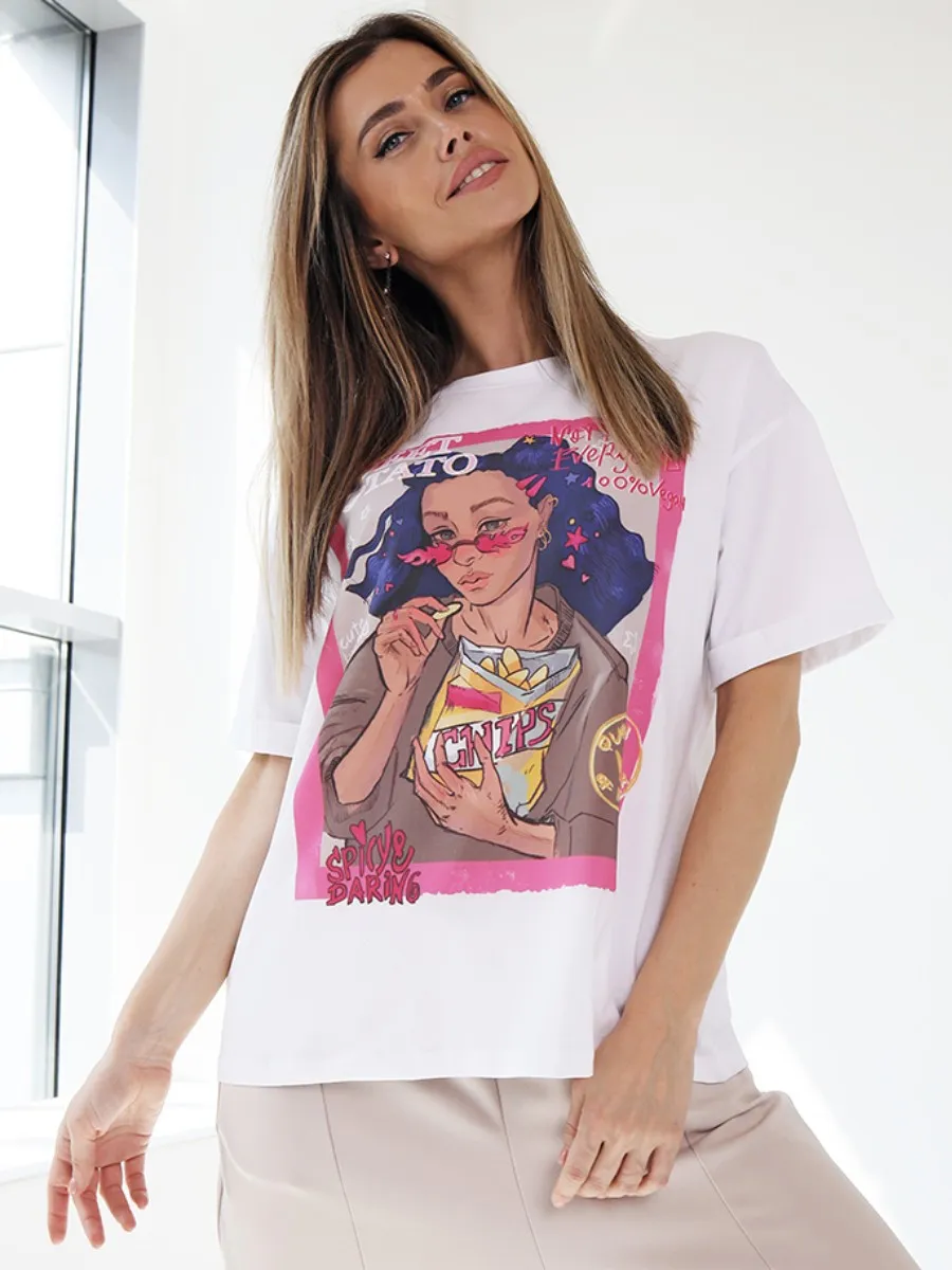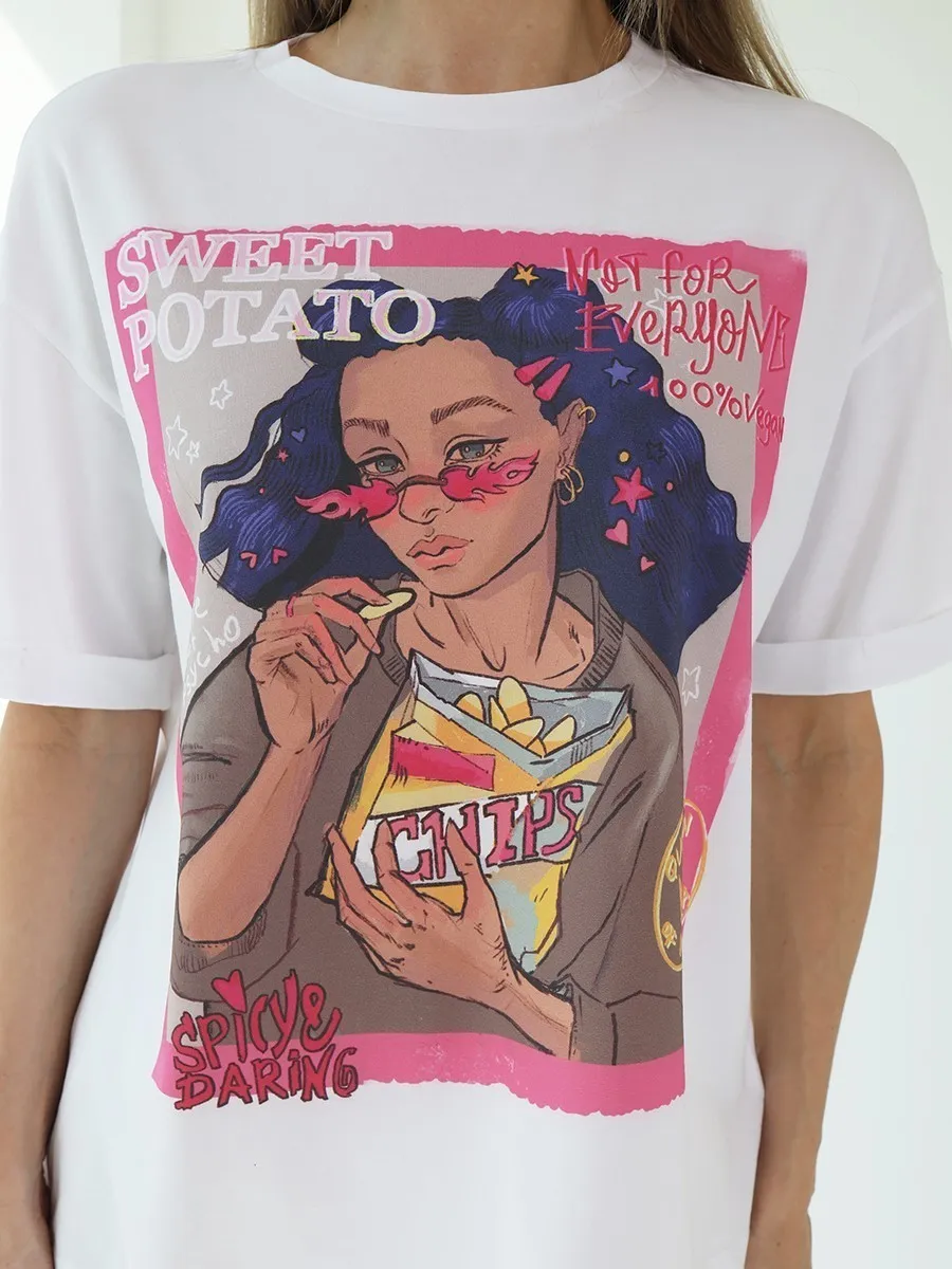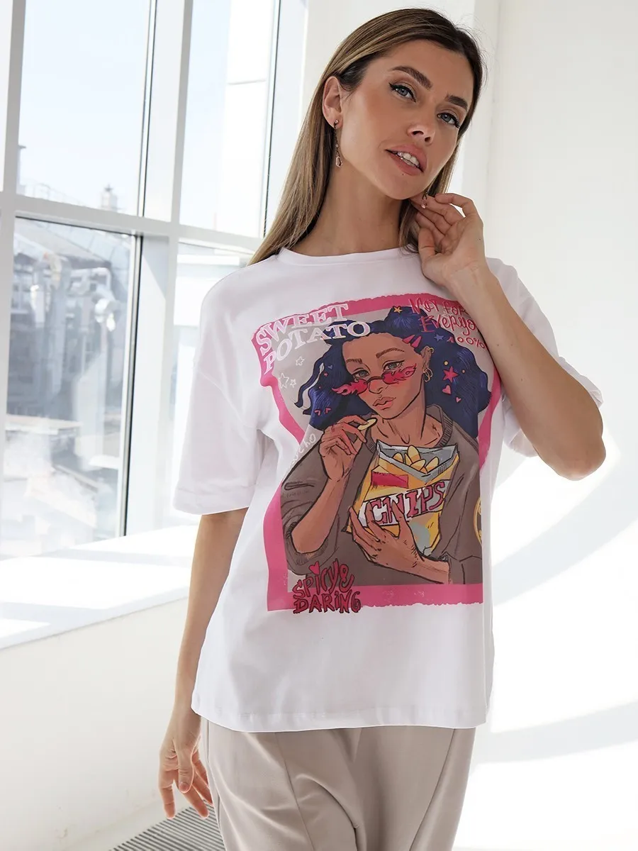 Футболка oversize с уникальным принтом. Изделие выполнено из ткани премиального качества с эффектом "антипиллинг". Отлично смотрится с шортами или комфортными брюками.