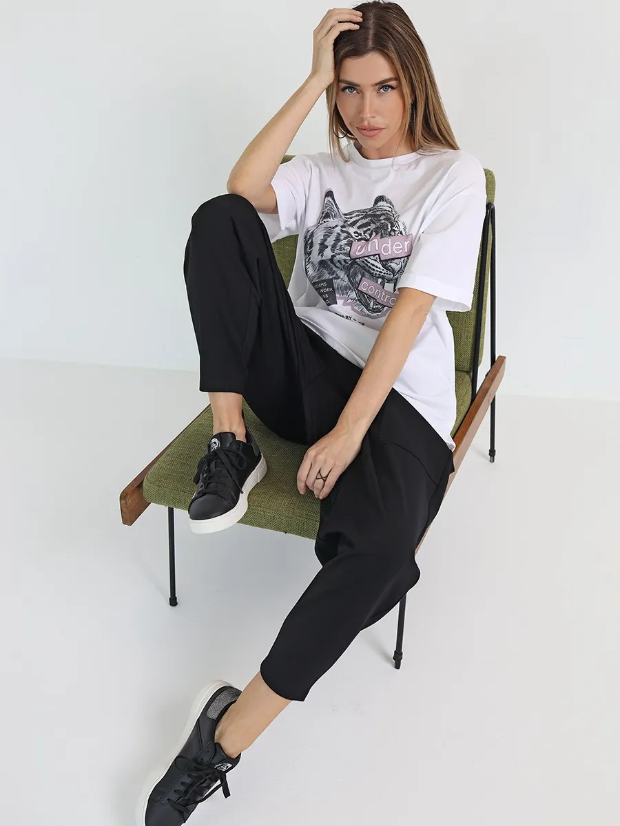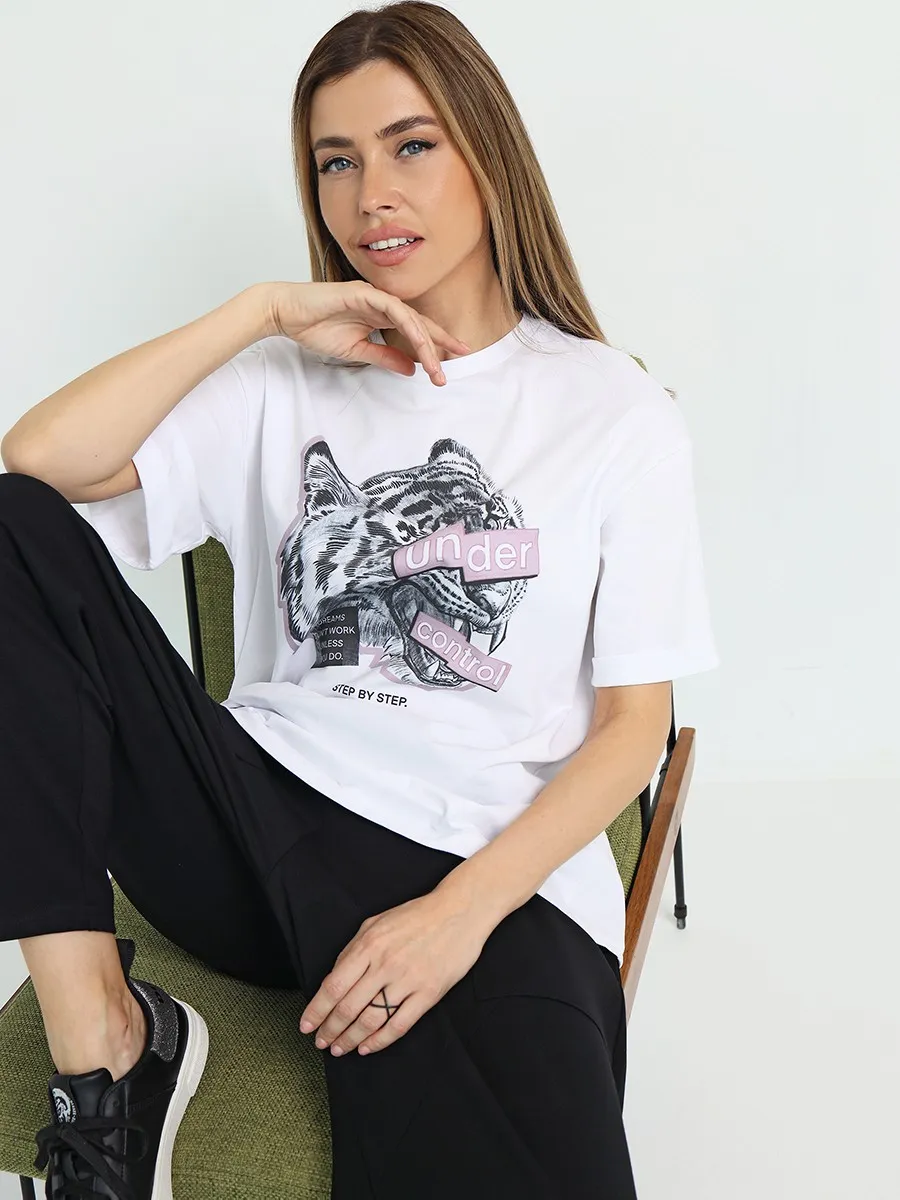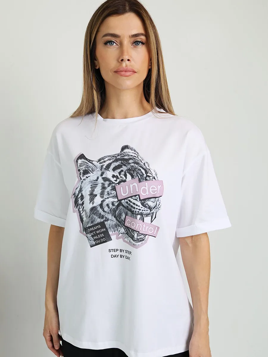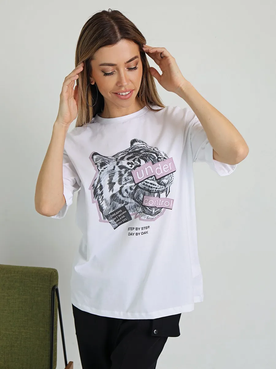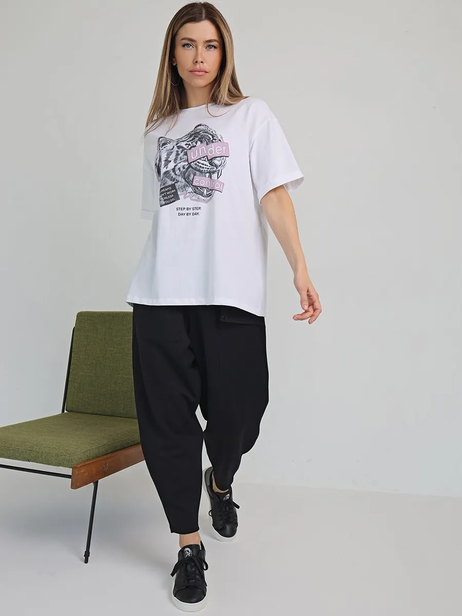 Футболка oversize с уникальным принтом. Изделие выполнено из ткани премиального качества с эффектом "антипиллинг". Отлично смотрится с шортами или комфортными брюками.