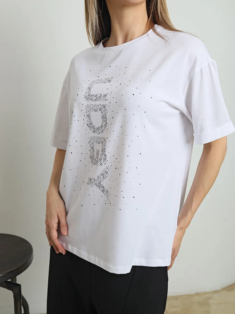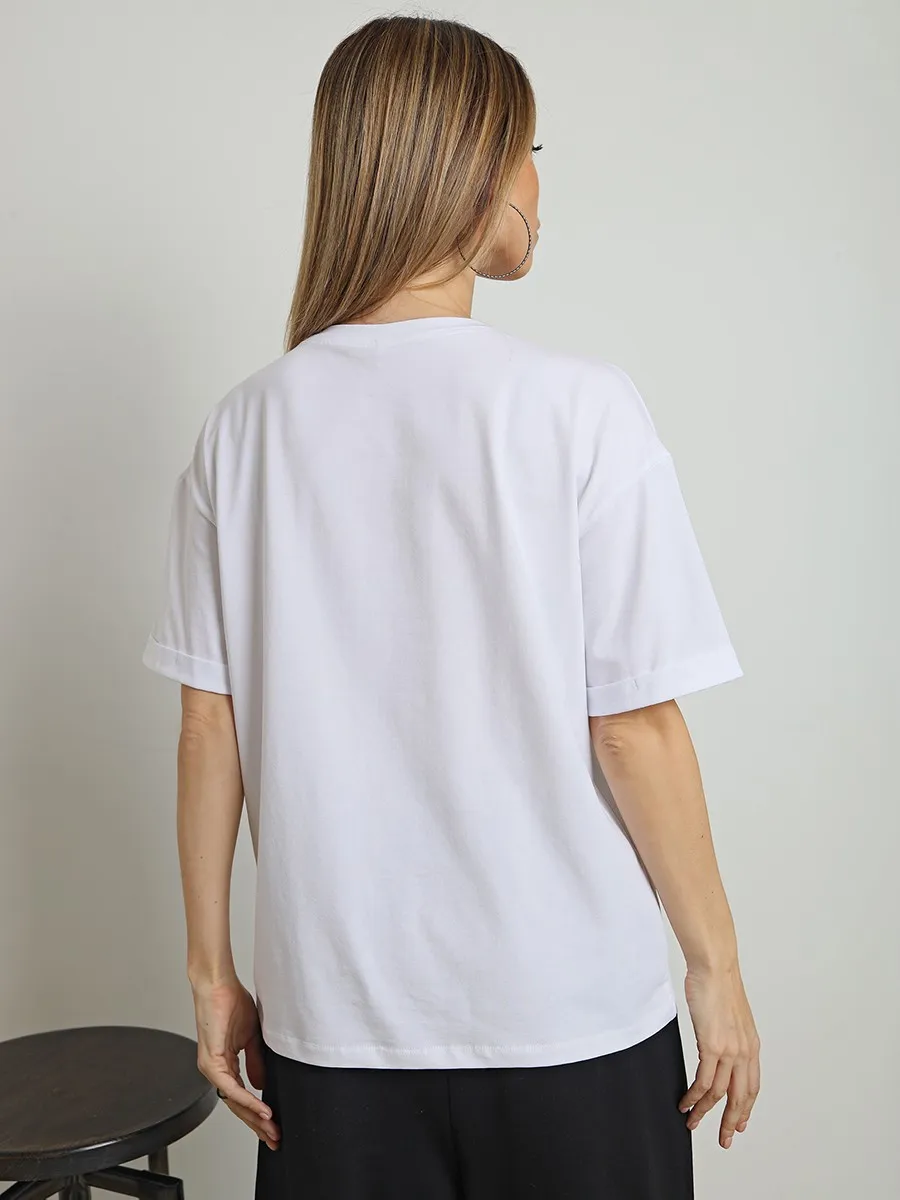 Футболка oversize с уникальным принтом. Изделие выполнено из ткани премиального качества с эффектом "антипиллинг". Отлично смотрится с шортами или комфортными брюками.
