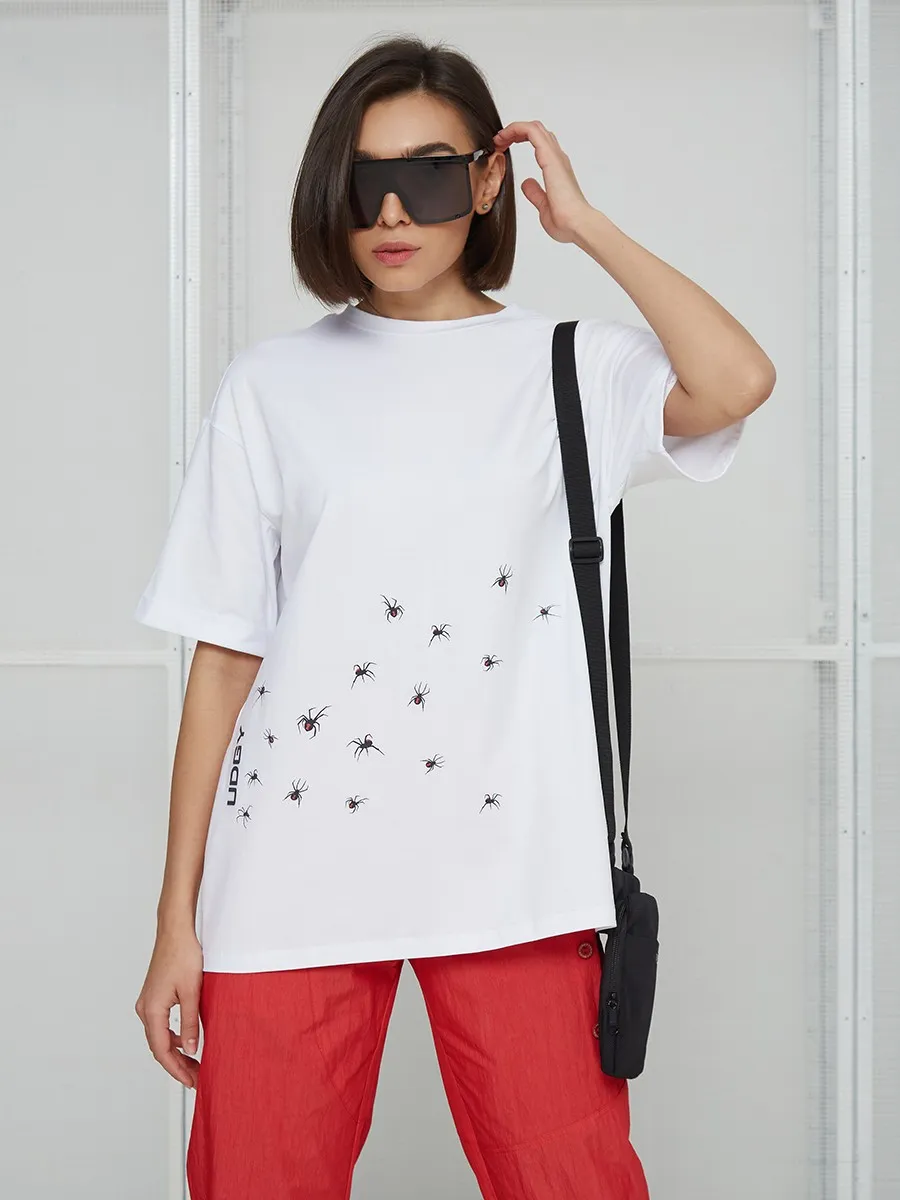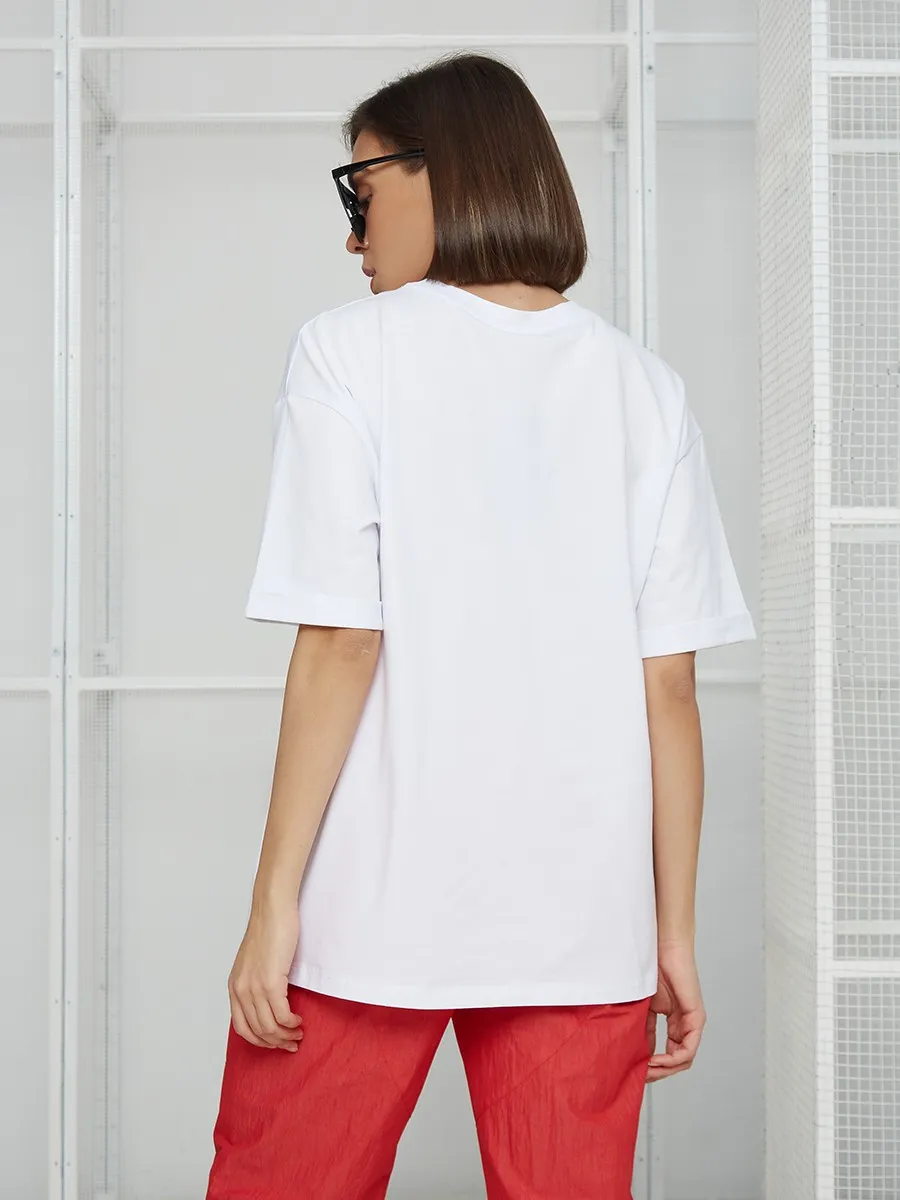 Футболка oversize с уникальным принтом. Изделие выполнено из ткани премиального качества с эффектом "антипиллинг". Отлично смотрится с шортами или комфортными брюками.