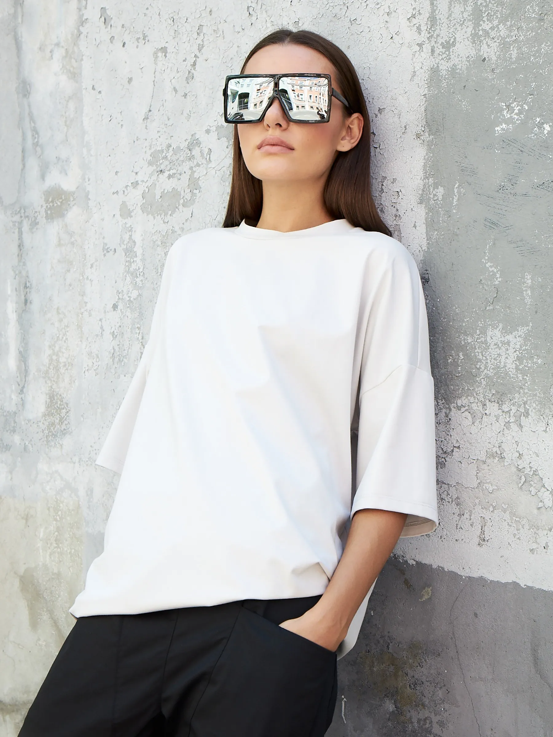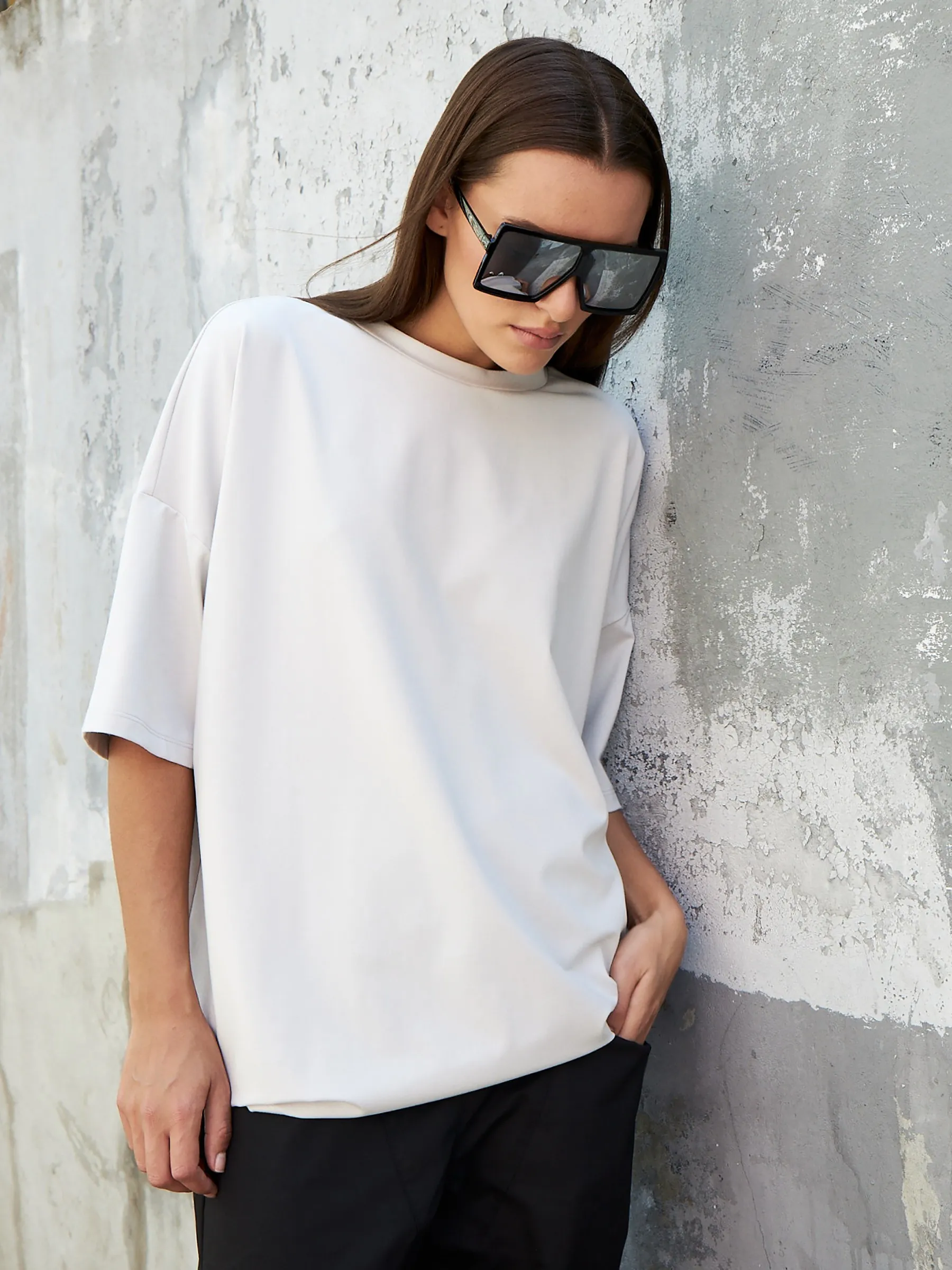 Оверсайз футболка свободного кроя с круглым вырезом и удлиненным рукавом в ярком зеленом цвете. Модель выполнена из нежной вискозы, легкого хлопка и тянущегося эластана для комфортной носки. Яркая футболка отлично подойдет для спортивных и повседневных образов в сочетании с базовыми брюками.