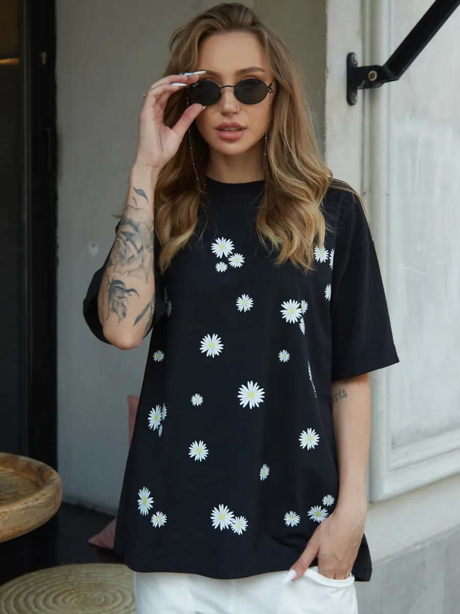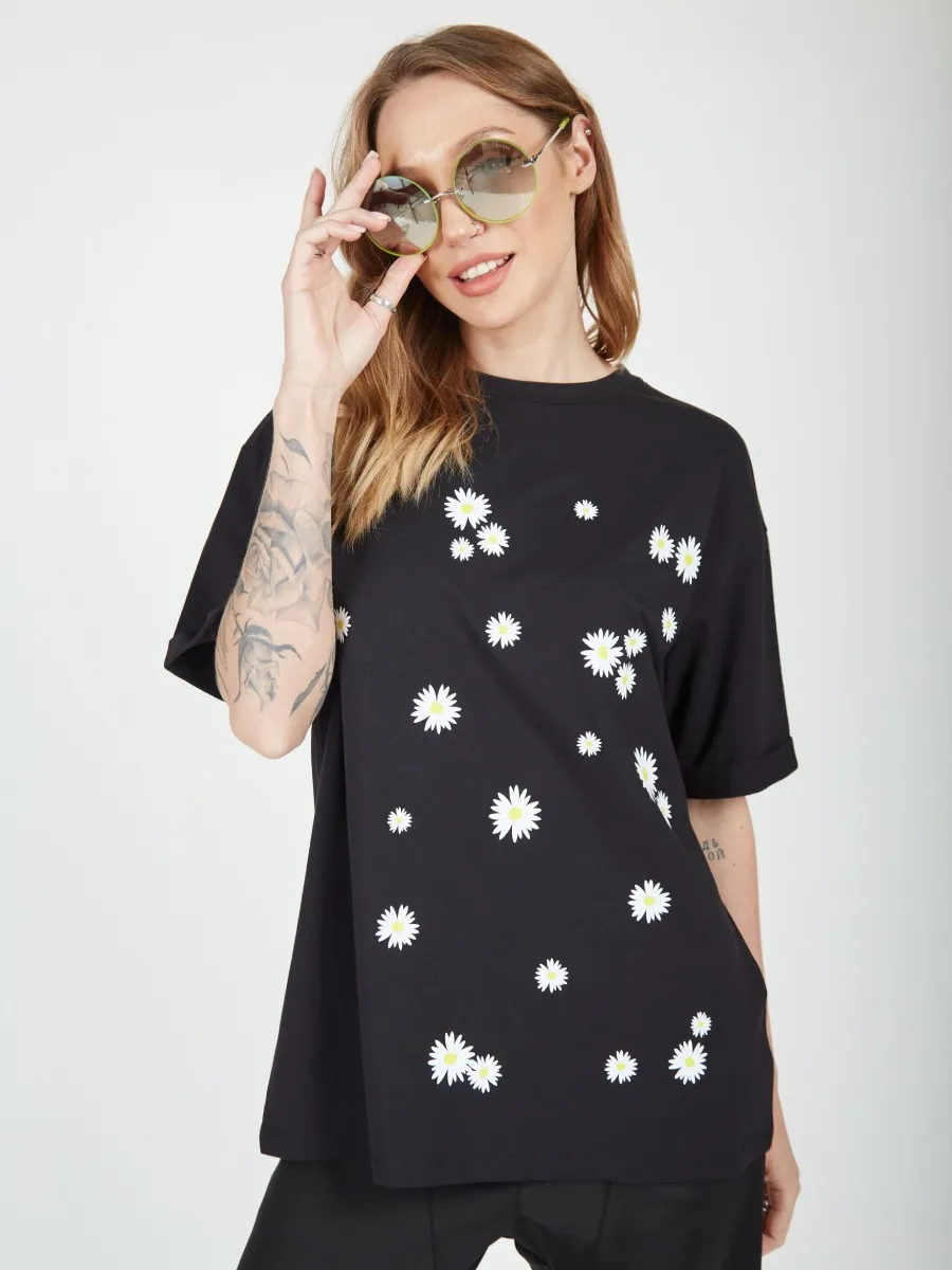 Футболка oversize с уникальным принтом. Изделие выполнено из ткани премиального качества с эффектом "антипиллинг". Отлично смотрится с шортами или комфортными брюками.