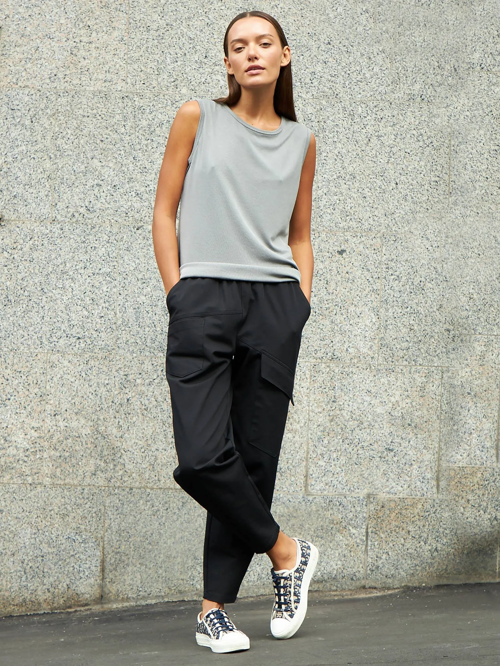 Свободный топ без рукавов с круглым вырезом. Модель выполнена из нежной и прочной струящейся ткани, в составе которой дышащий модал и износостойкий полиэстер. Топ подойдет для создания спортивных и повседневных образов в сочетании с брюками и юбками. В прохладную погоду наверху можно надеть блузу-рубашку или жакет.