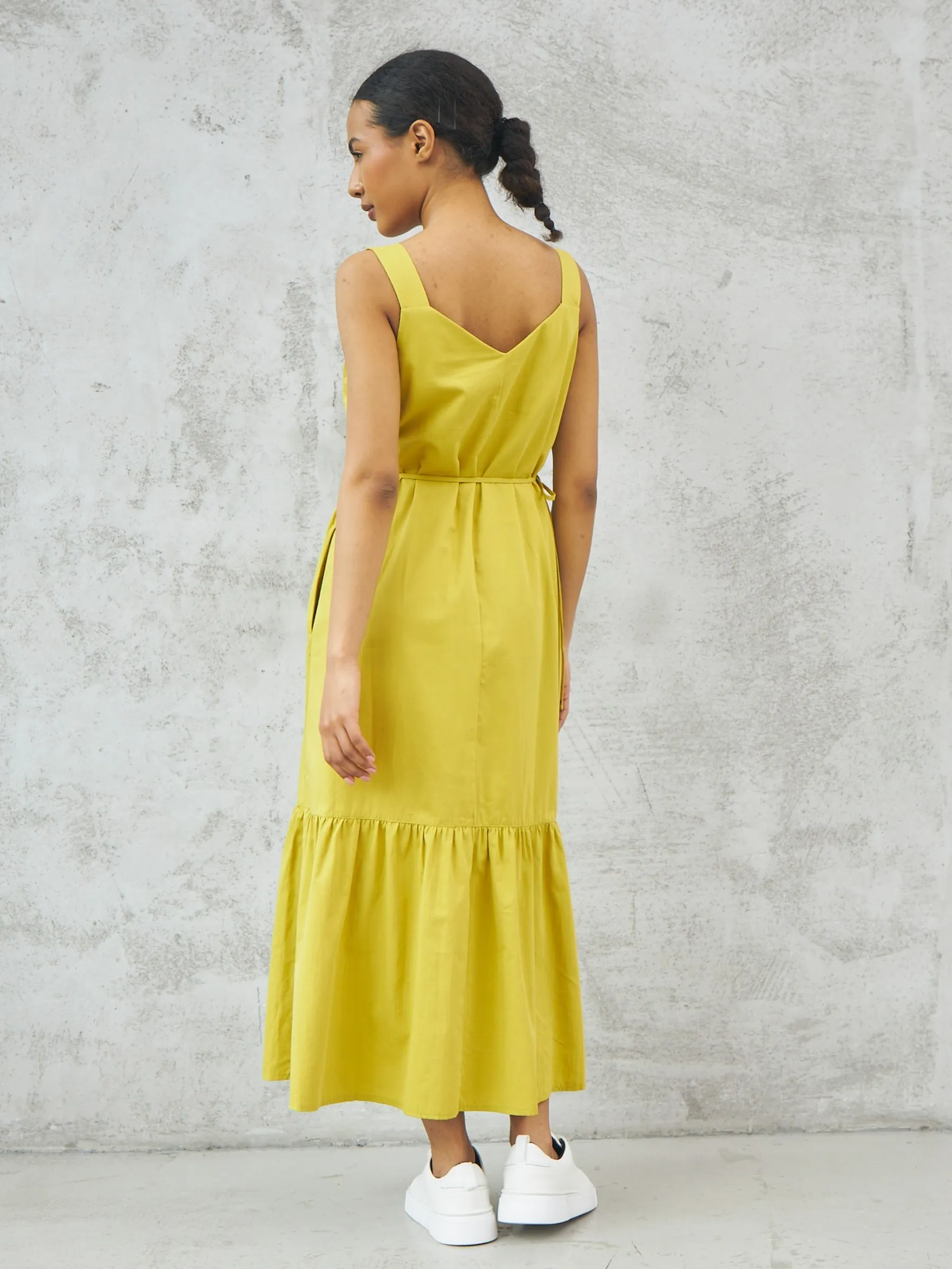 Базовый сарафан А-силуэта с оборкой – Светло-Зеленый