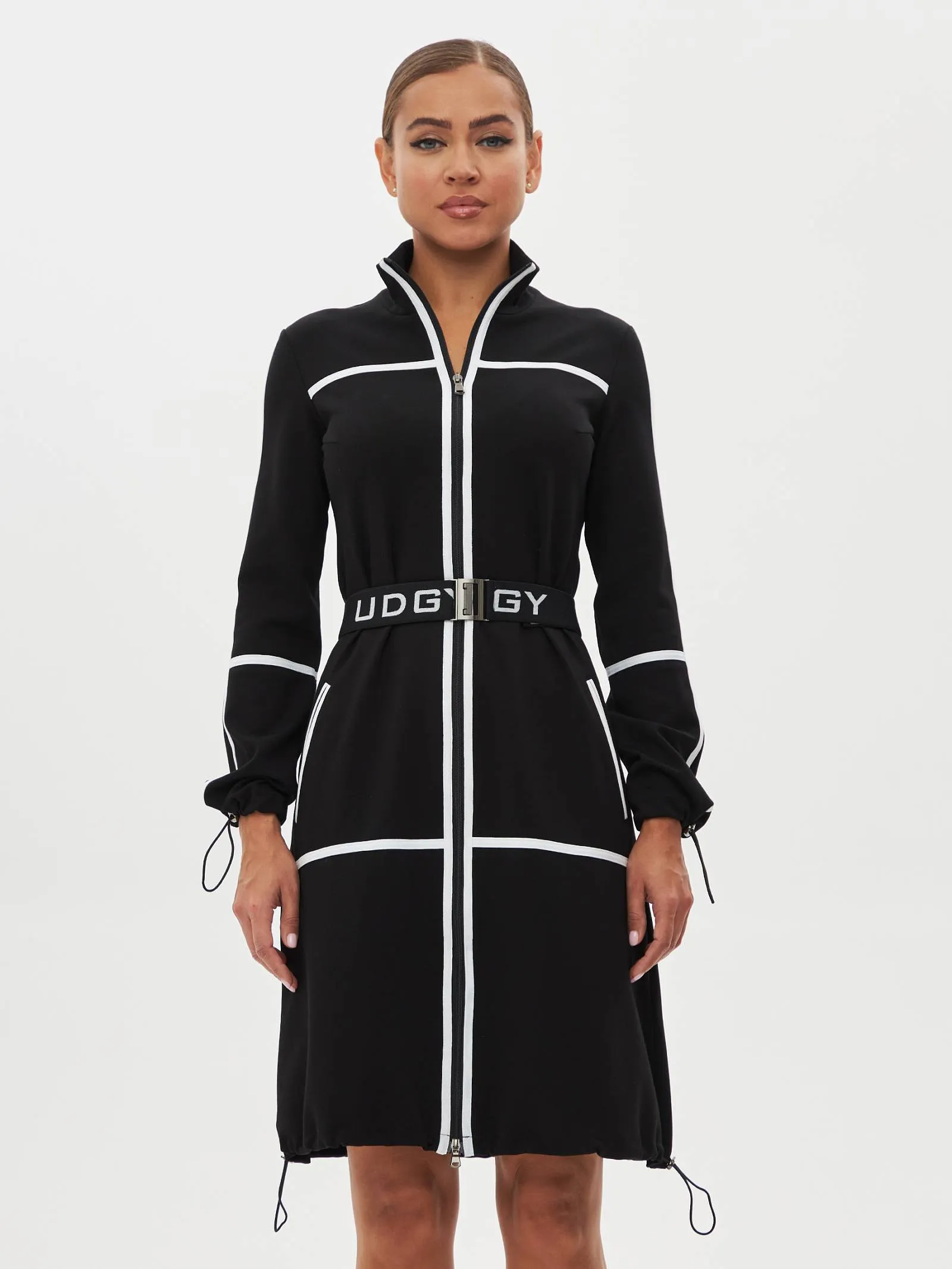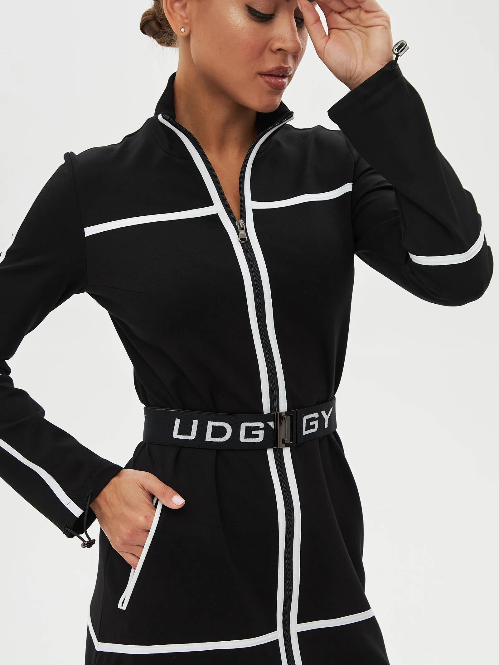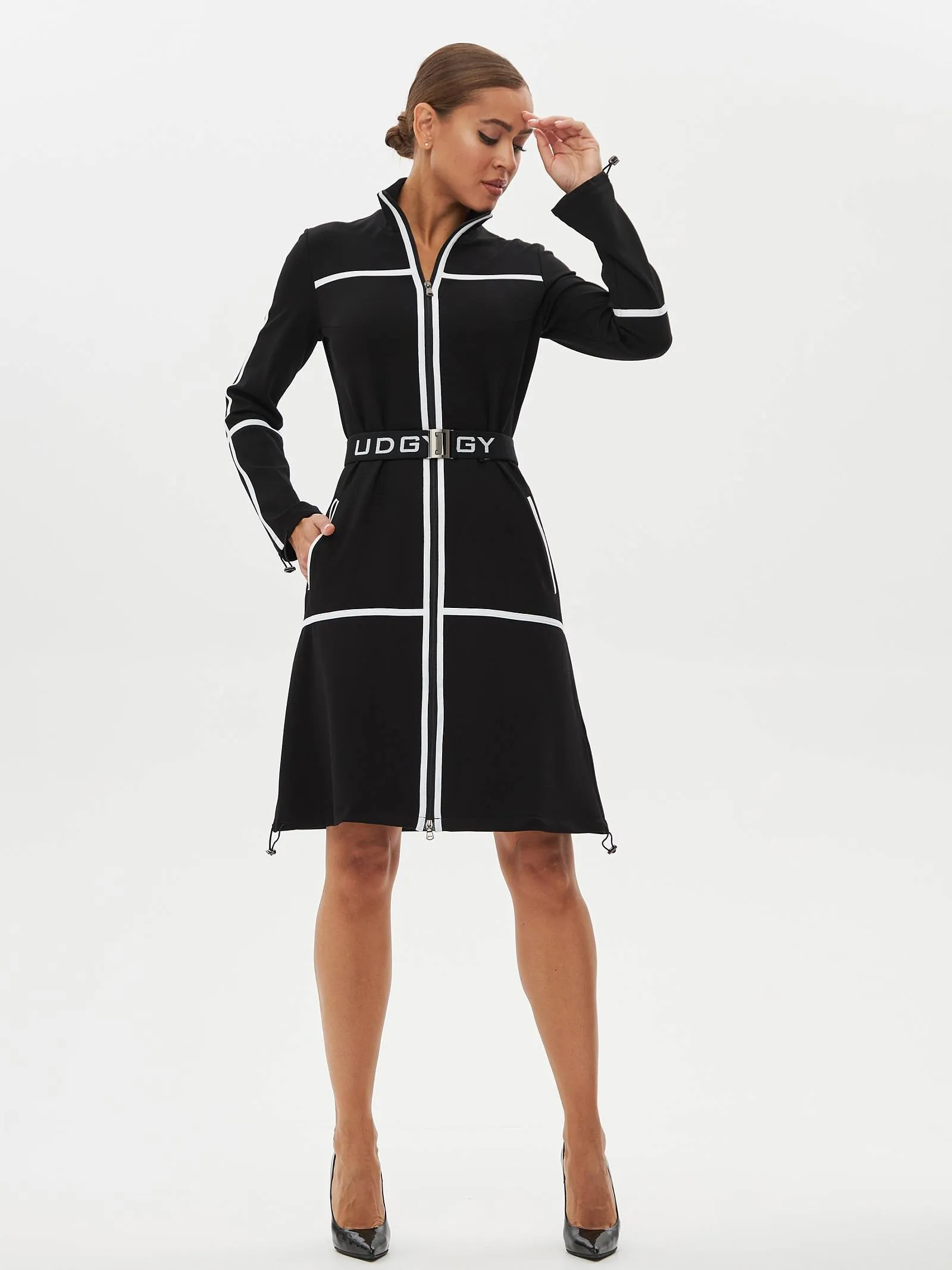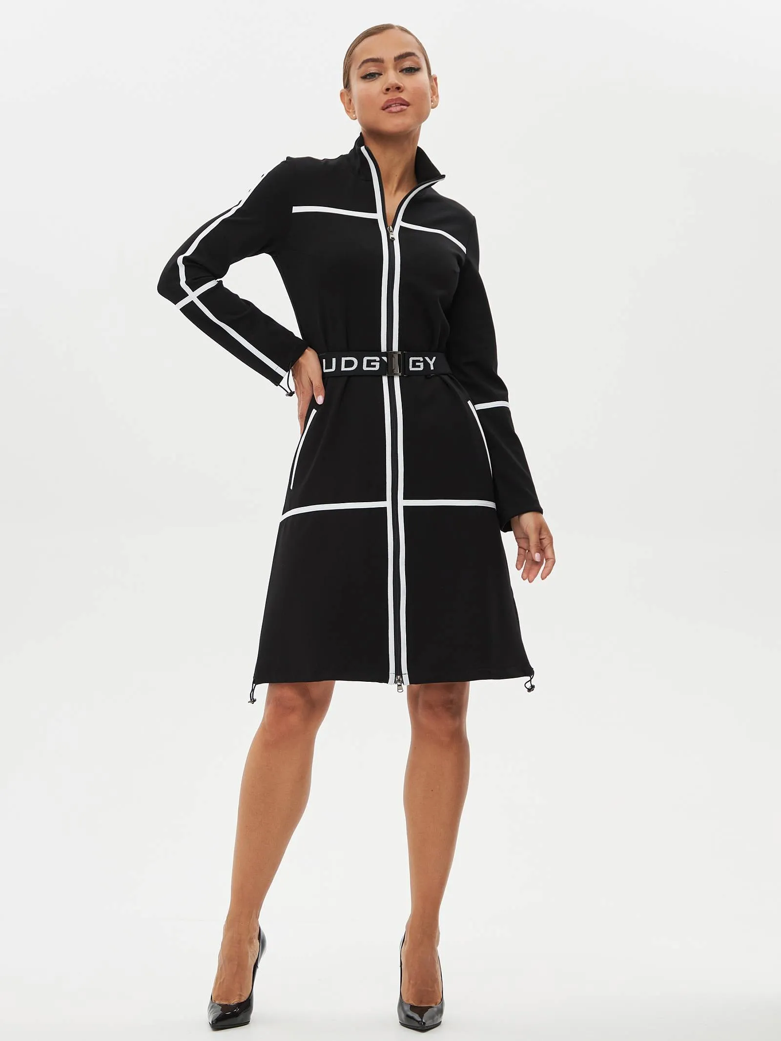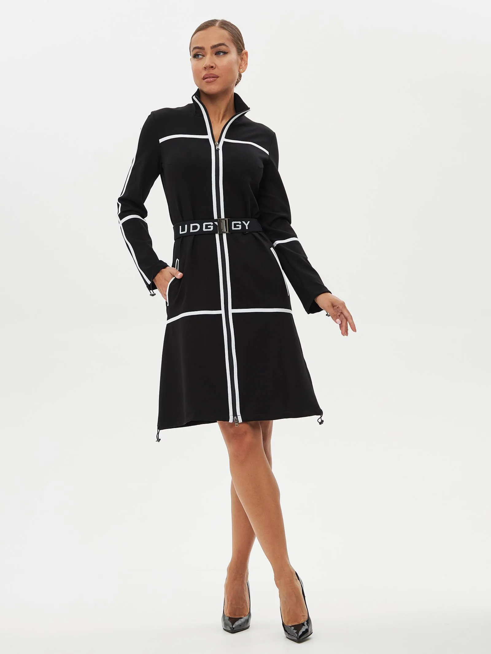 Платье с контрастными вставками и поясом в комплекте. Создано из высокотехнологичной практичной ткани премиального качества, практически не мнется. Платье с карманами, очень комфортное, отлично смотрится с кедами или кроссовками.