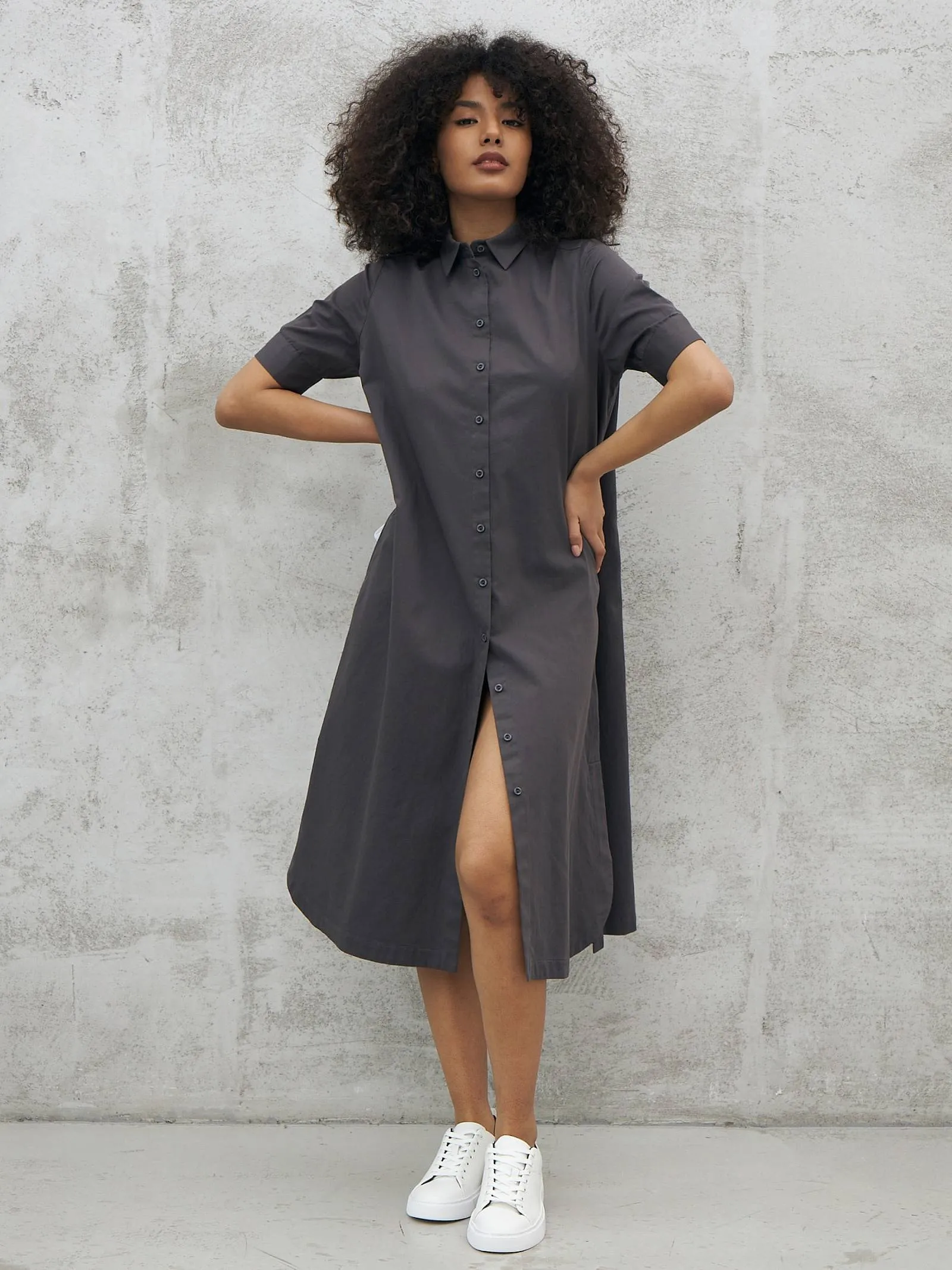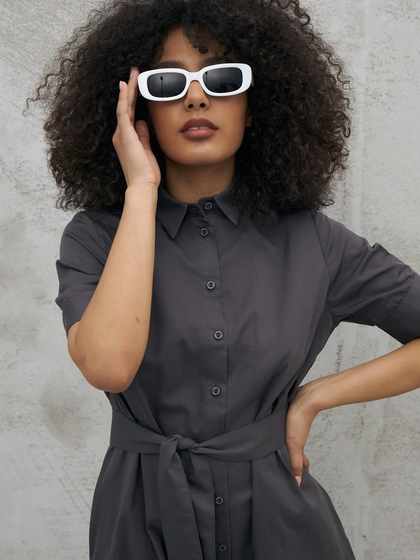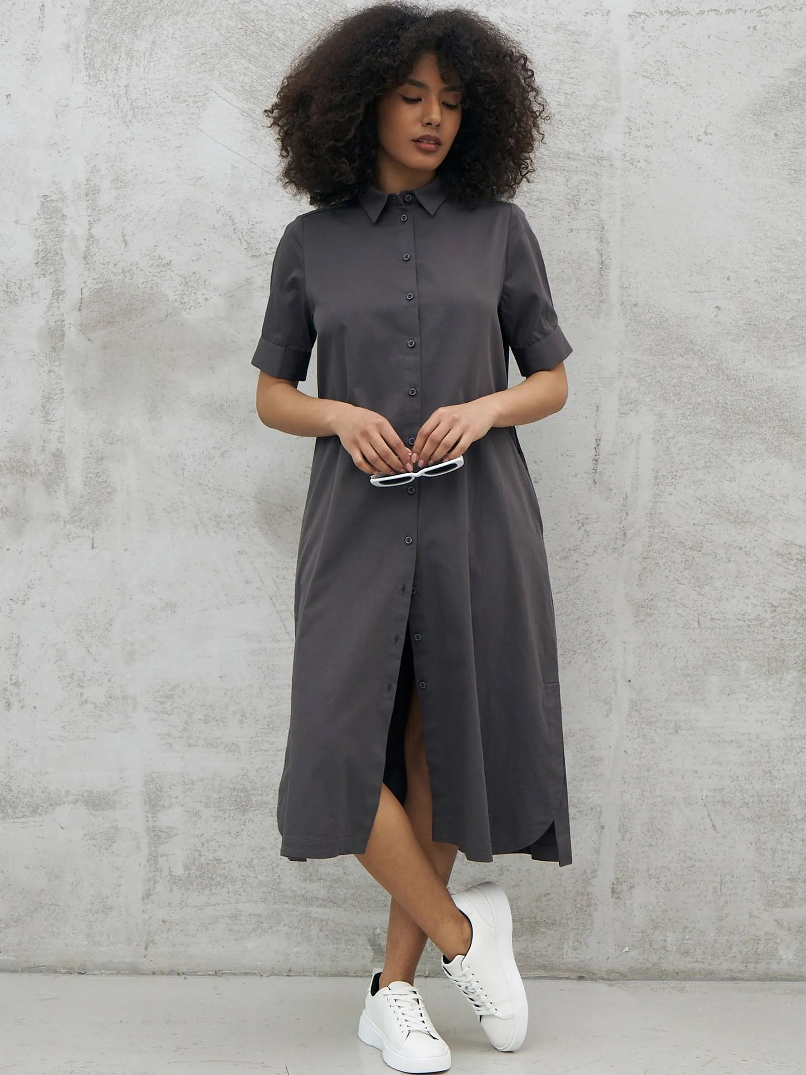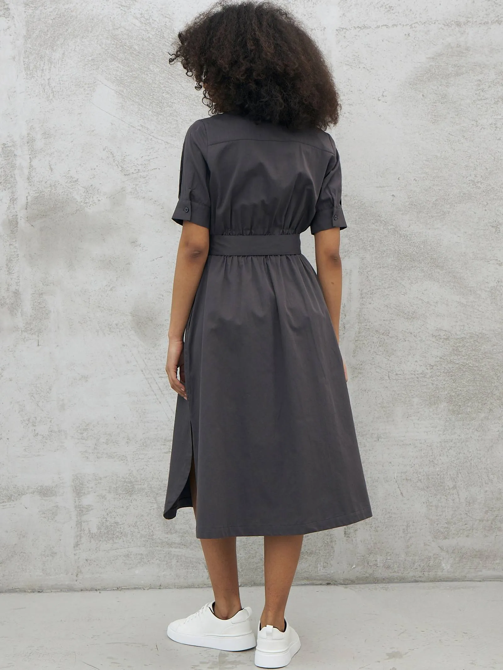 Платье на пуговицах с поясом – Графит