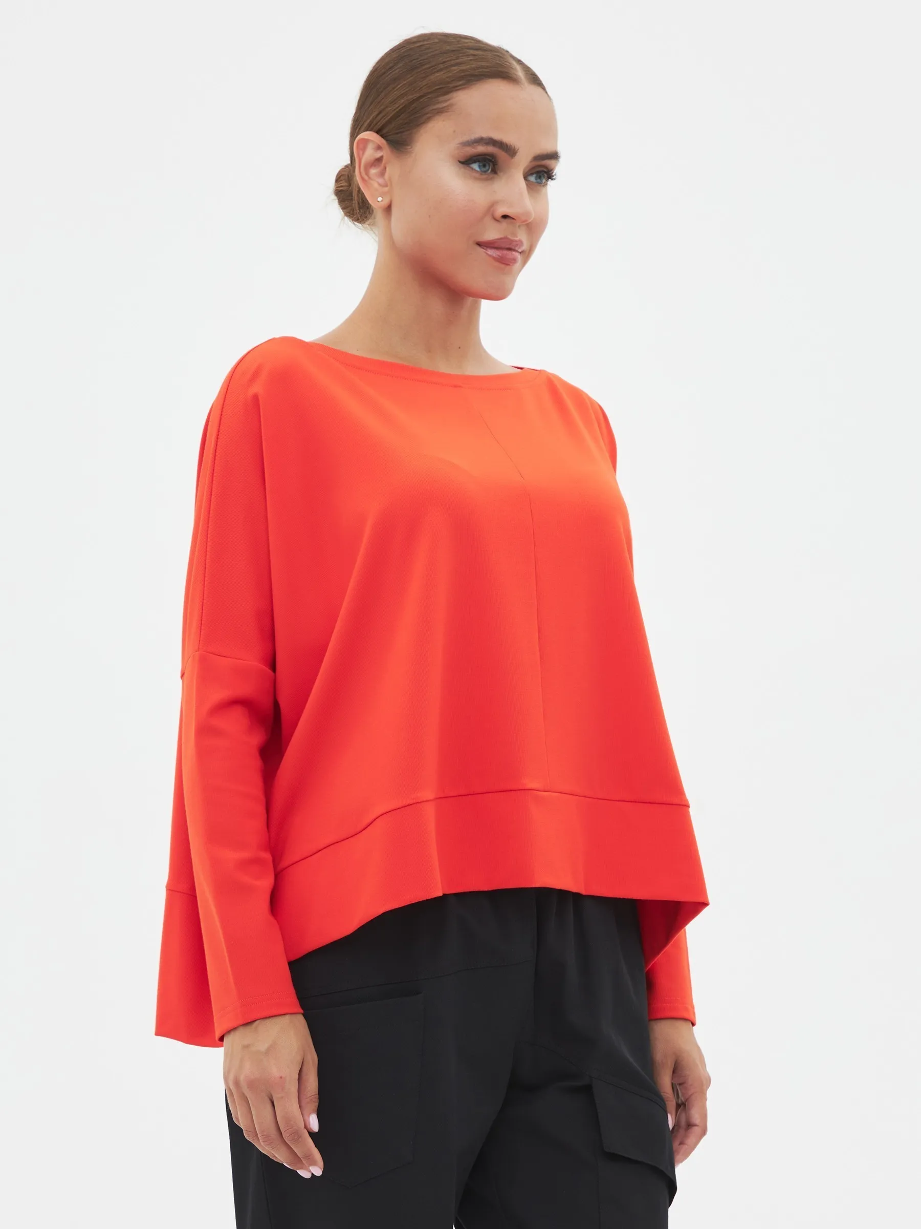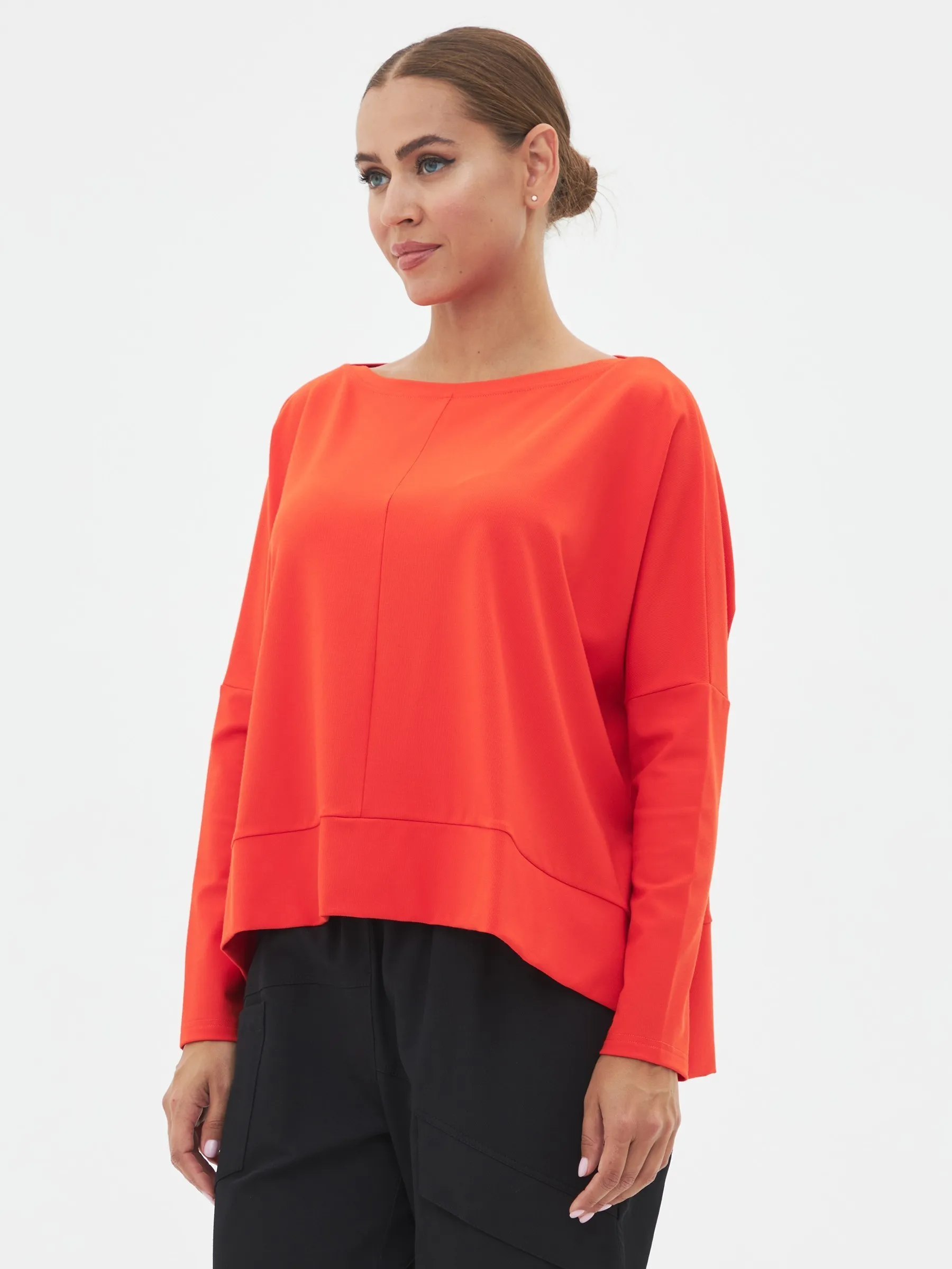 Воздушный легкий свитшот с контрастной полоской на спине. Не сковывает движений за счет своего кроя. Под образ подойдут свободные брюки и обувь на платформе.