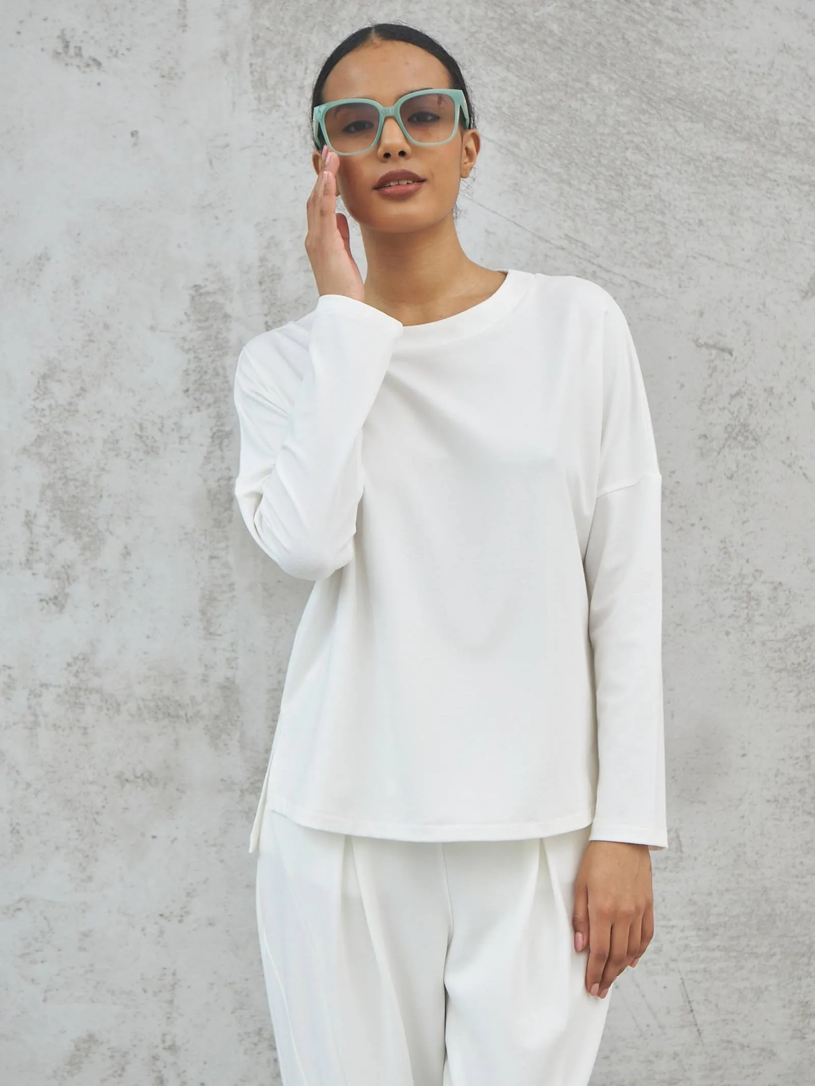 Свитшот свободного кроя с круглым вырезом и оригинальными боковыми разрезами из струящейся ткани. В составе модели мягкая вискоза, дышащий хлопок и тянущийся эластан в цвете хаки. Свитшот отлично подойдет для создания базовых сочетаний с повседневными брюками или юбками и расслабленных образов в стиле кэжуал.