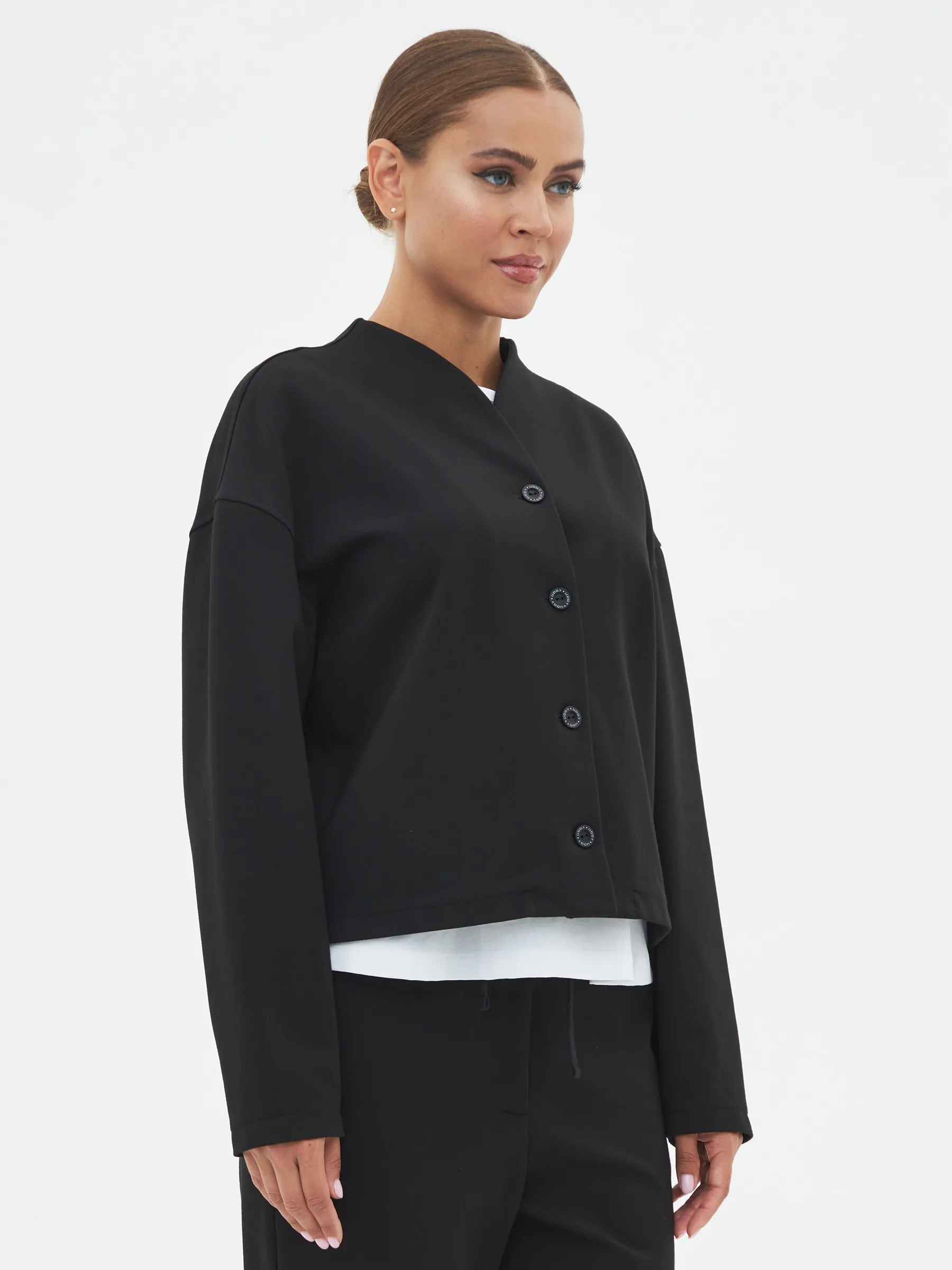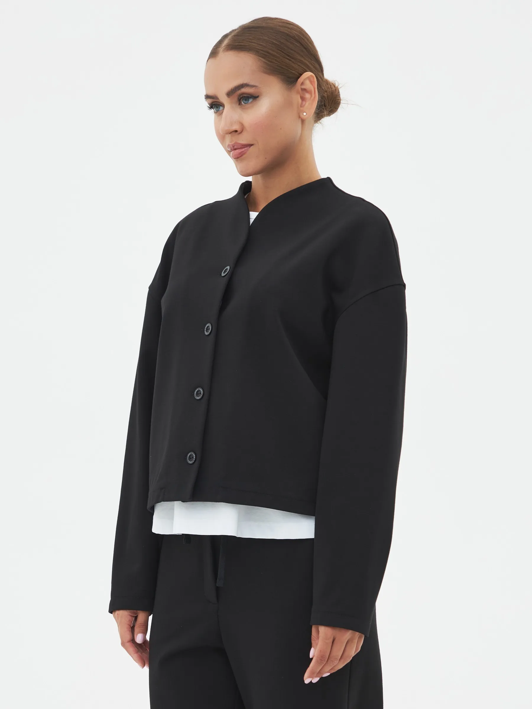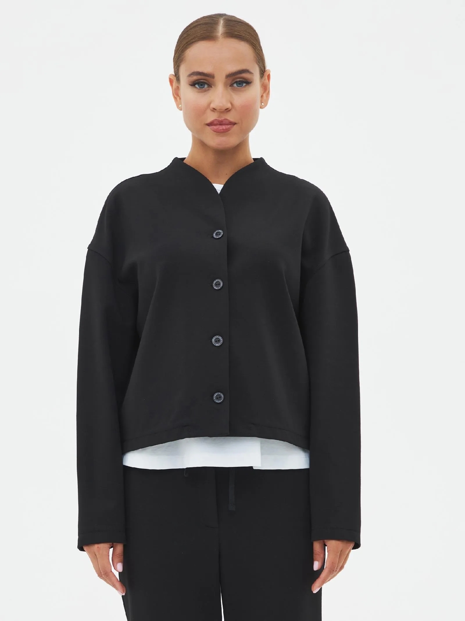Женский трикотажный жакет прямого силуэта с застежкой на пуговицы.Прямой крой подчеркивает универсальность модели, которая подойдет для любого случая. Идеально сочетается как с деловым, так и с повседневным гардеробом.