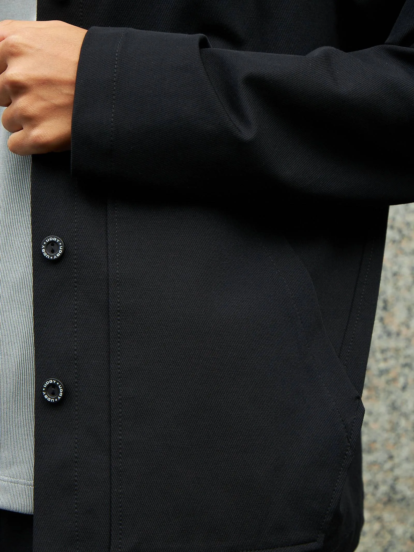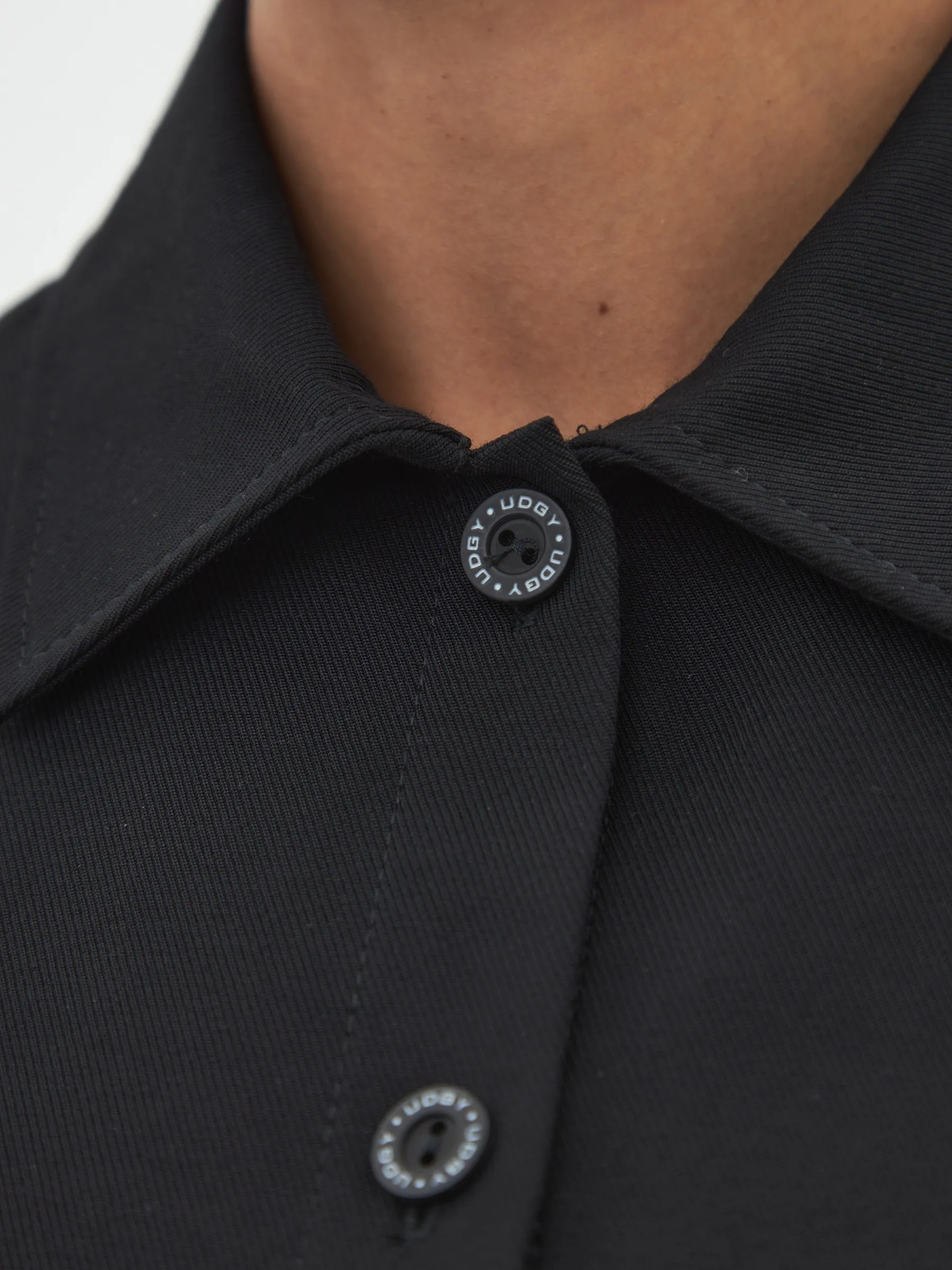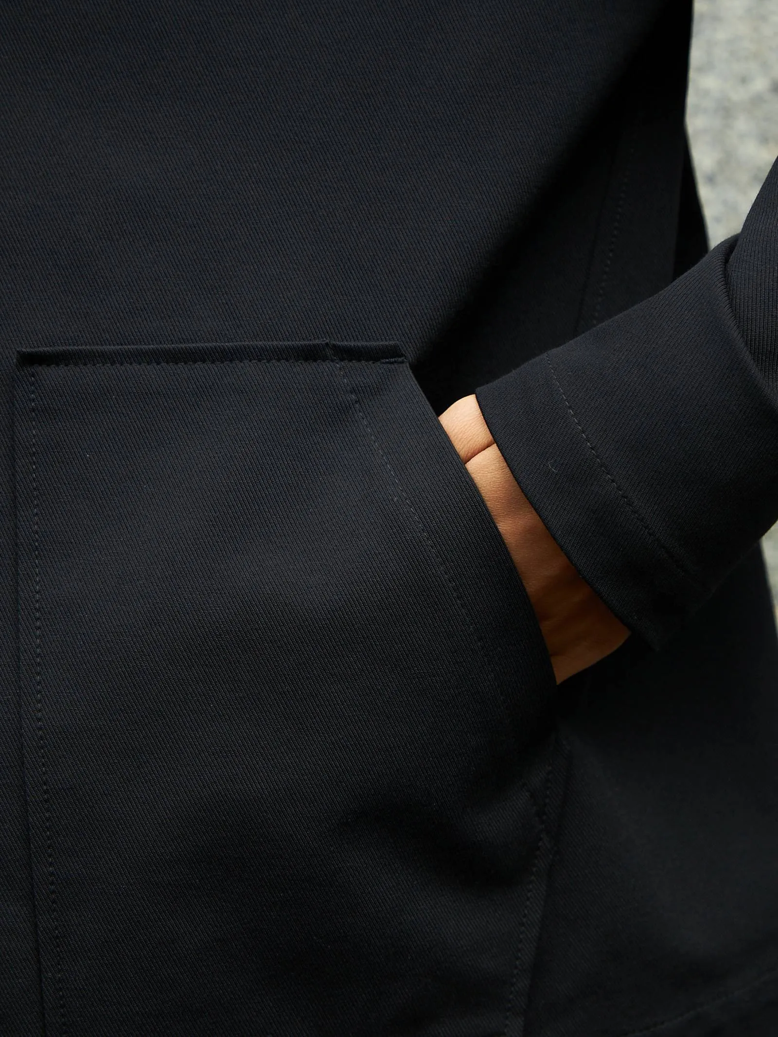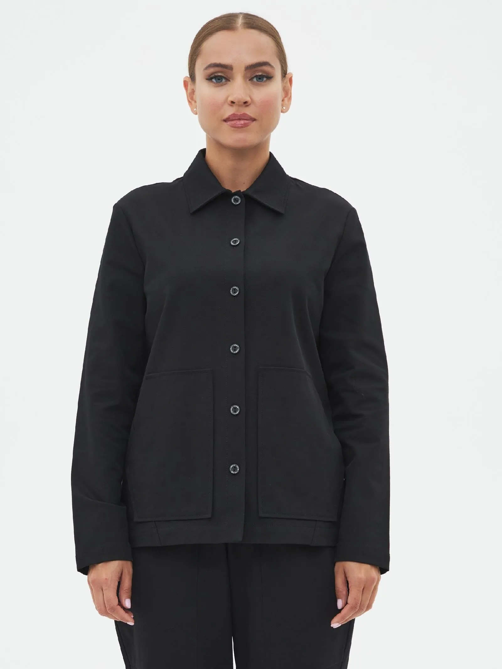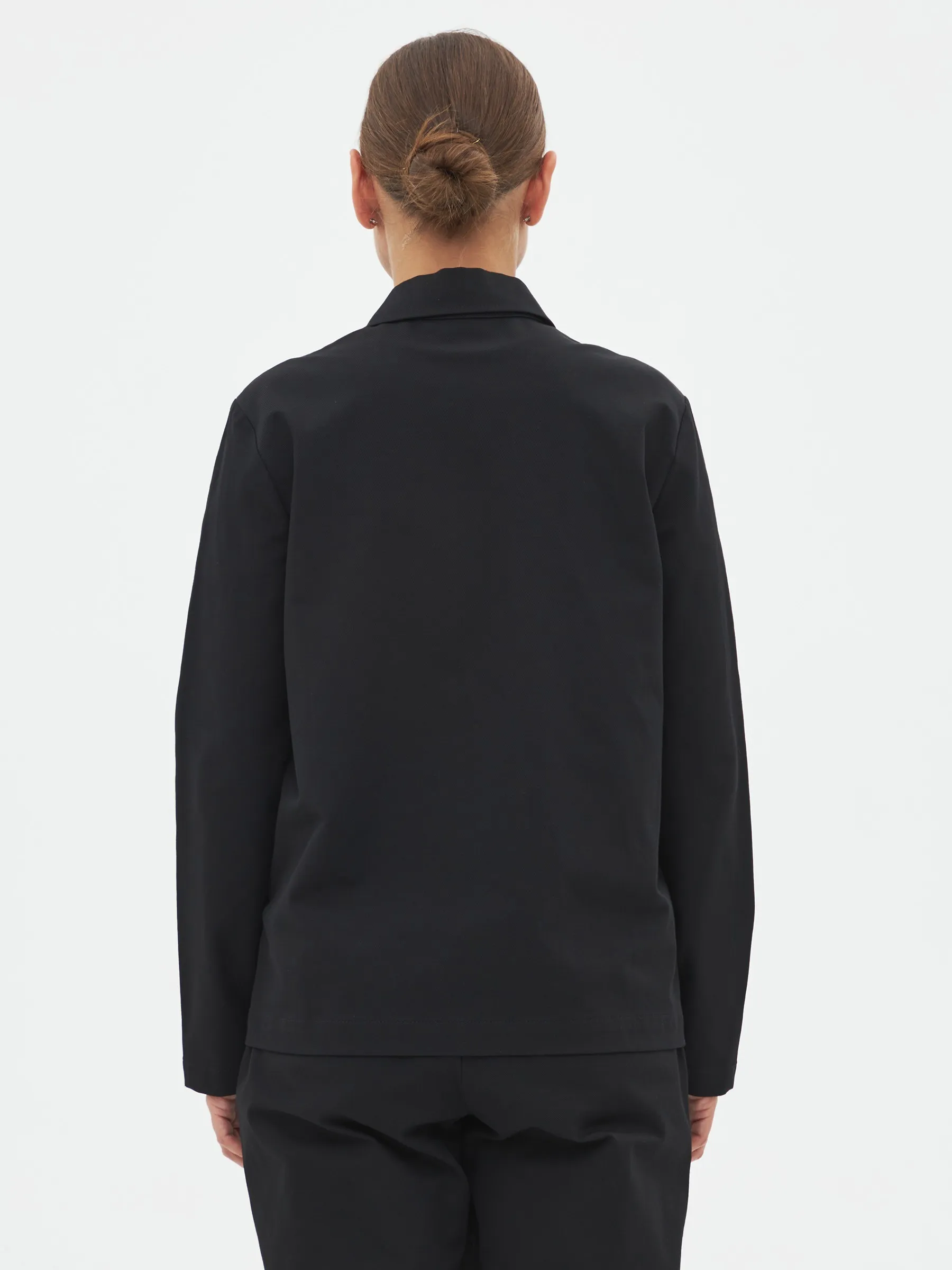 Жакет с длинным рукавом, отложным воротником, оригинальными карманами в геометрическом стиле и узкими изящными манжетами. Модель выполнена из ткани премиального качества в чёрном цвете, в составе которой мягкий органический хлопок, прочный полиамид и тянущийся эластан. Подойдет для создания повседневных сочетания с футболками, свитшотами и брюками Gezalook by UDGY.