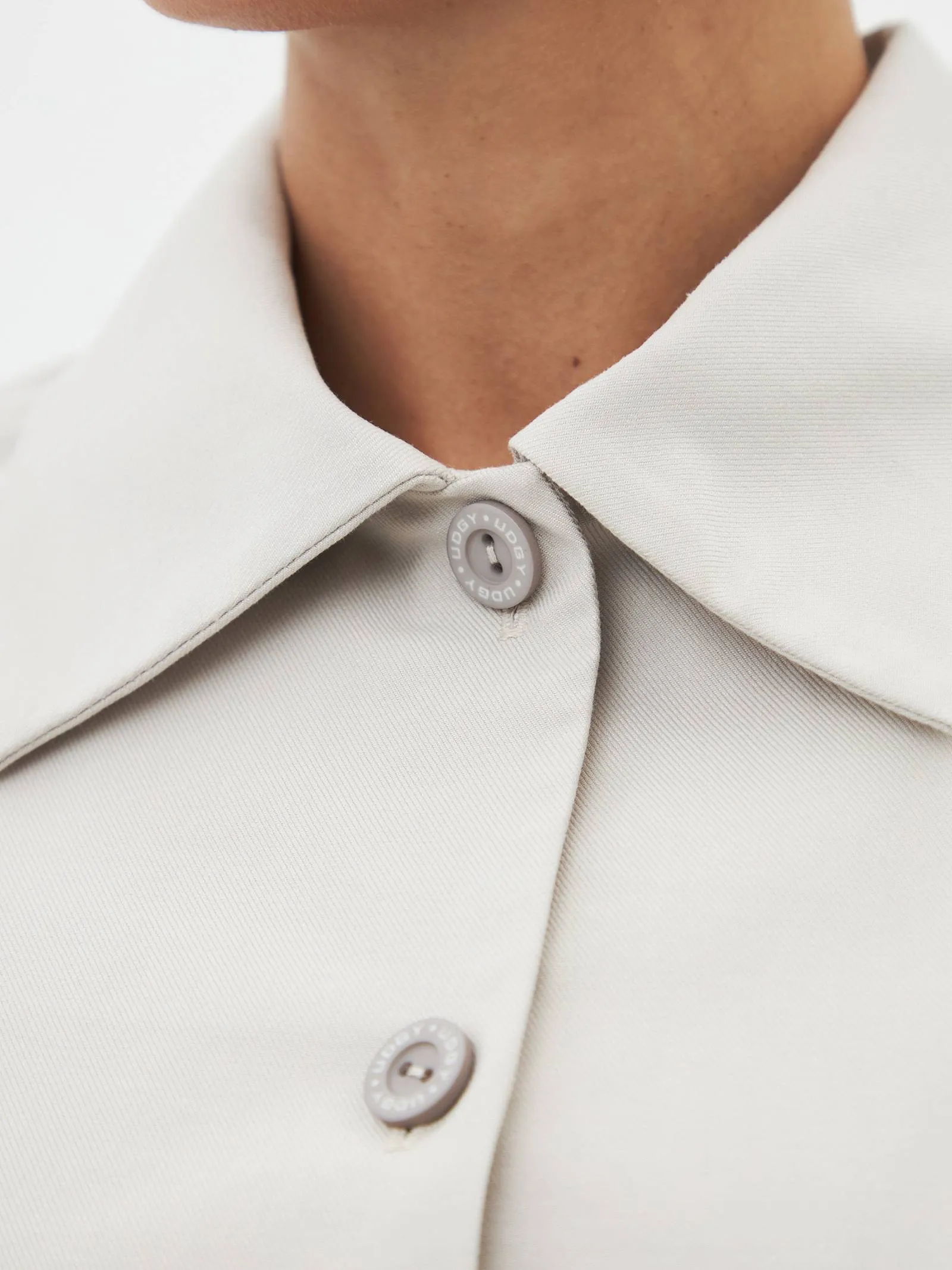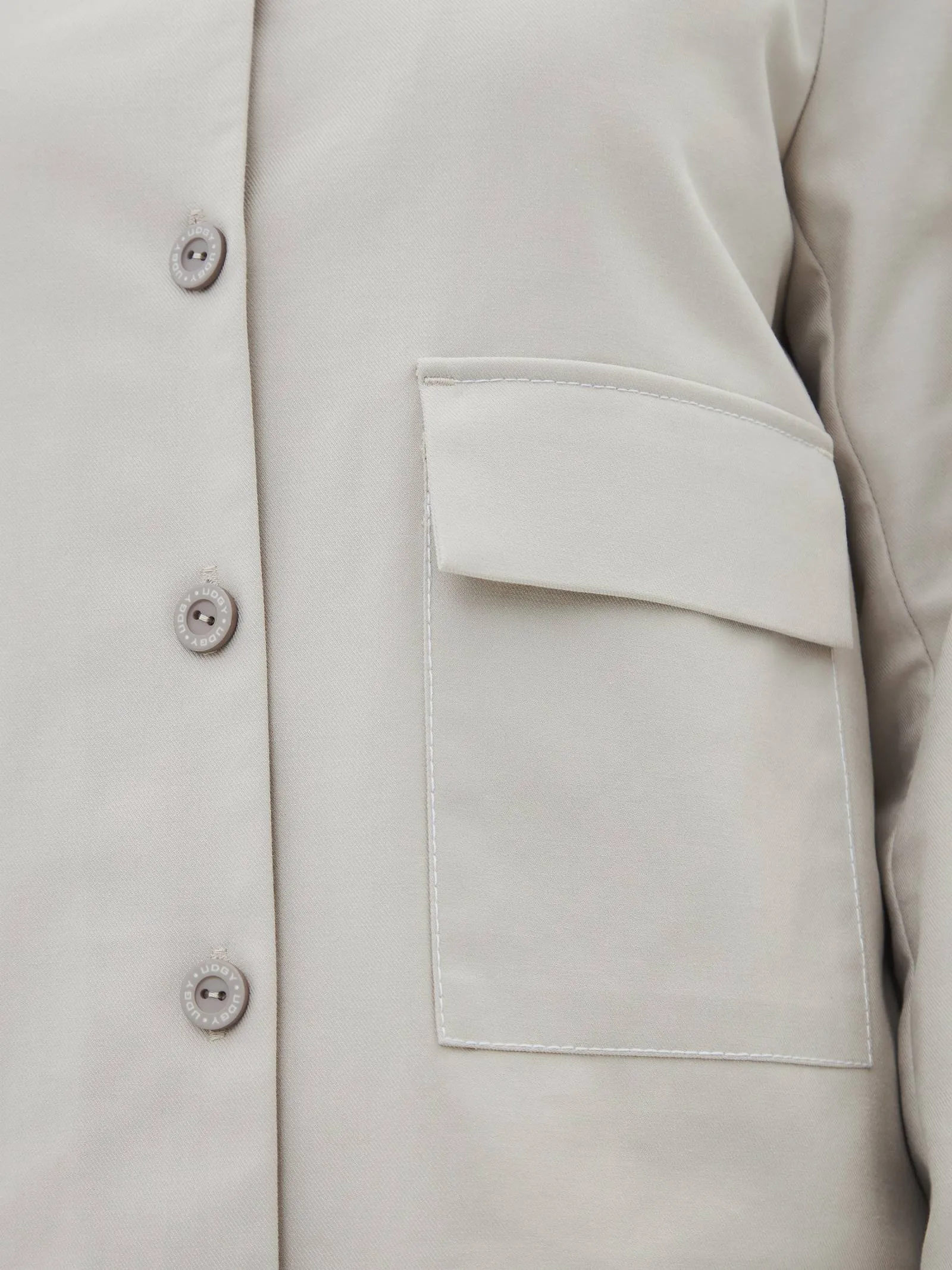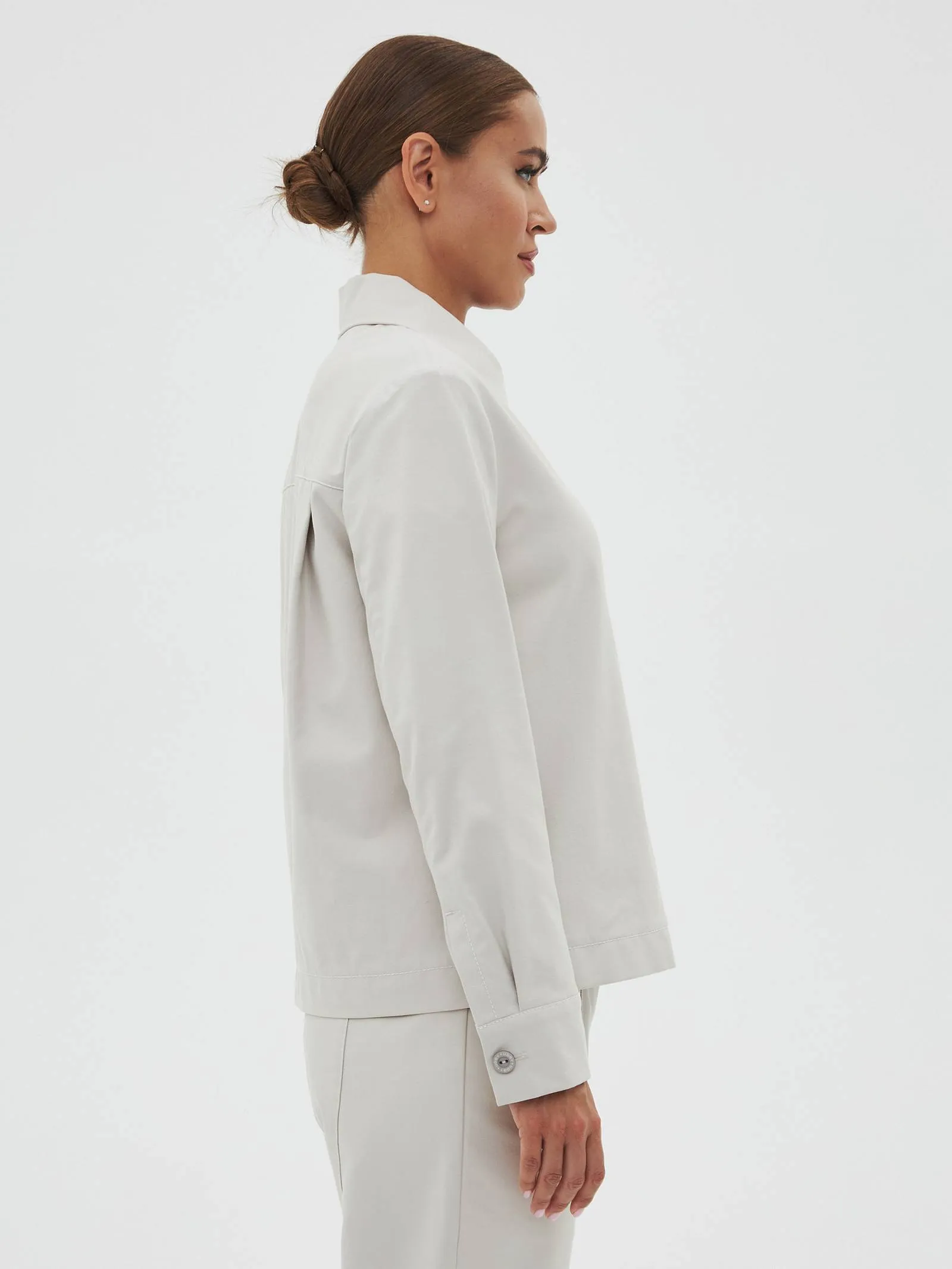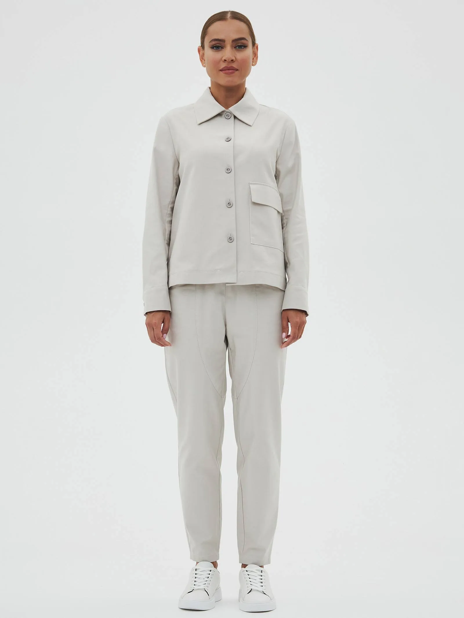 Жакет из шелковистого хлопка под джинсу средней плотности прямого силуэта с пуговицами стильный и универсальный элемент гардероба. Изделие оснащено отложным воротником с прямыми концами, который придаёт модели классический и утончённый вид. Длинные рукава дополнены аккуратными манжетами, застёгивающимися на пуговицы, что обеспечивает удобство и добавляет образу изысканности. На левой стороне жакета расположен функциональный накладной нагрудный карман с клапаном. Такой жакет легко впишется как в деловой, так и в повседневный гардероб, подчёркивая индивидуальность и хороший вкус.