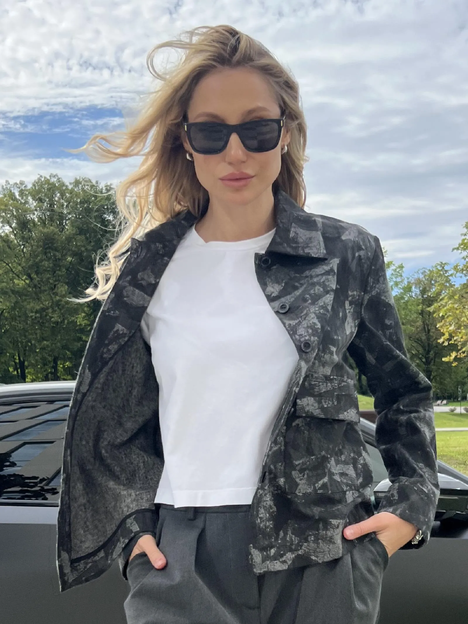 Жакет из 100% хлопка с длинным рукавом и манжетами на фирменных пуговицах станет основой стильного гардероба. Отложной воротник и накладной карман слева подчеркивают аккуратный крой, а натуральная ткань обеспечивает комфорт. Идеален для создания универсальных демисезонных образов в стиле кэжуал.