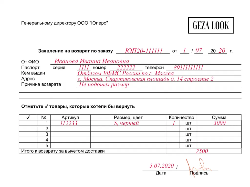 ОБРАЗЕЦ ЗАПОЛНЕНИЯ