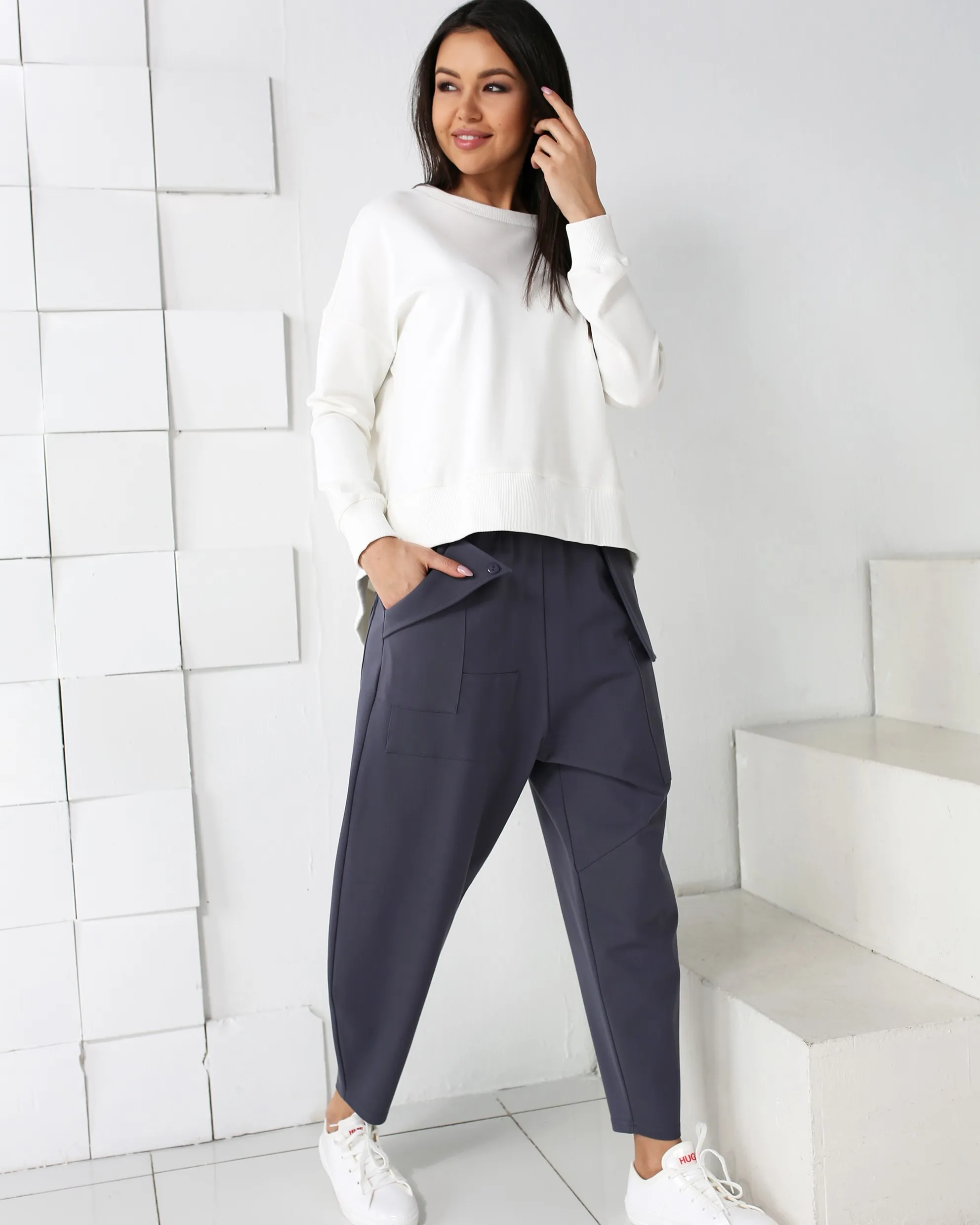 Брюки-бананы на эластичной резинке трикотажные 100134